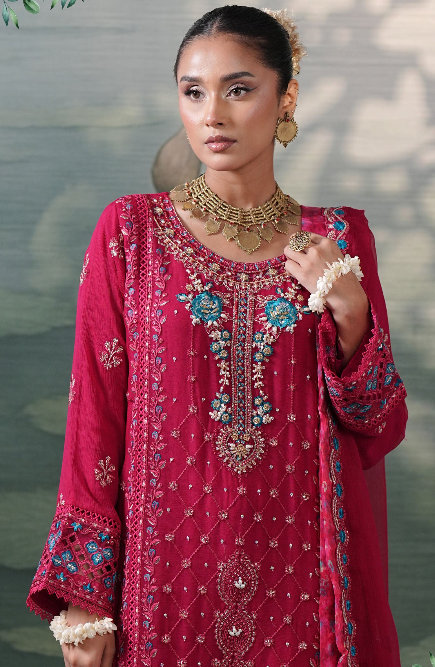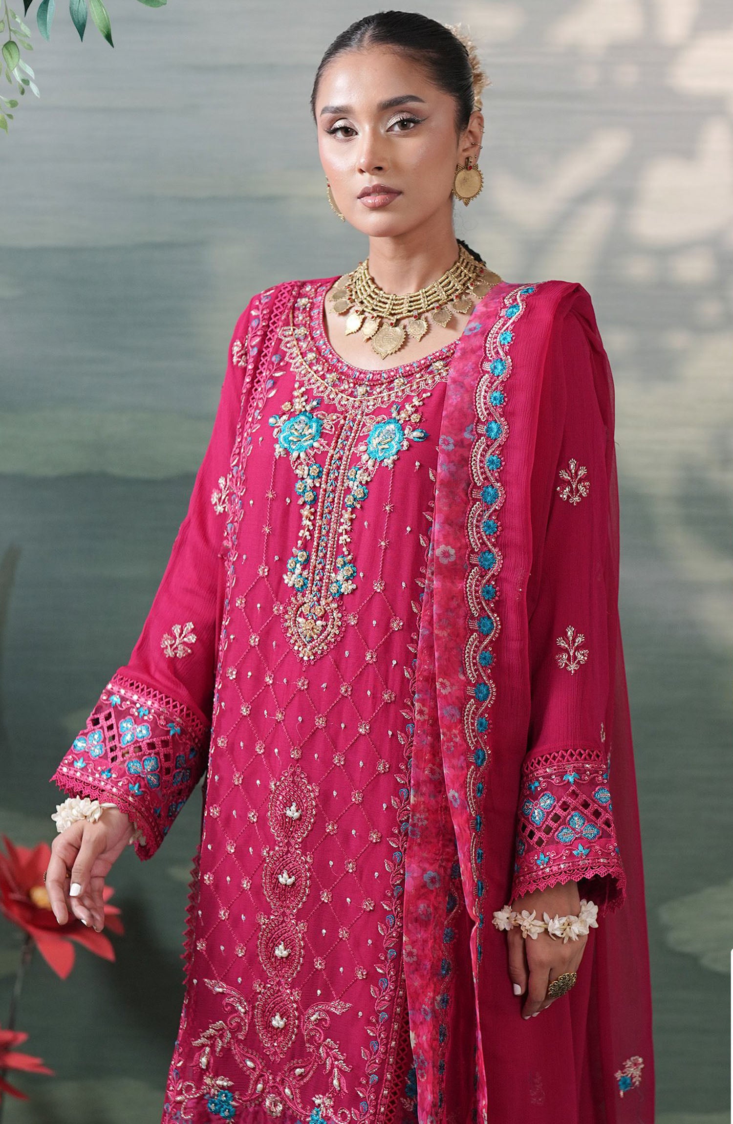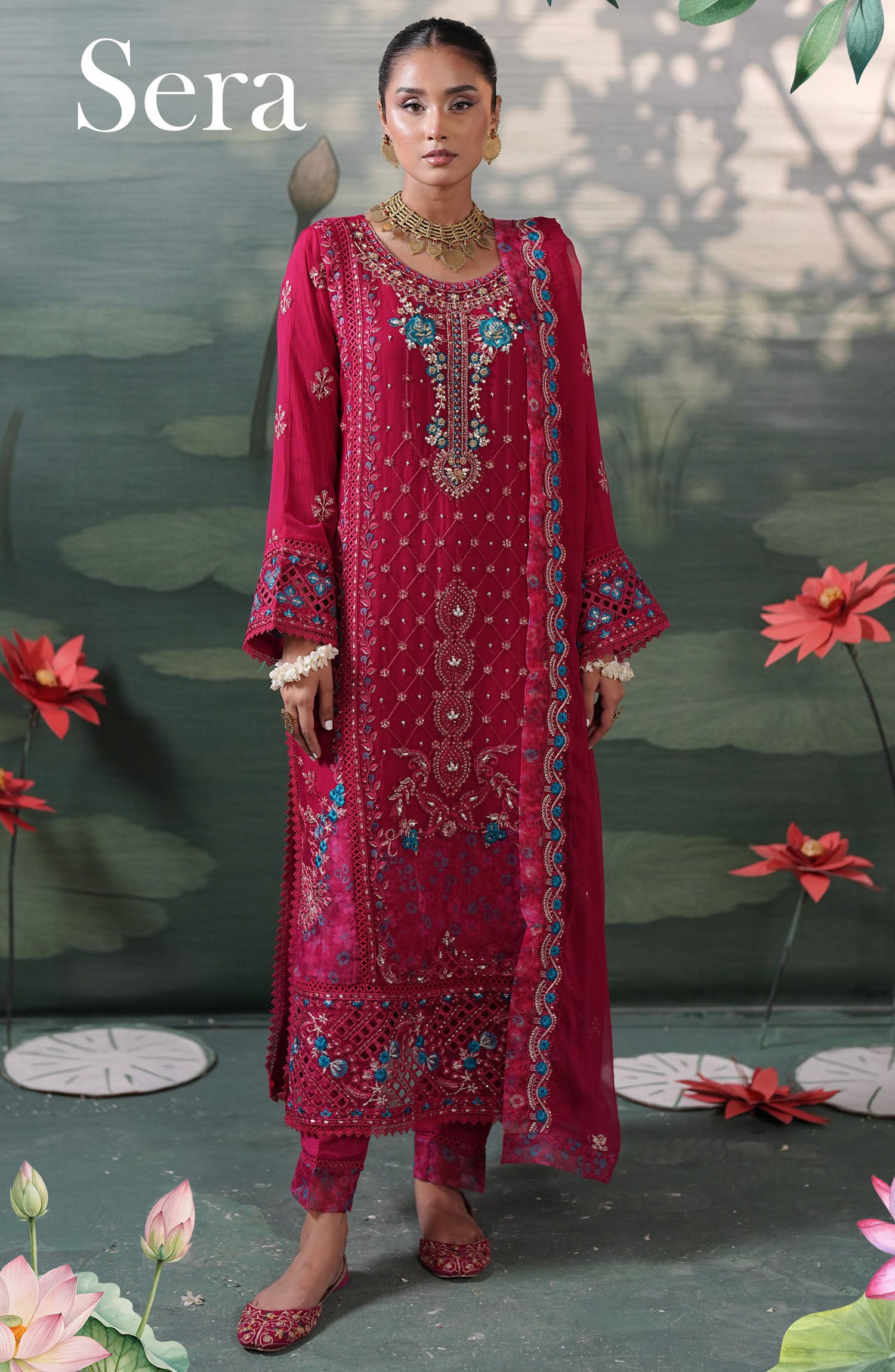 Home Silvana by Guzel Embroidered Chiffon Stitched 3 Piece Suit - Sera - GUZ25SLC - Pink - Luxury Collection