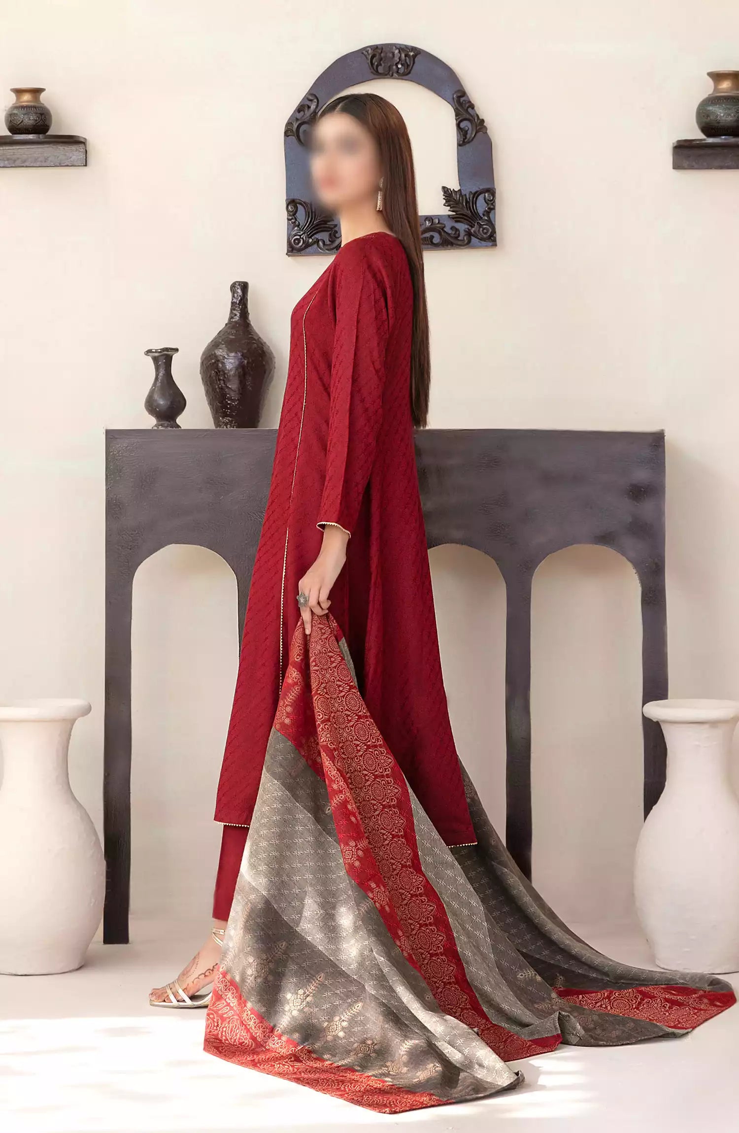 HZ Textile Digital Printed Linen Slub Unstitched 3 Piece Suit - LSD-307 - HZ25LNSL - Red - Winter Collection