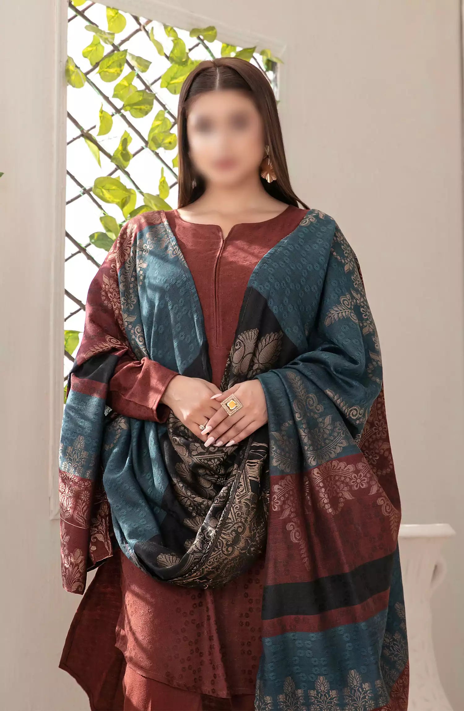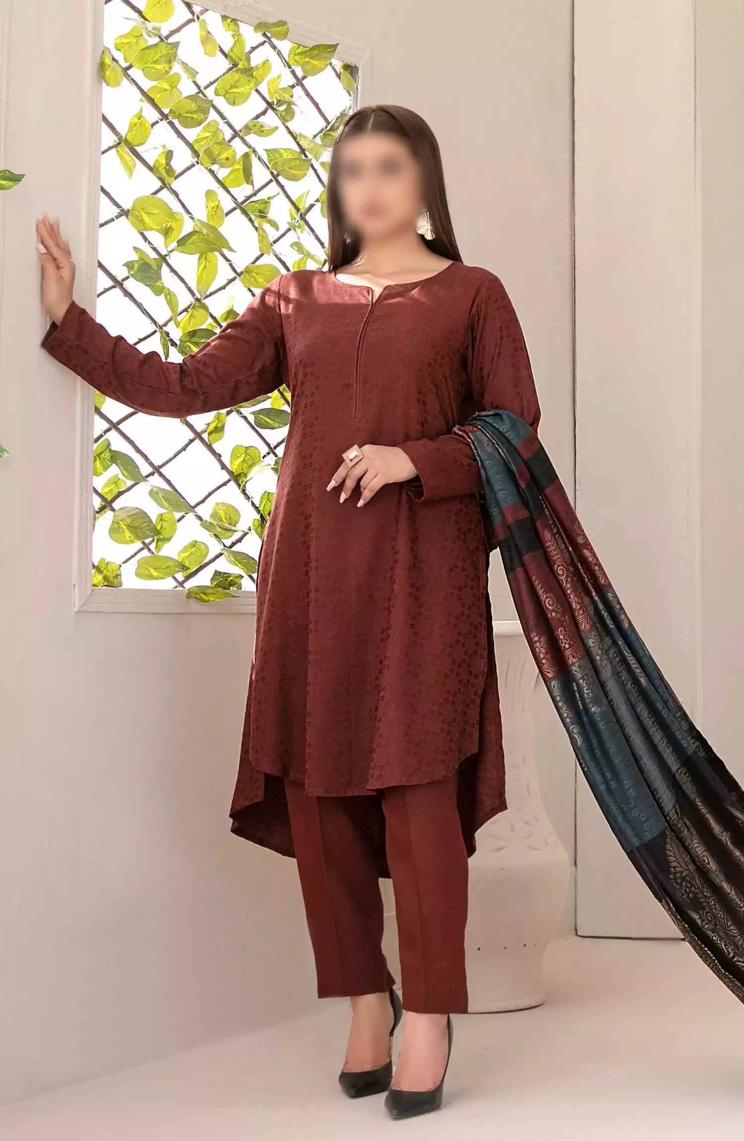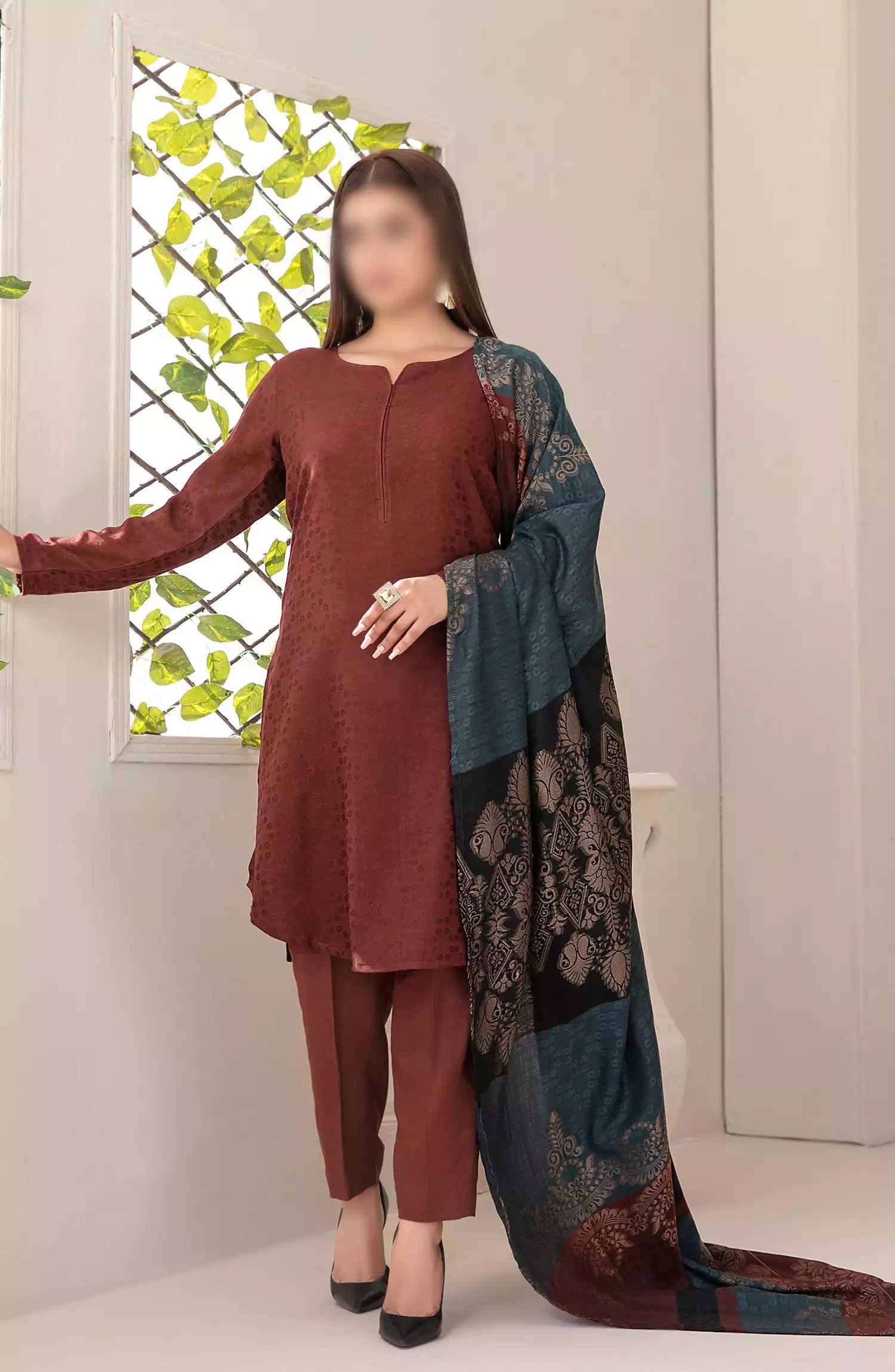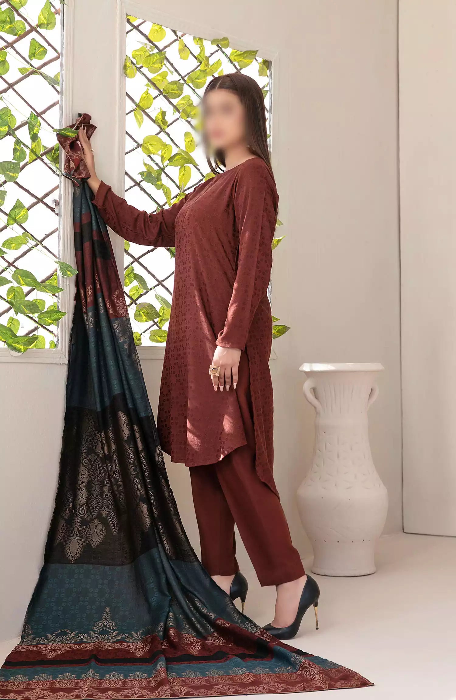 Simya - Jacquard Leather Peach Collection 2024 has been styled in the image for photography and illustrative purposes.