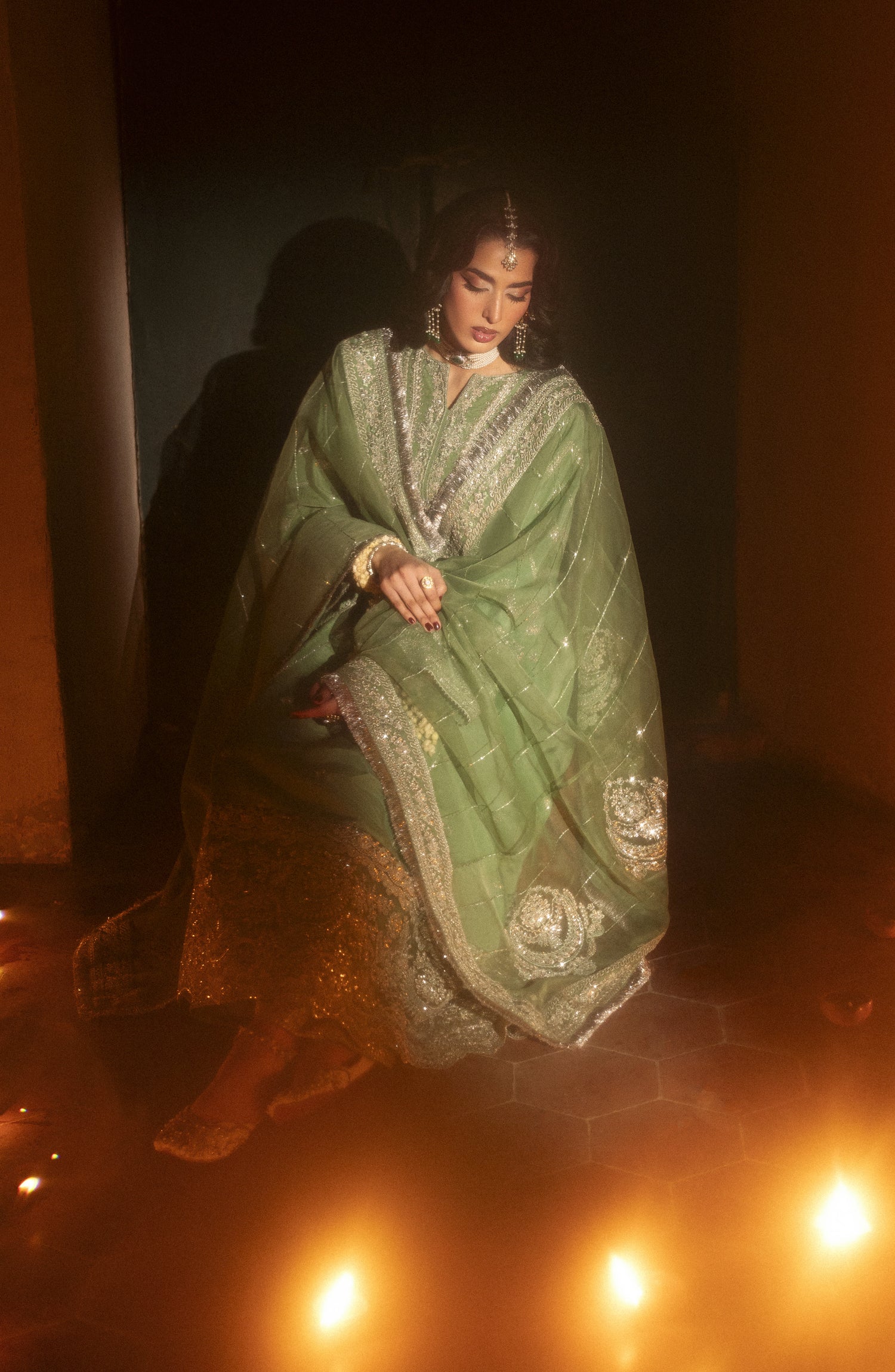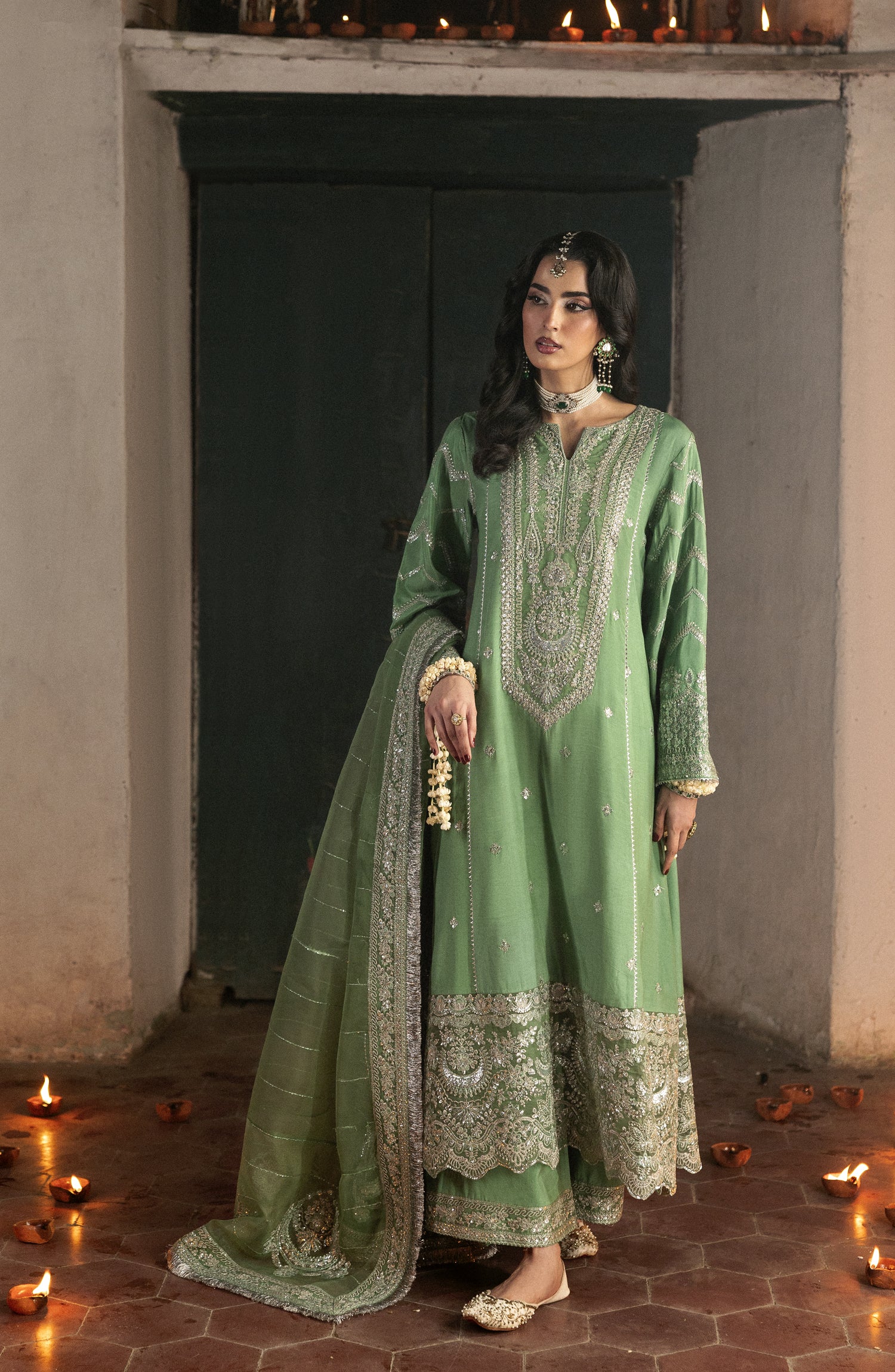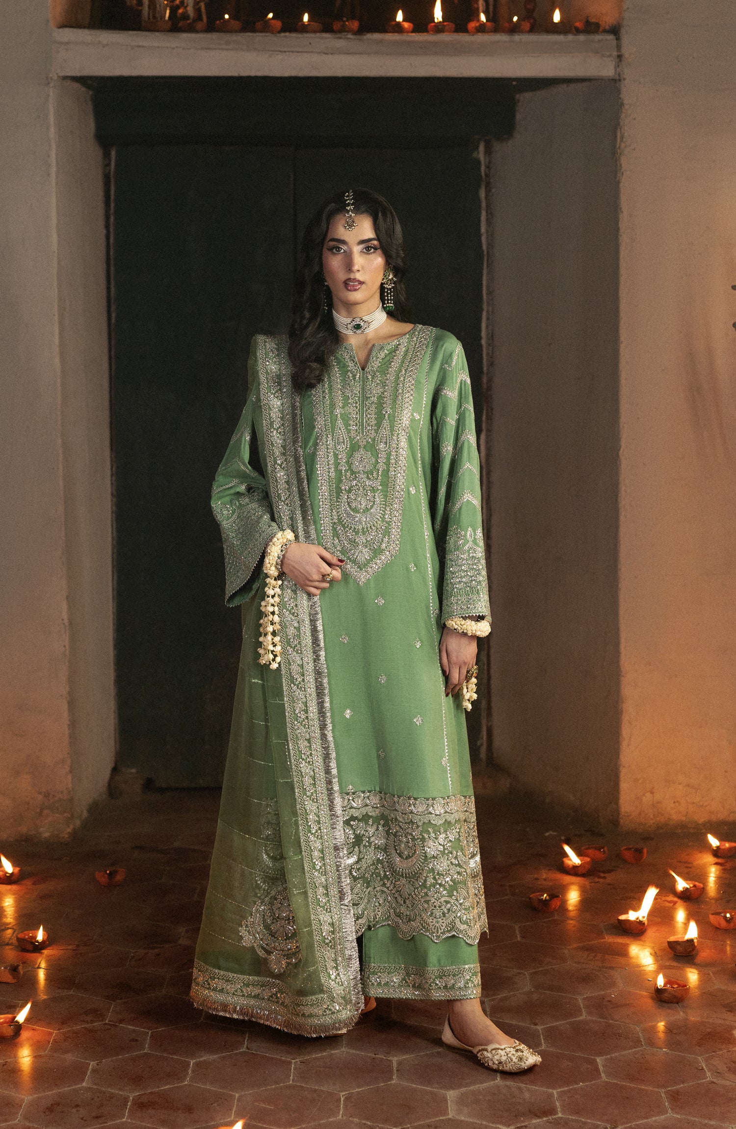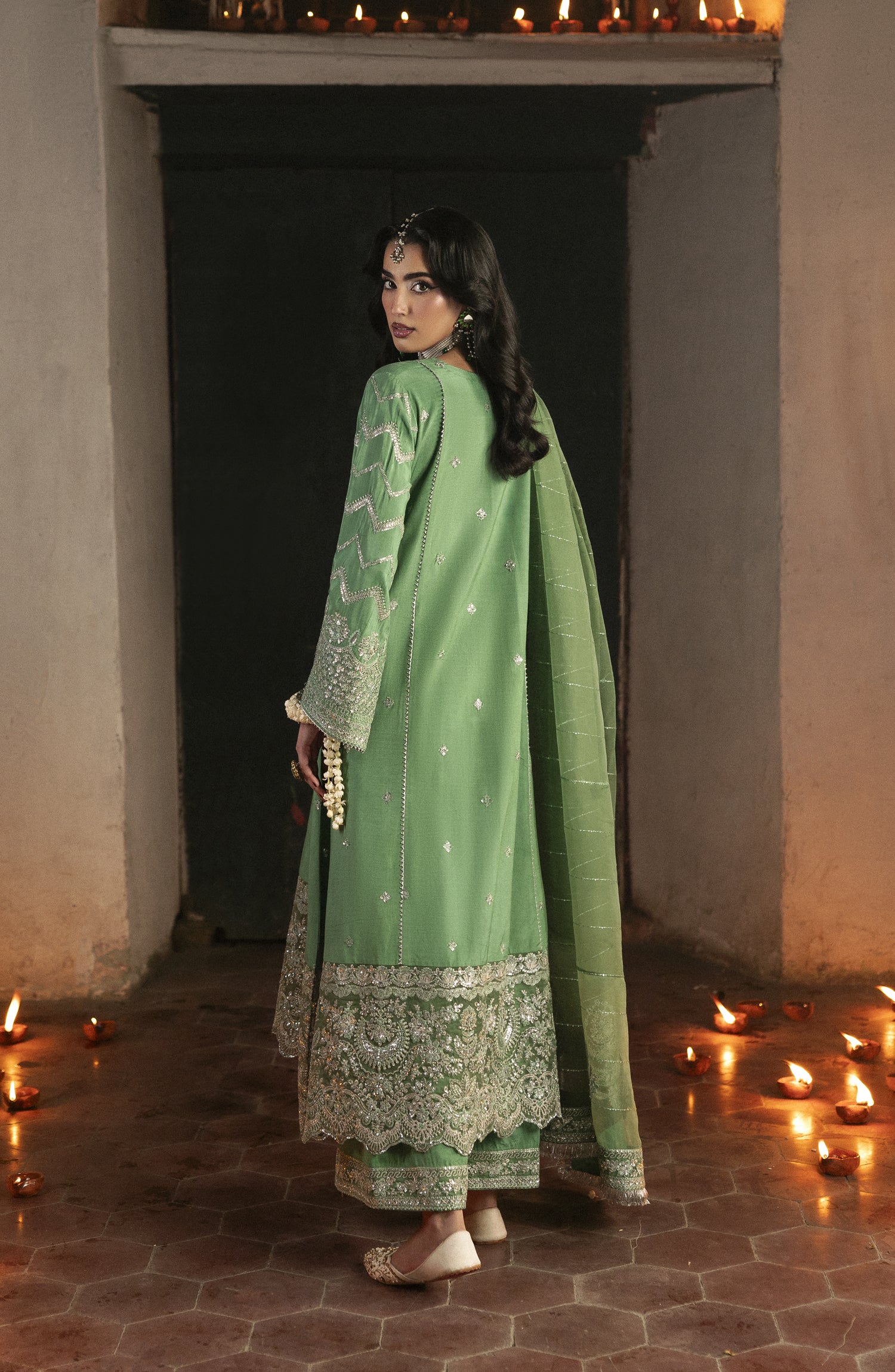 Singhar by Saad Shaikh X Meeral Luxury Embroidered Raw Silk Unstitched 3 Piece Suit - AIRA - SSH25SNG - Light Green - Festive Collection