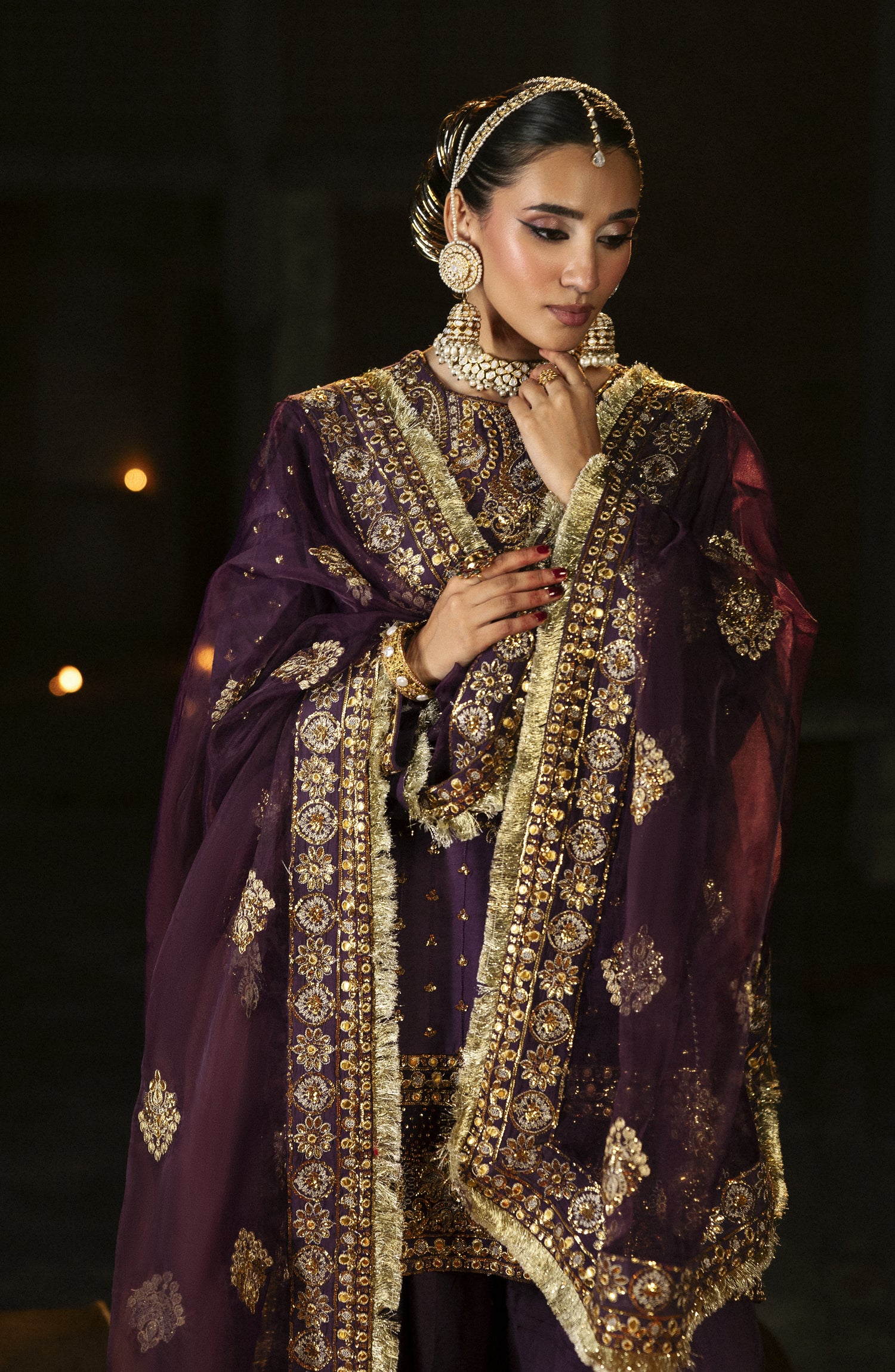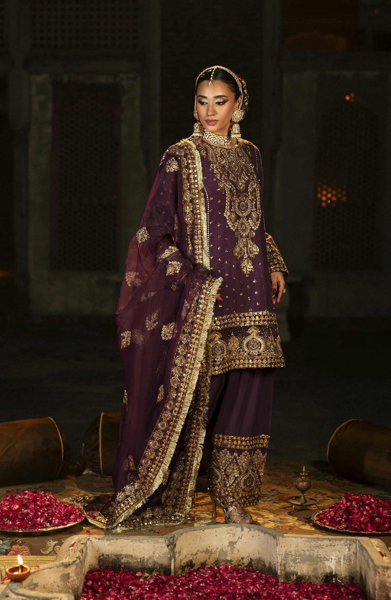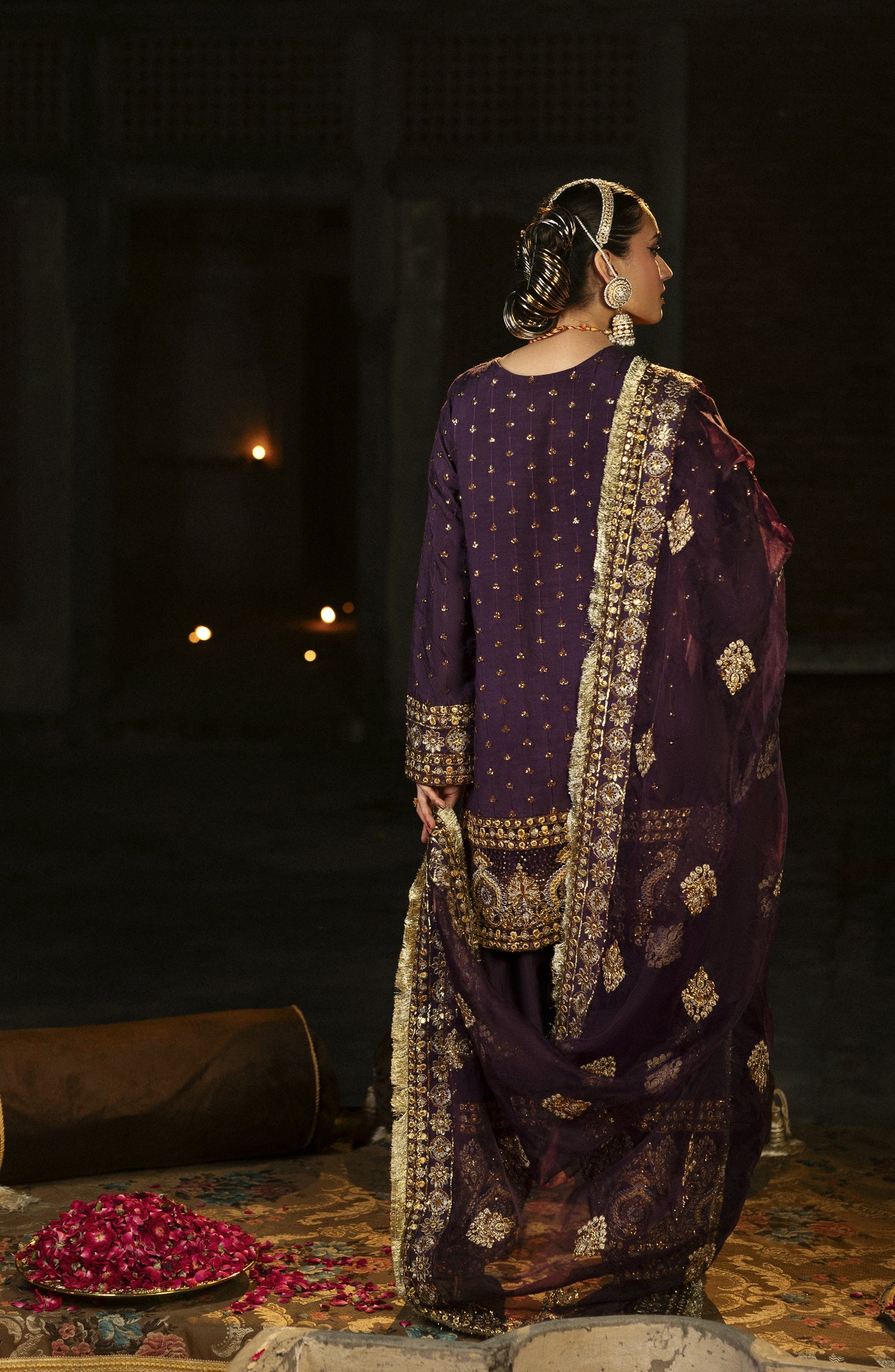 Singhar by Saad Shaikh X Meeral Luxury Embroidered Raw Silk Unstitched 3 Piece Suit - ARJUMAAND - SSH25SNG - Dark Purple - Festive Collection