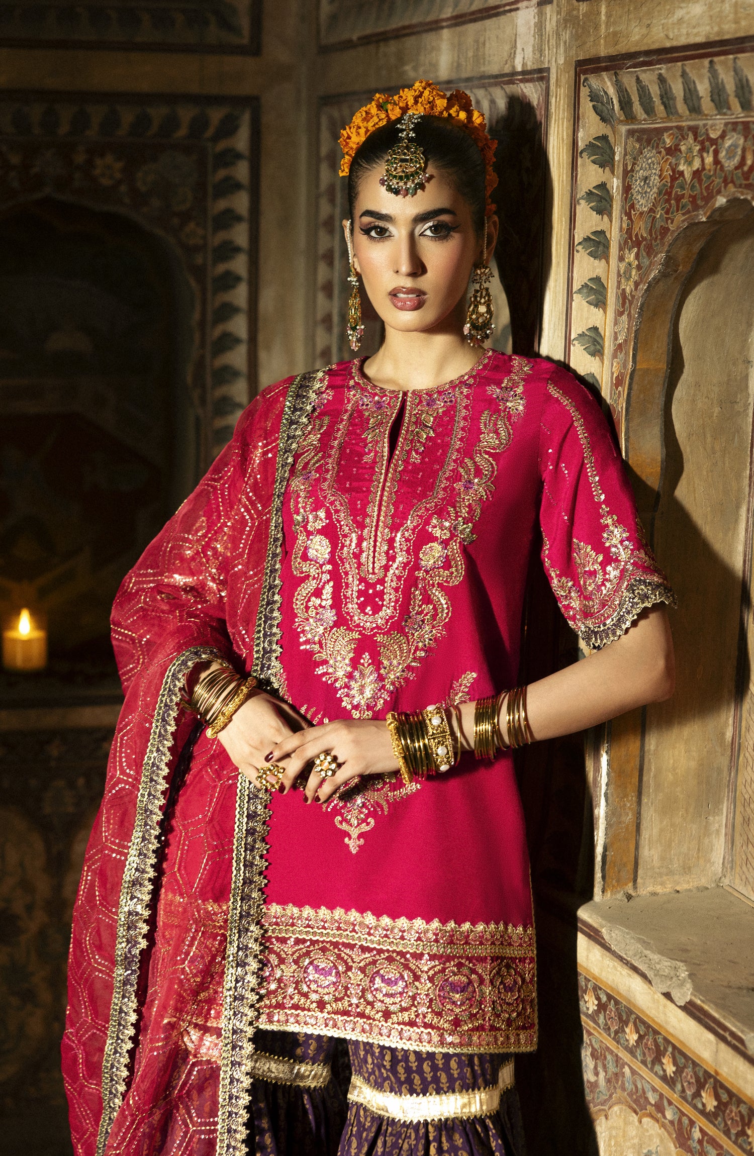 Singhar by Saad Shaikh X Meeral Luxury Embroidered Raw Silk Unstitched 3 Piece Suit - GULNAAR - SSH25SNG - Magenta - Festive Collection