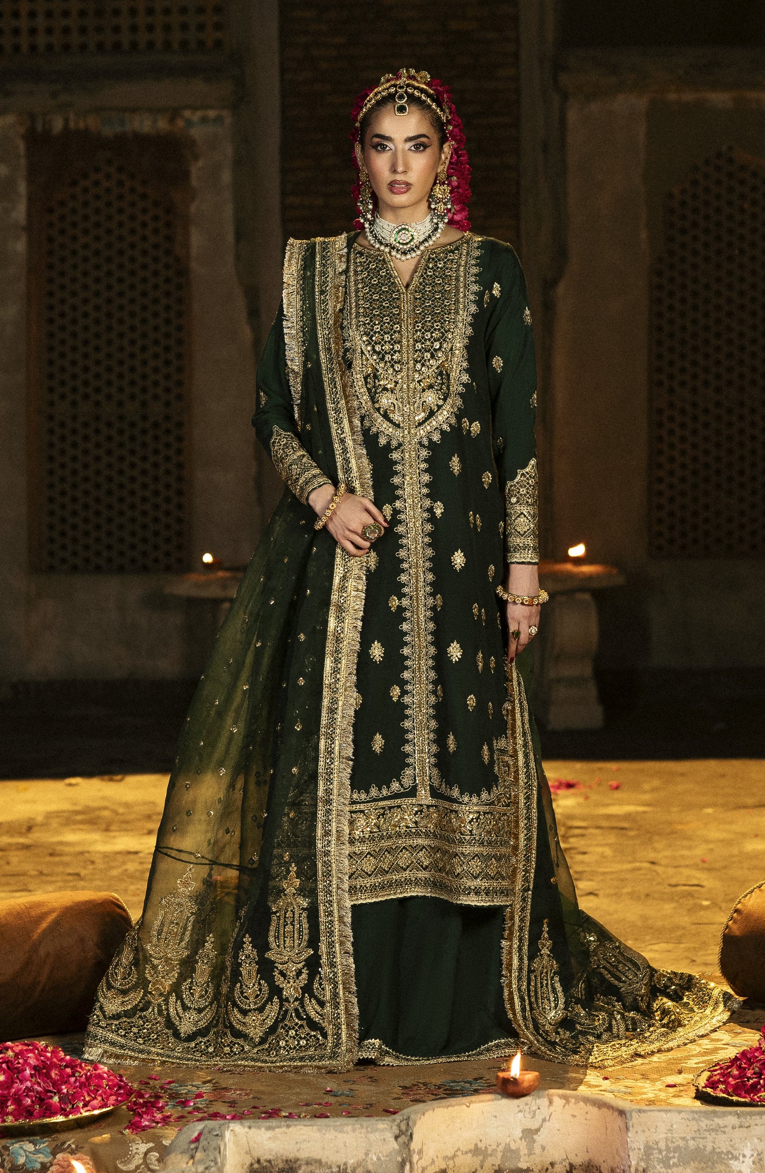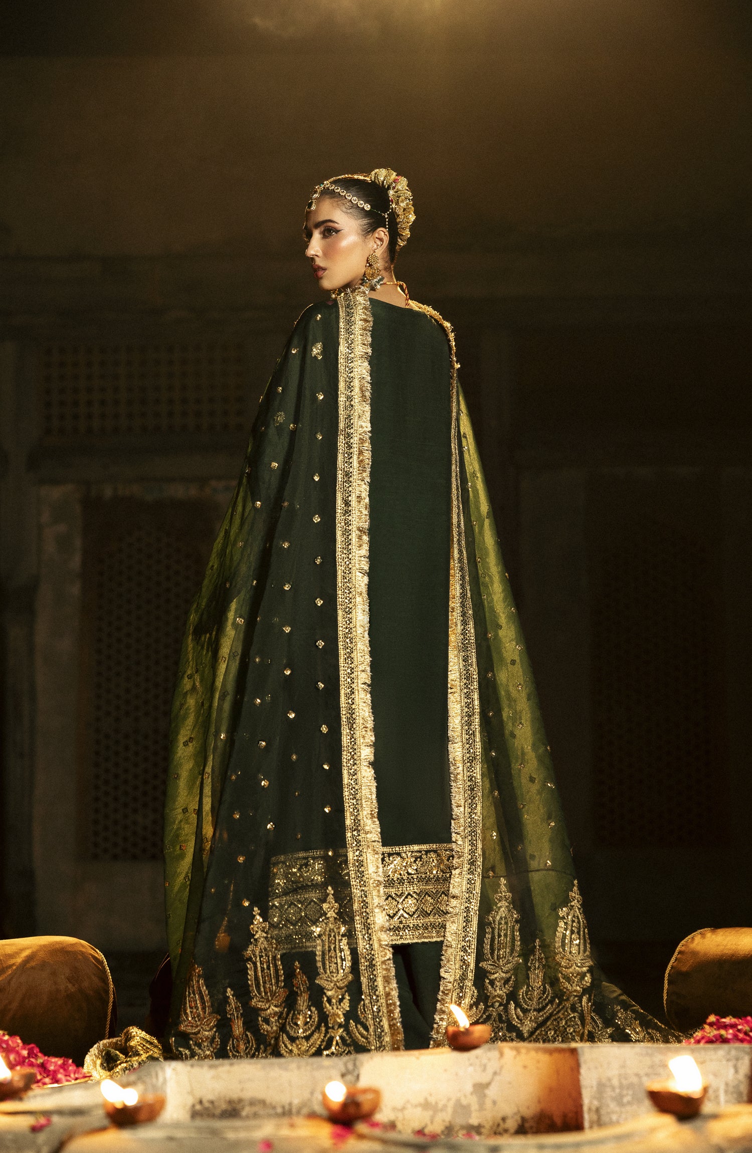 Singhar by Saad Shaikh X Meeral Luxury Embroidered Raw Silk Unstitched 3 Piece Suit - ZAIB - SSH25SNG - Dark Green - Festive Collection
