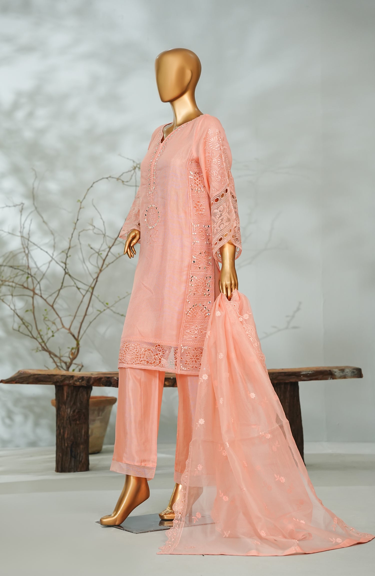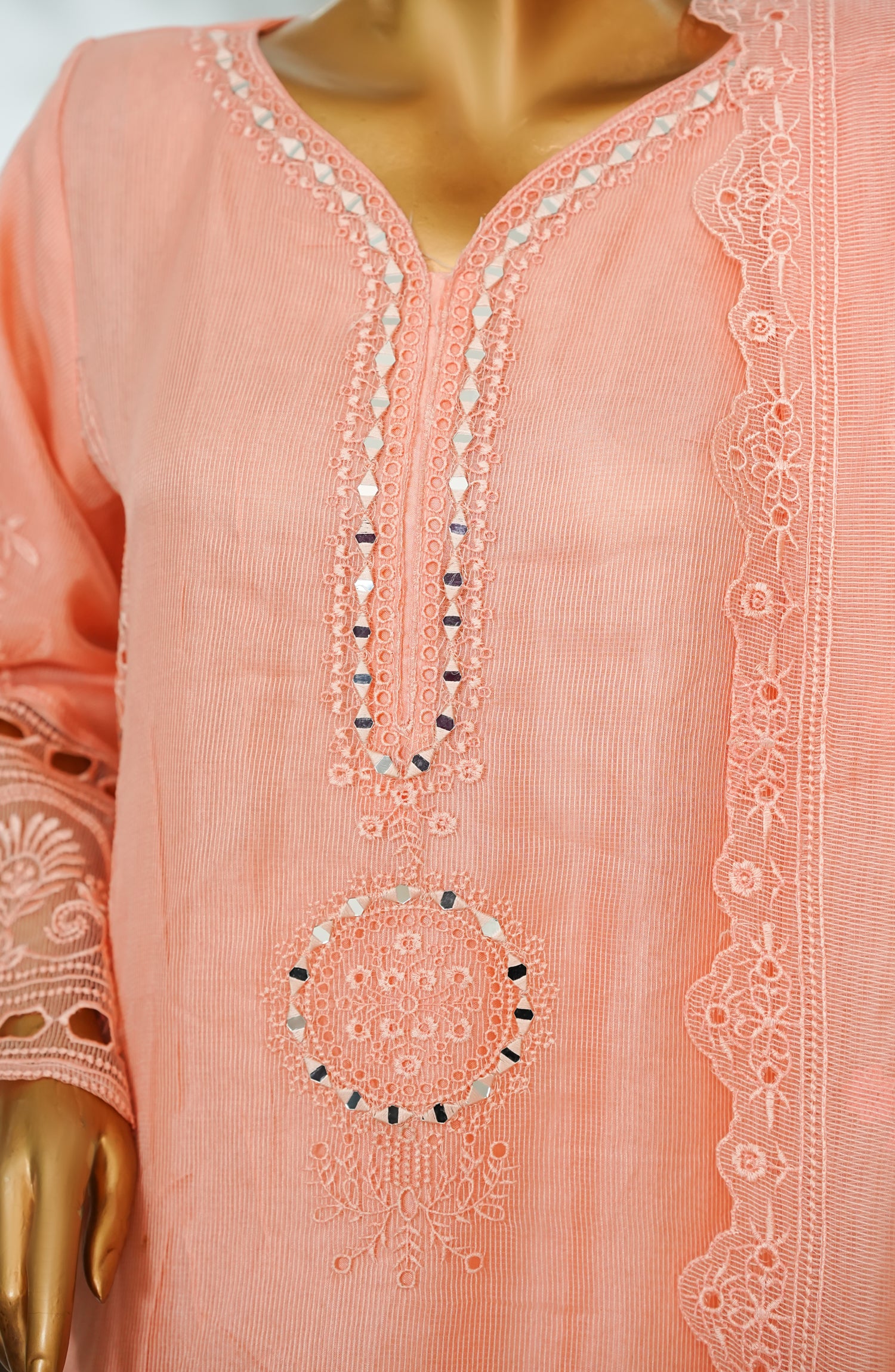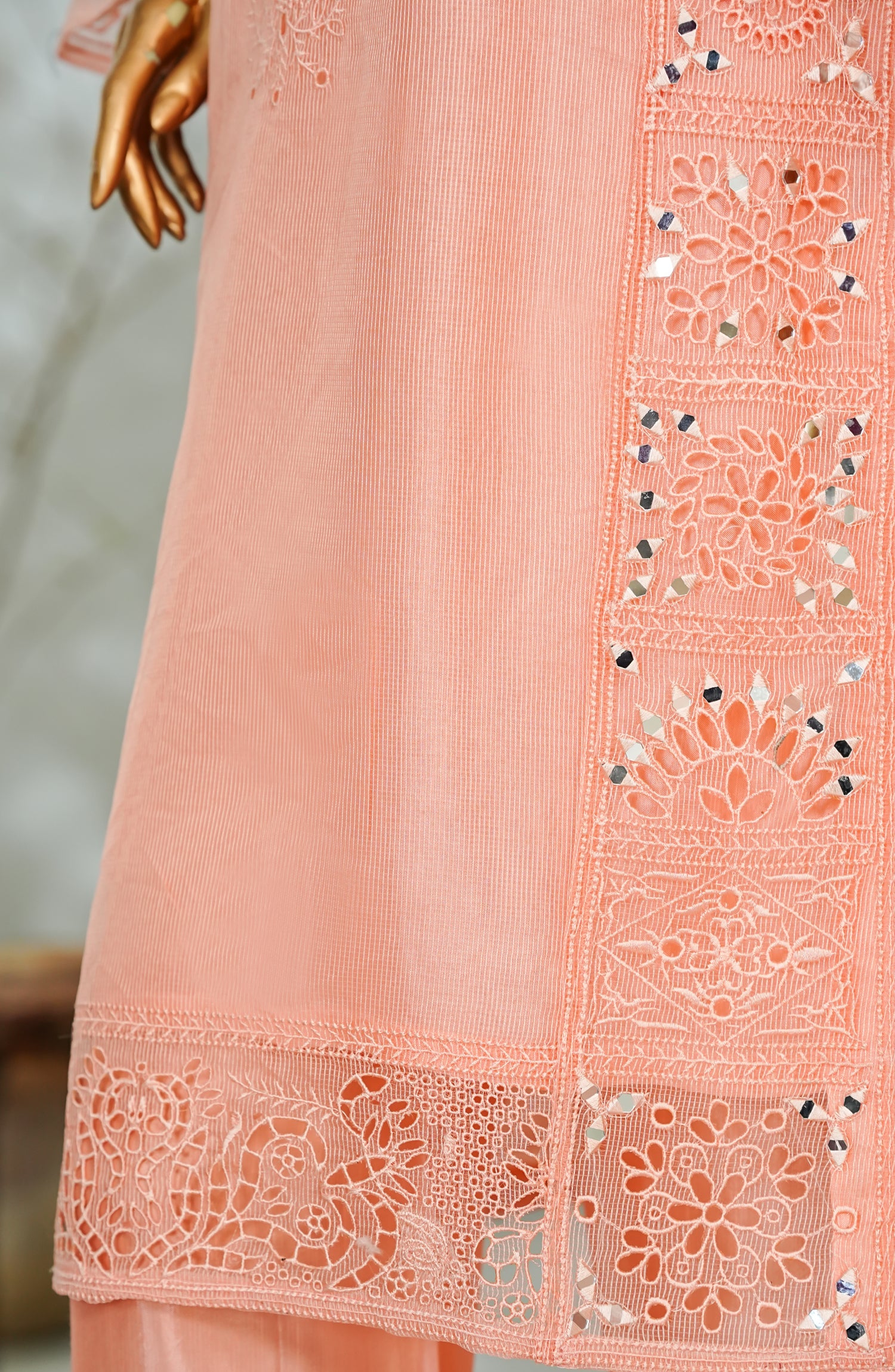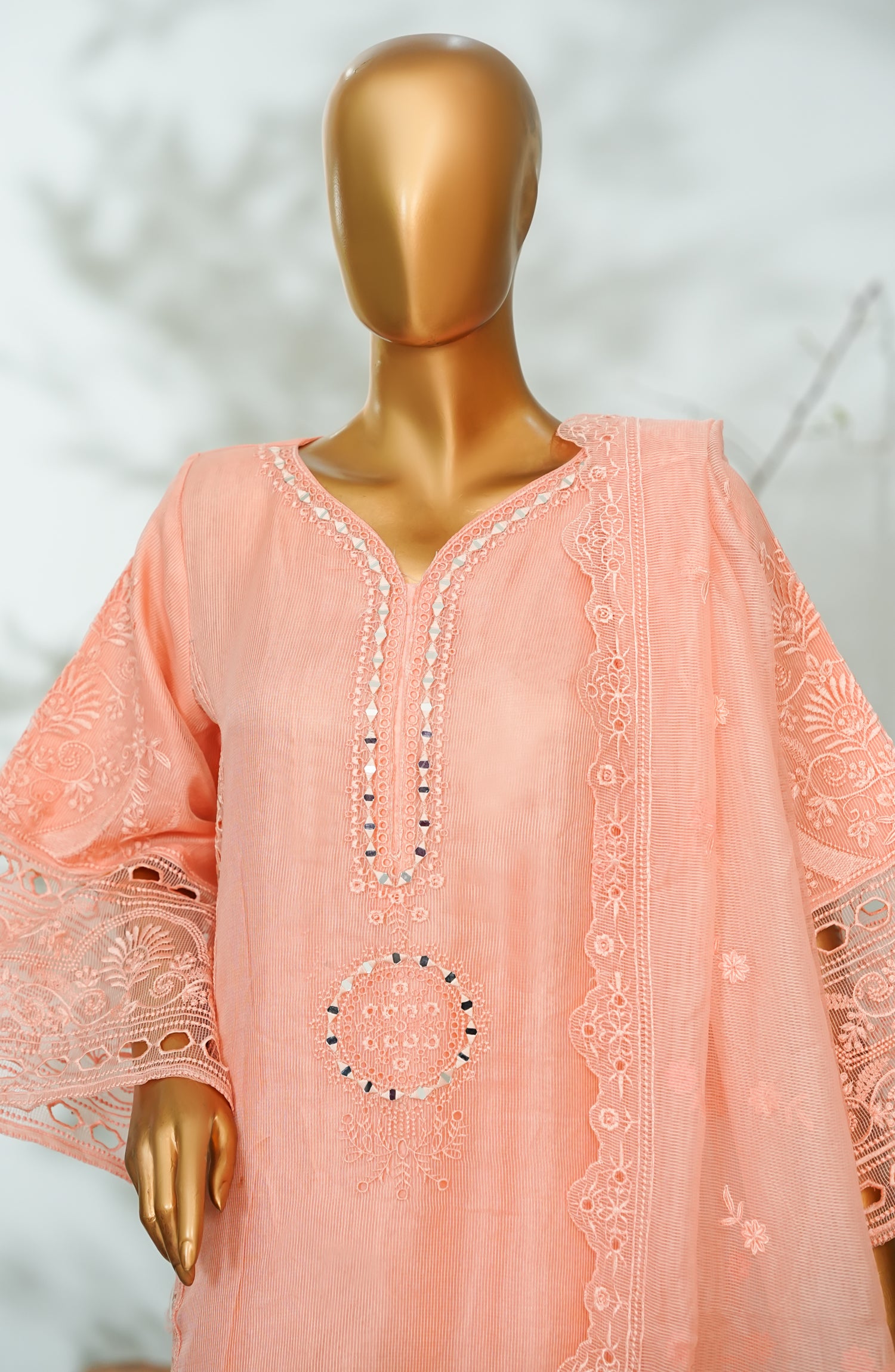 Organza Net Shirt and Dupatta with Mirror work and Embroidery
