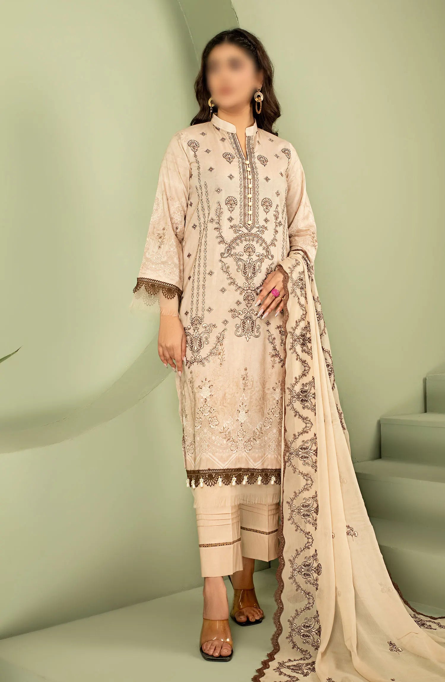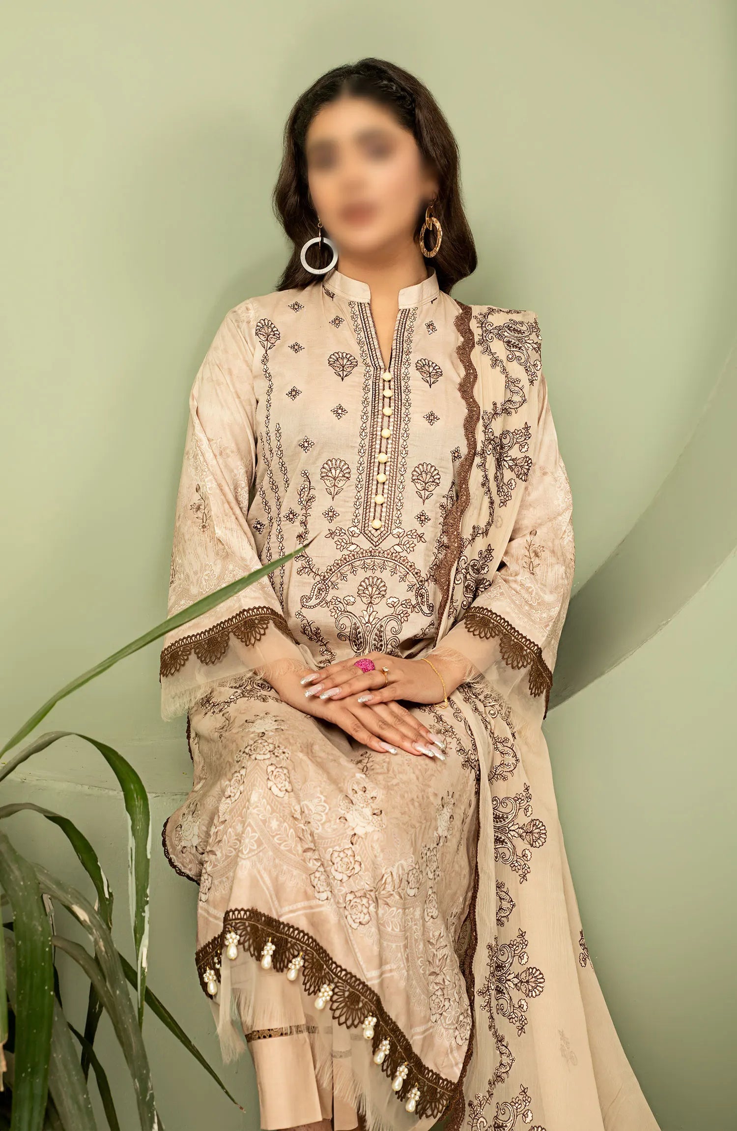 Smile Digital Print and Luxury Emb Lawn Collection has been styled in the image for photography and illustrative purposes.