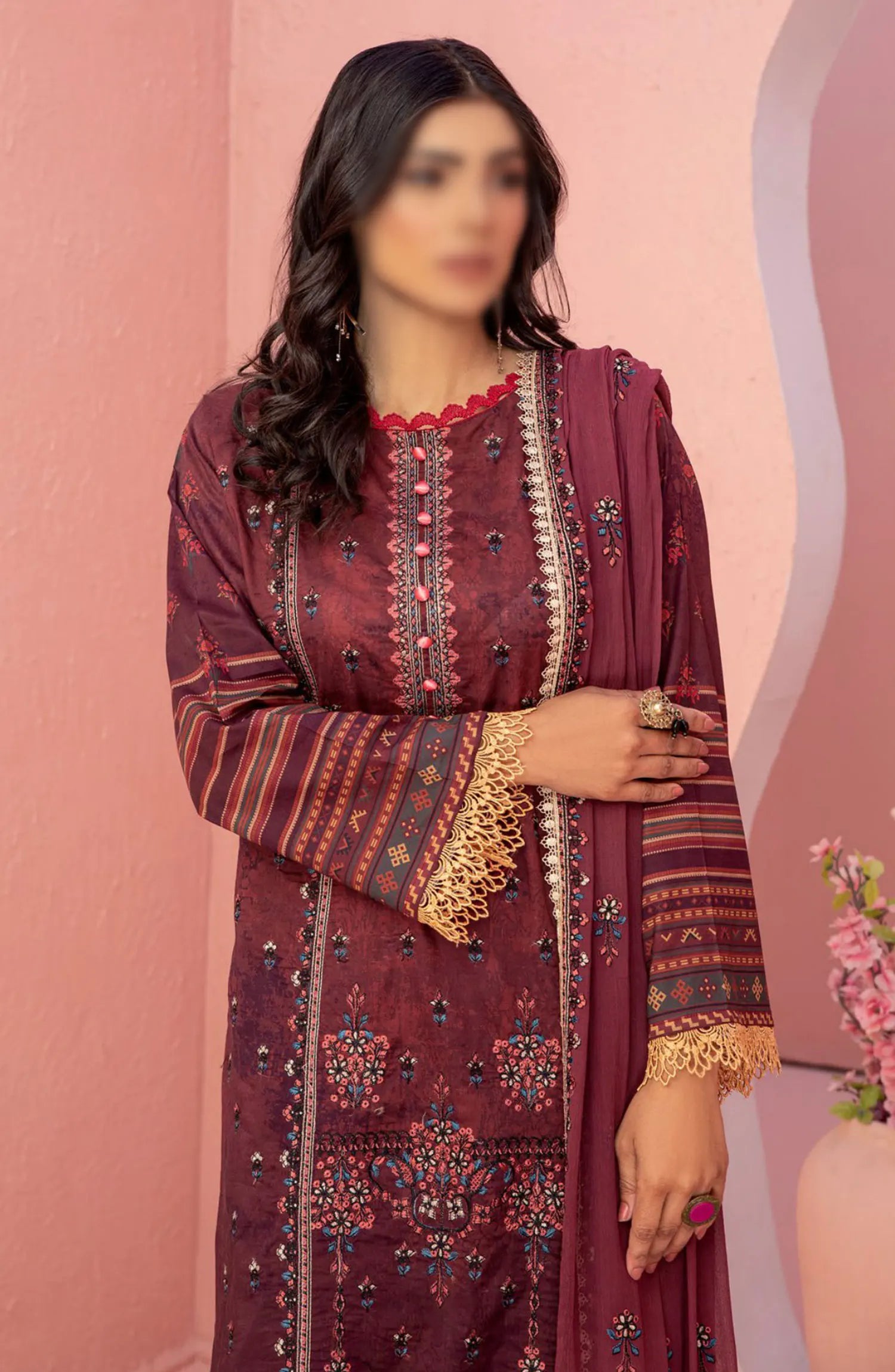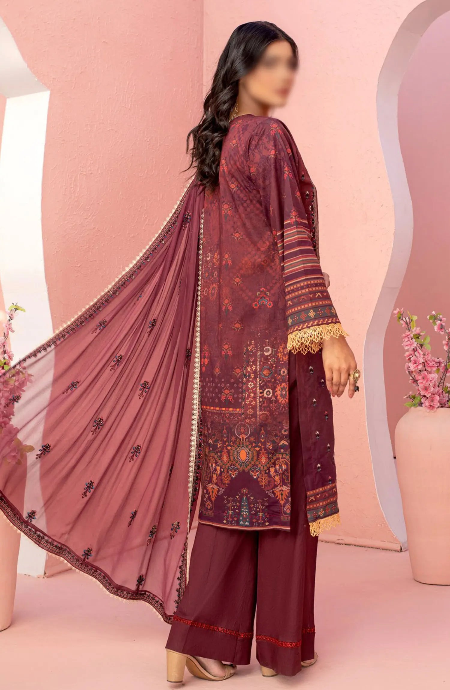 Smile Luxury Lawn Collection 2024 has been styled in the image for photography and illustrative purposes.