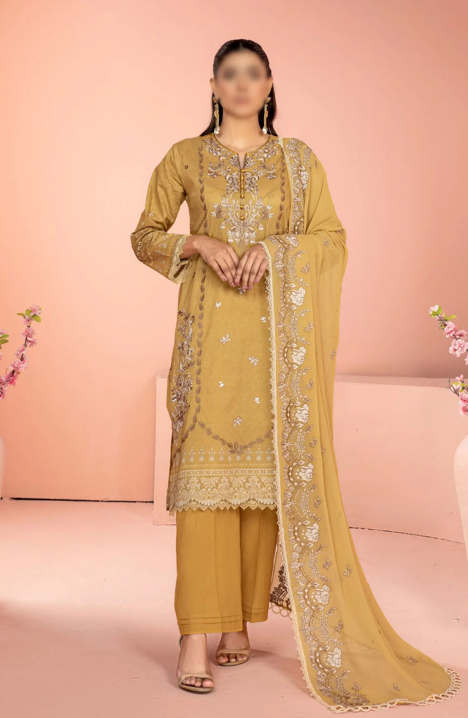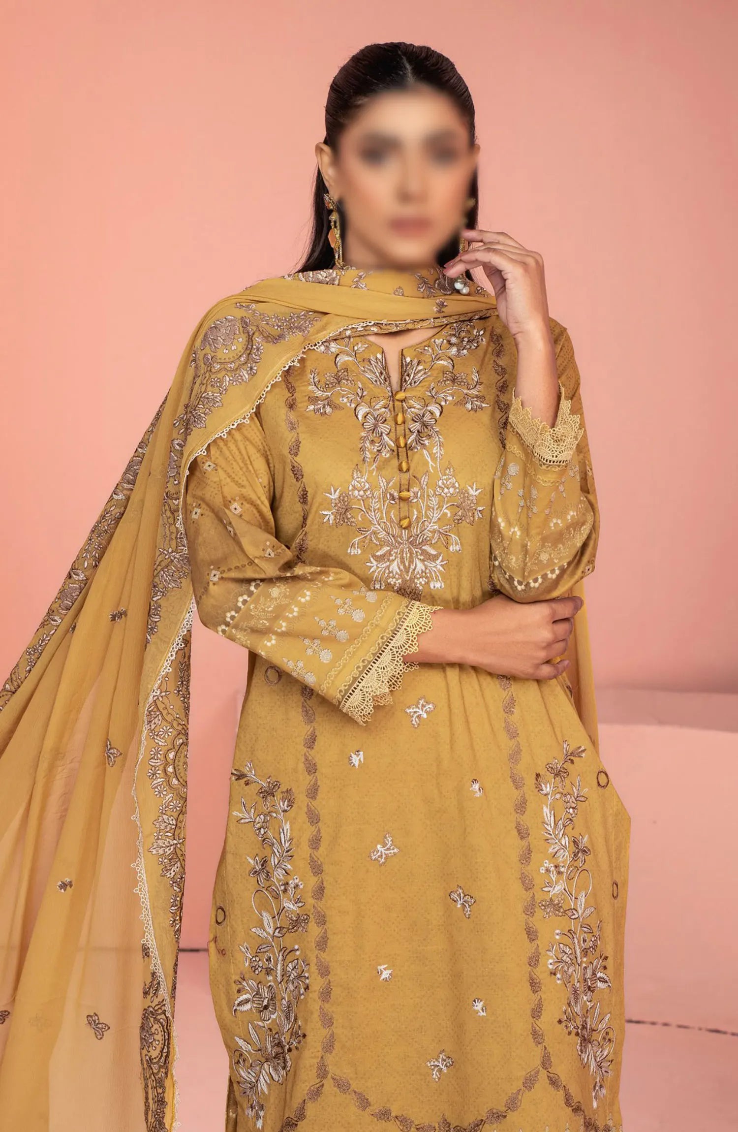 HZ Textile Digital Printed Linen Slub Unstitched 3 Piece Suit - LSD-309 - HZ25LNSL - Mustard - Winter Collection