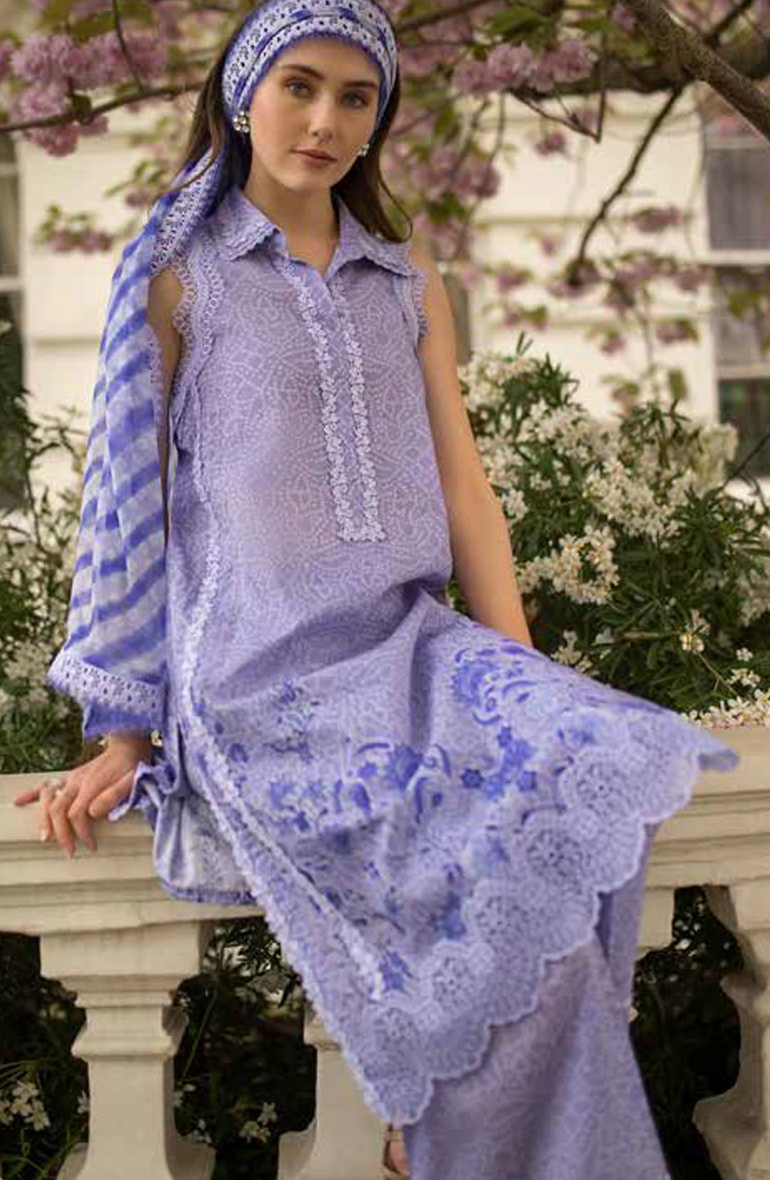 Sobia Nazir Basics Embroidered Lawn Unstitched 3 Piece Suit - SN25BS - 7A - Purple - Summer Collection