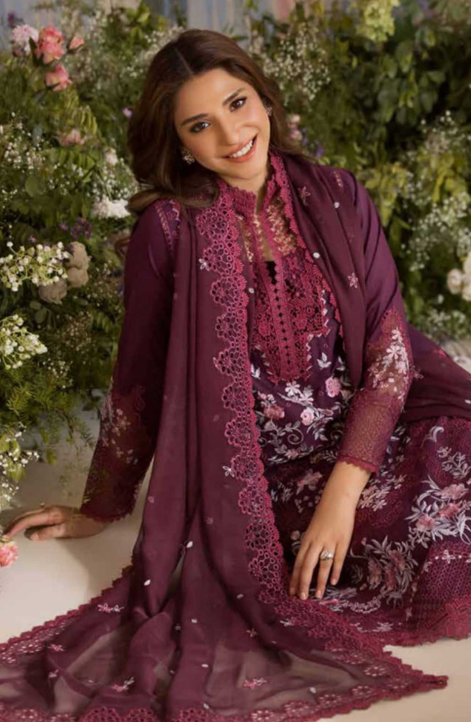 Sobia Nazir Embroidered Unstitched 3 Piece Suit - D-06 A - SBN25LL - Purple - Summer Collection