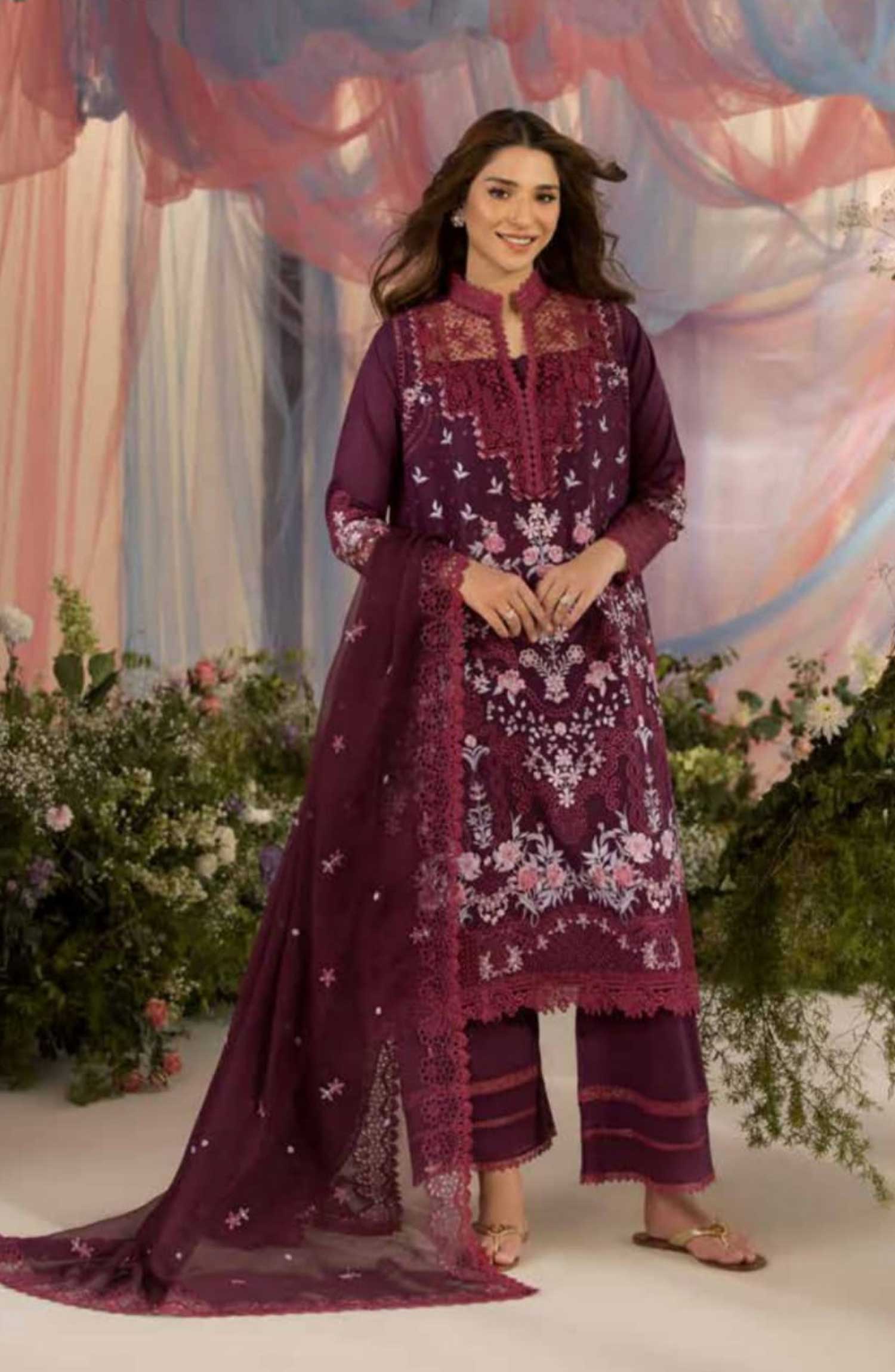 Home Sobia Nazir Embroidered Unstitched 3 Piece Suit - D-06 A - SBN25LL - Purple - Summer Collection