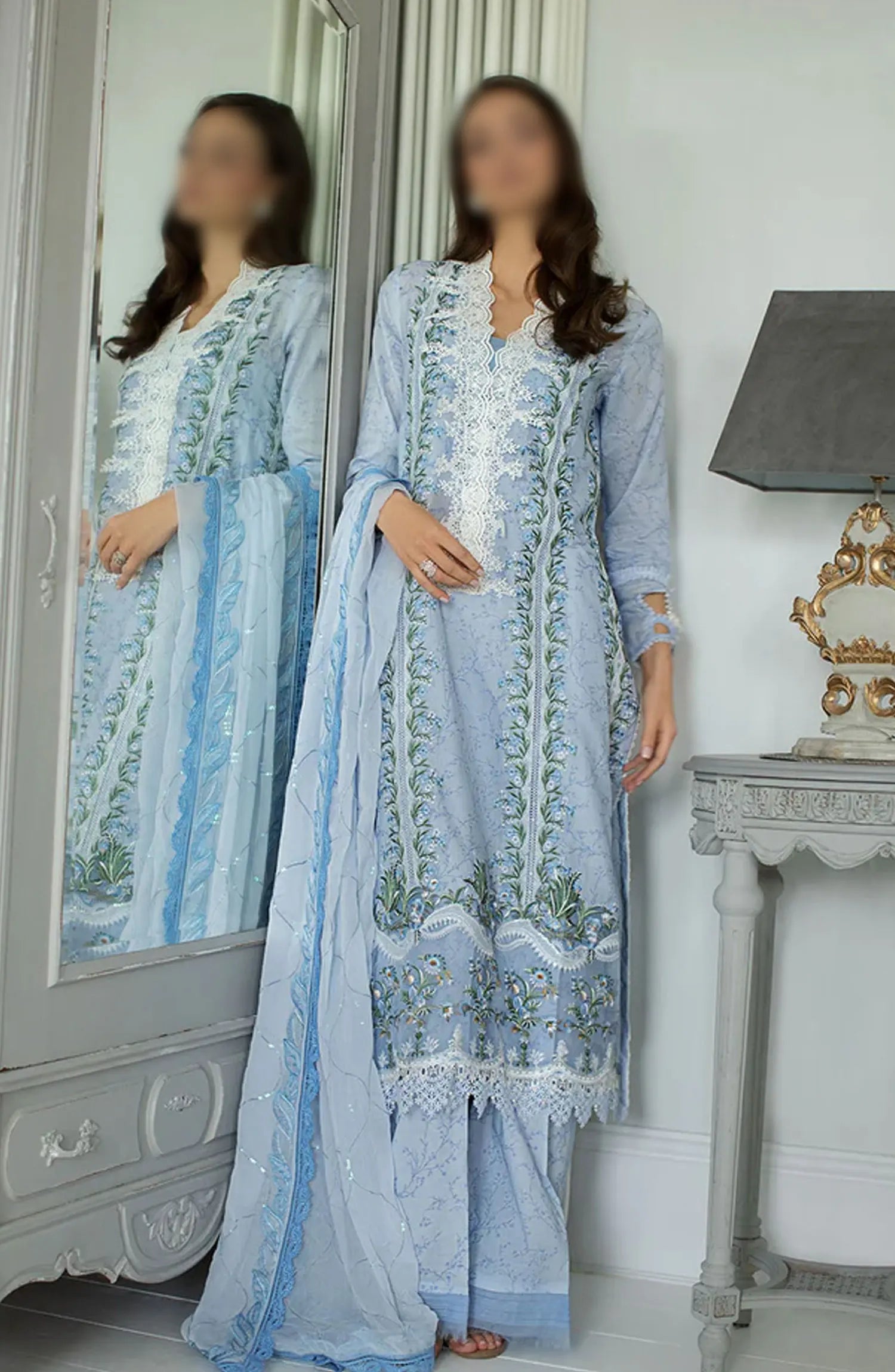 Sobia Nazir Luxury Lawn Collection 2024 has been styled in the image for photography and illustrative purposes.