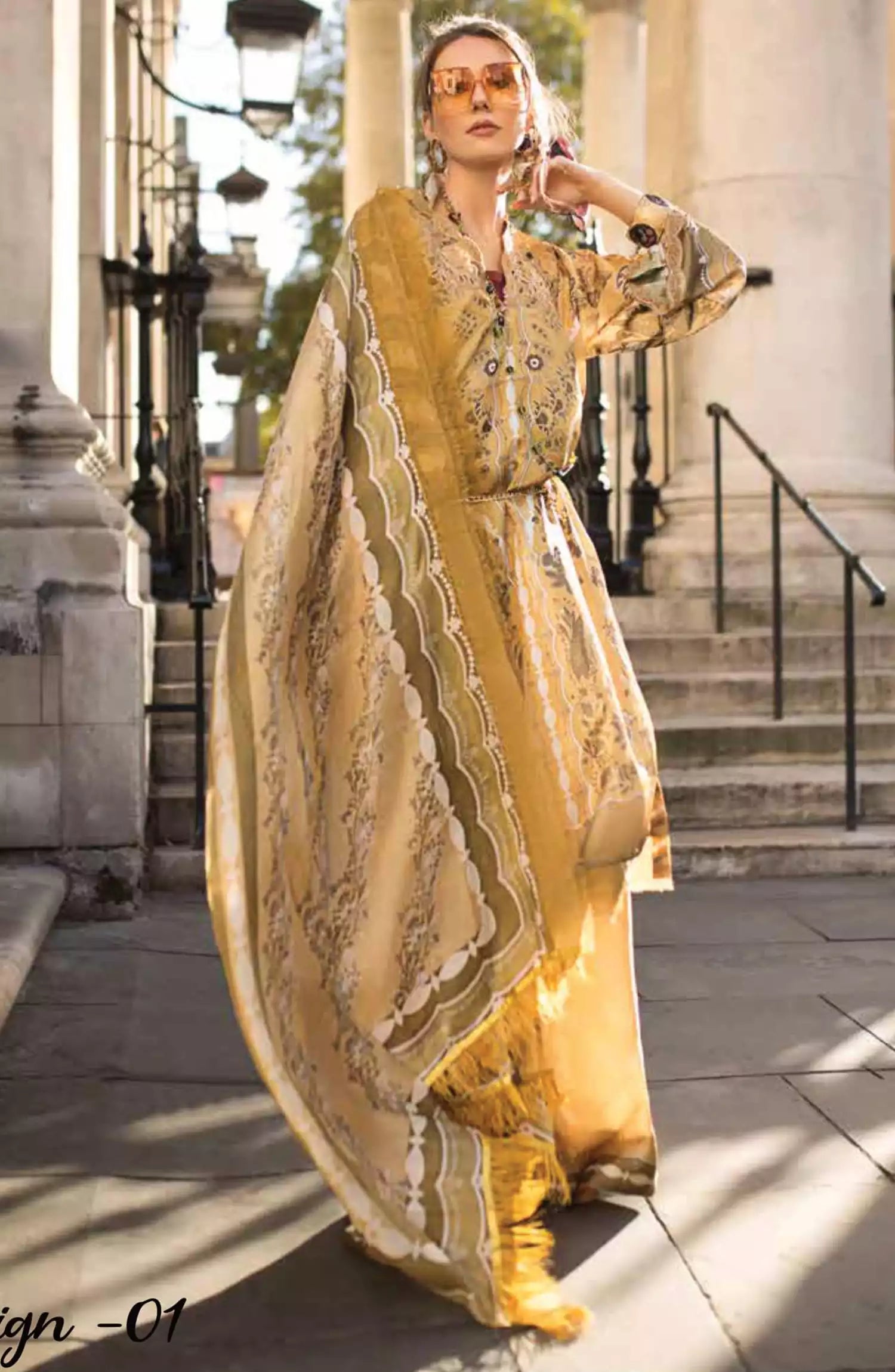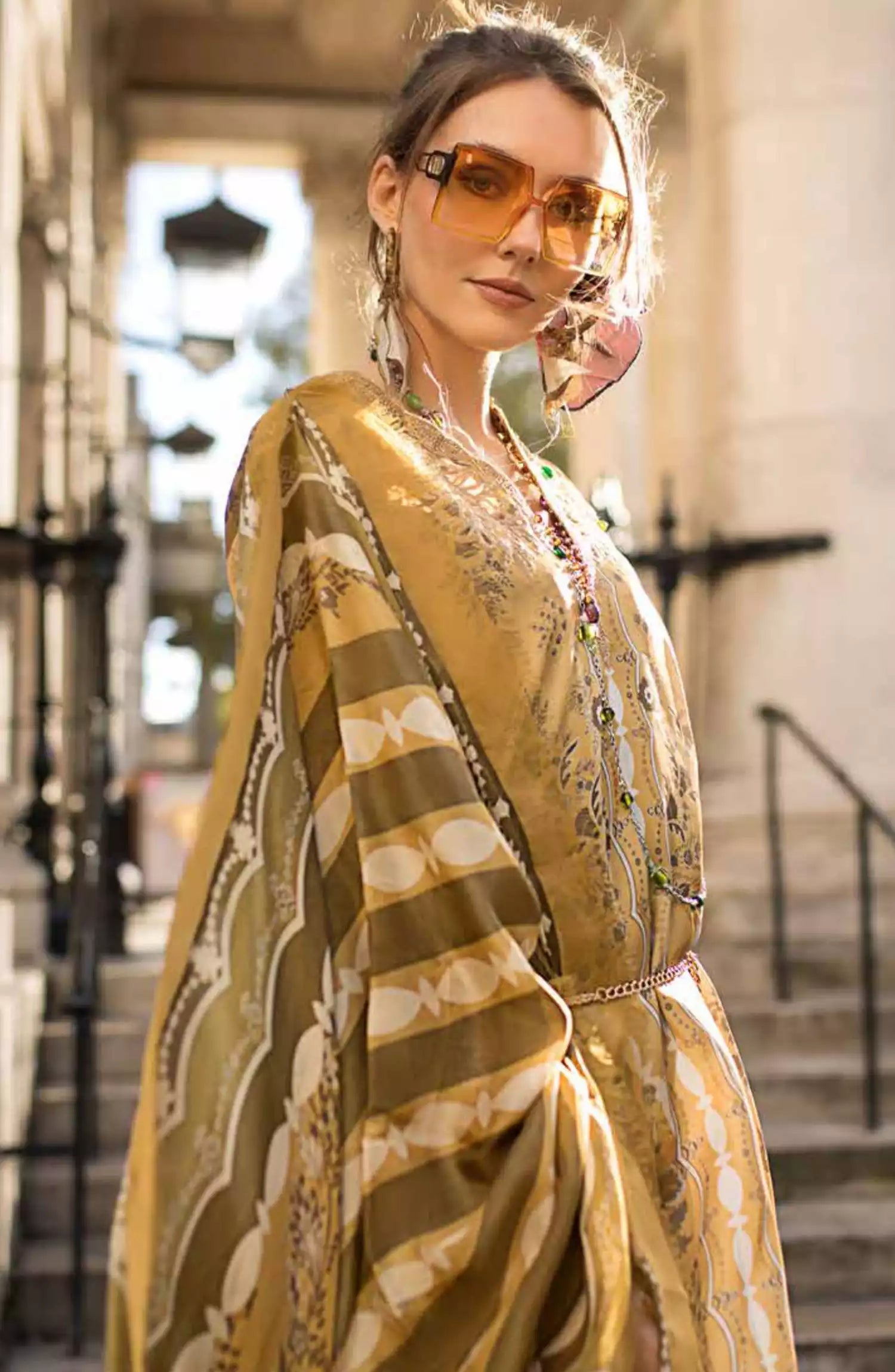 Sobia Nazir Satin Unstitched Collection 2024 has been styled in the image for photography and illustrative purposes.