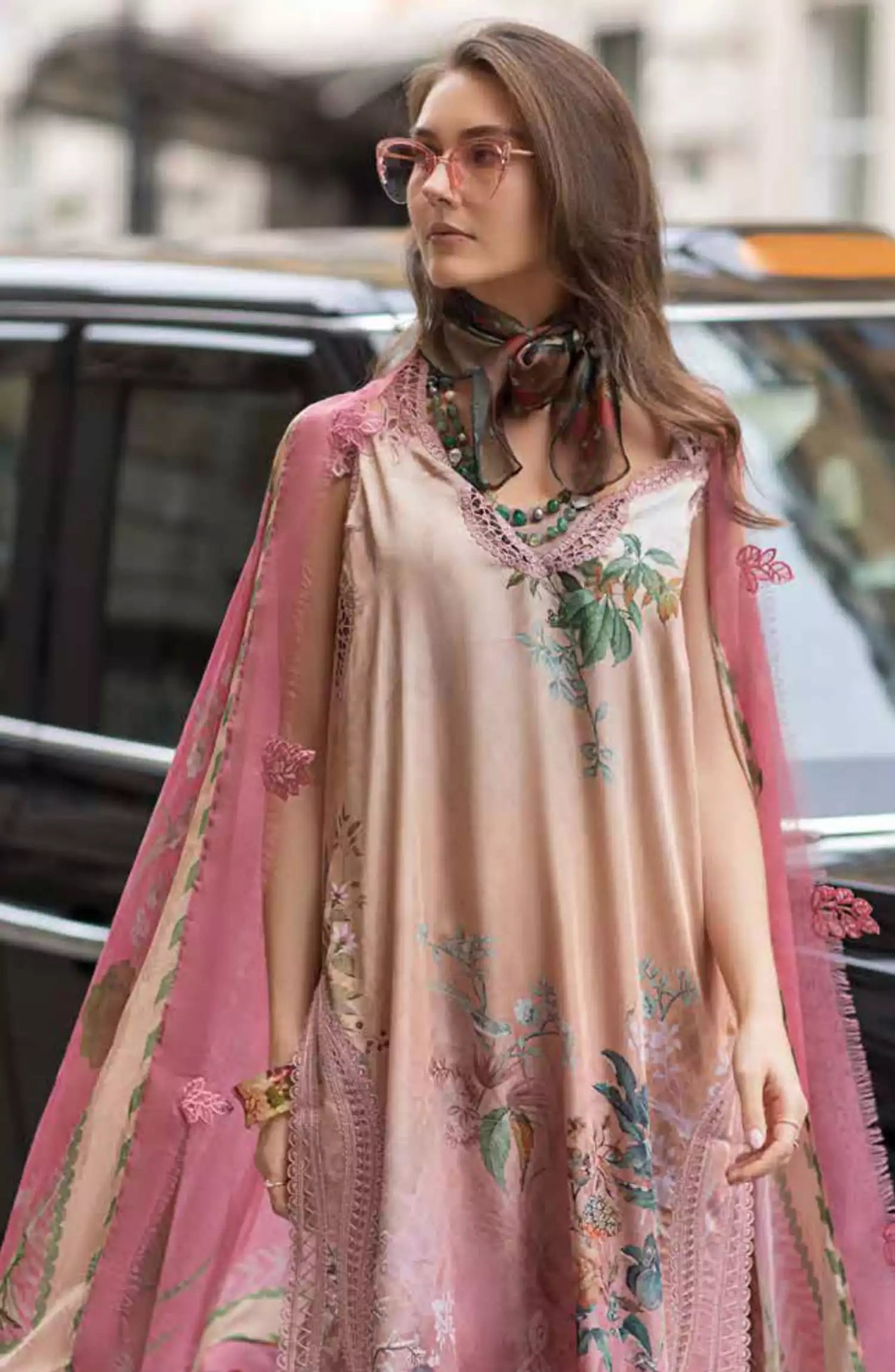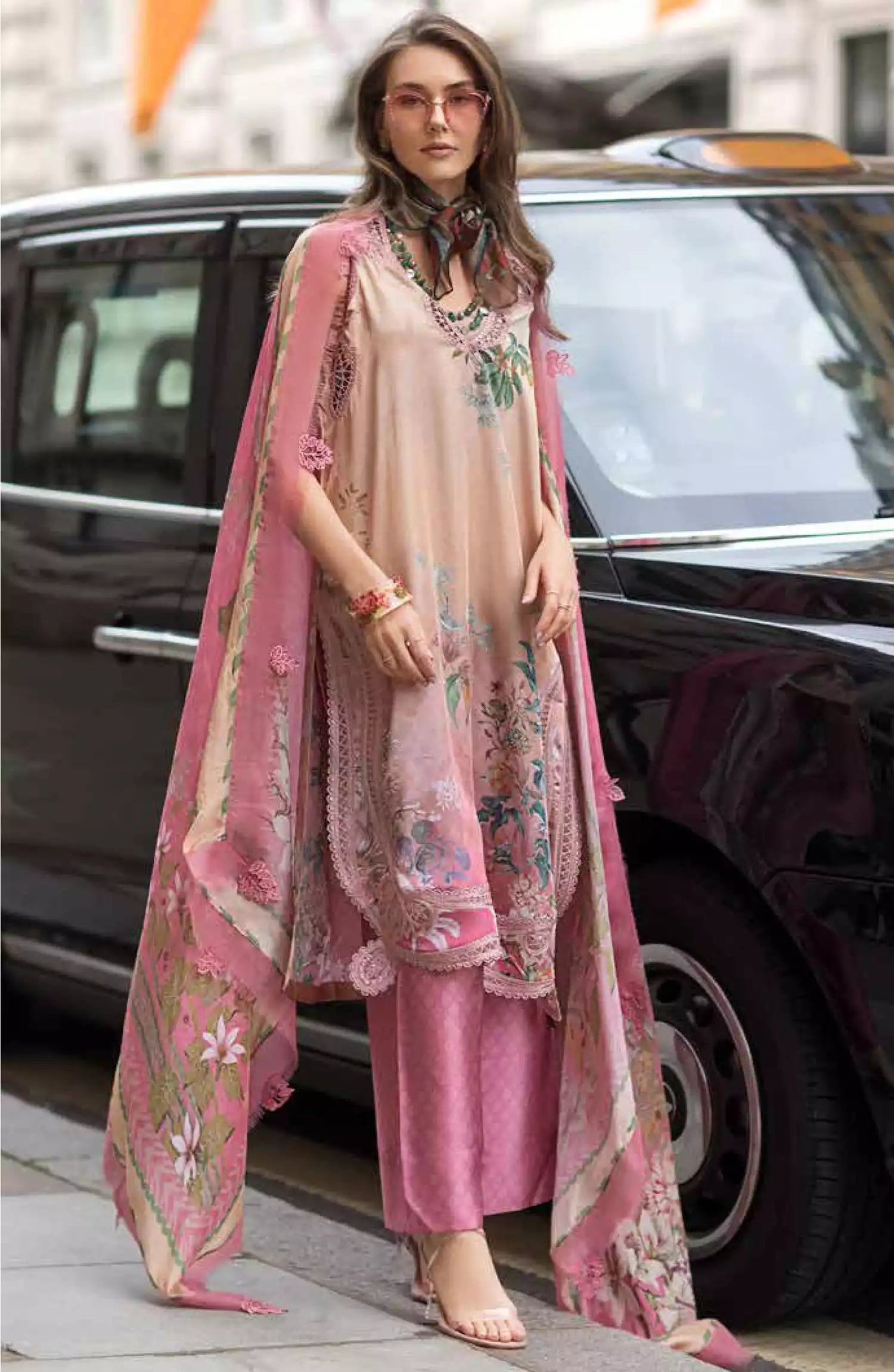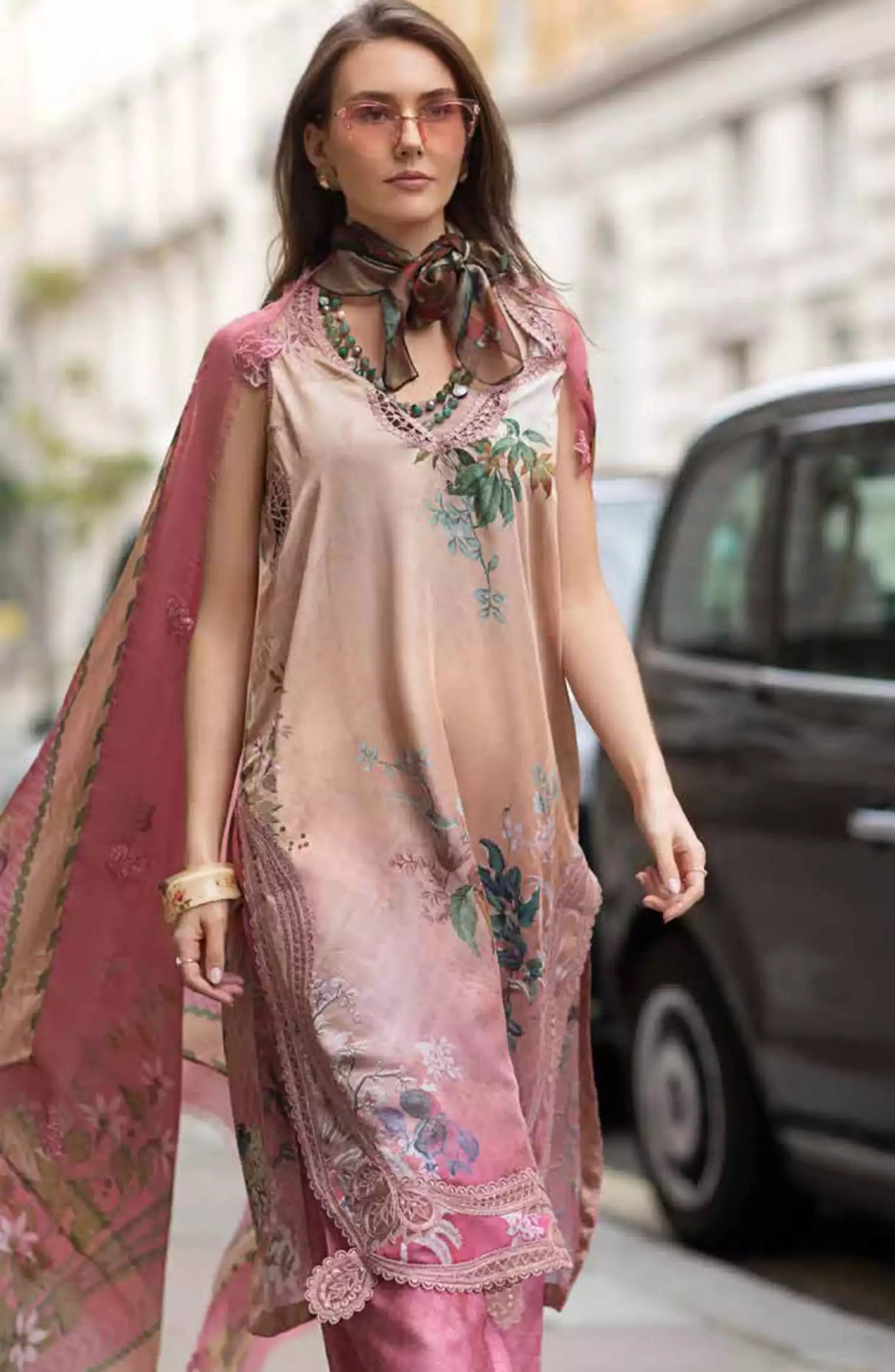 Sobia Nazir Satin Unstitched Collection 2024 has been styled in the image for photography and illustrative purposes.