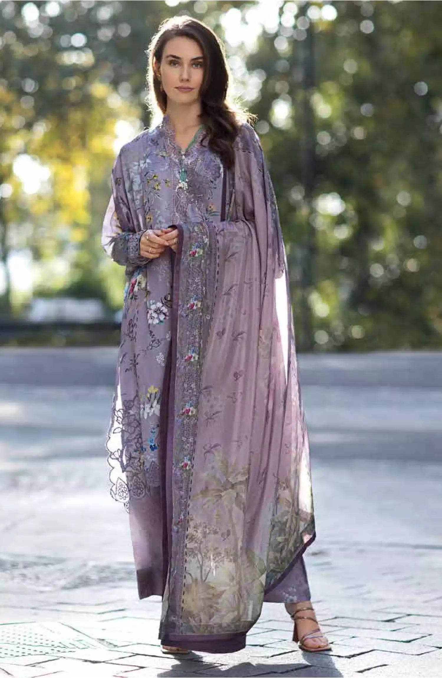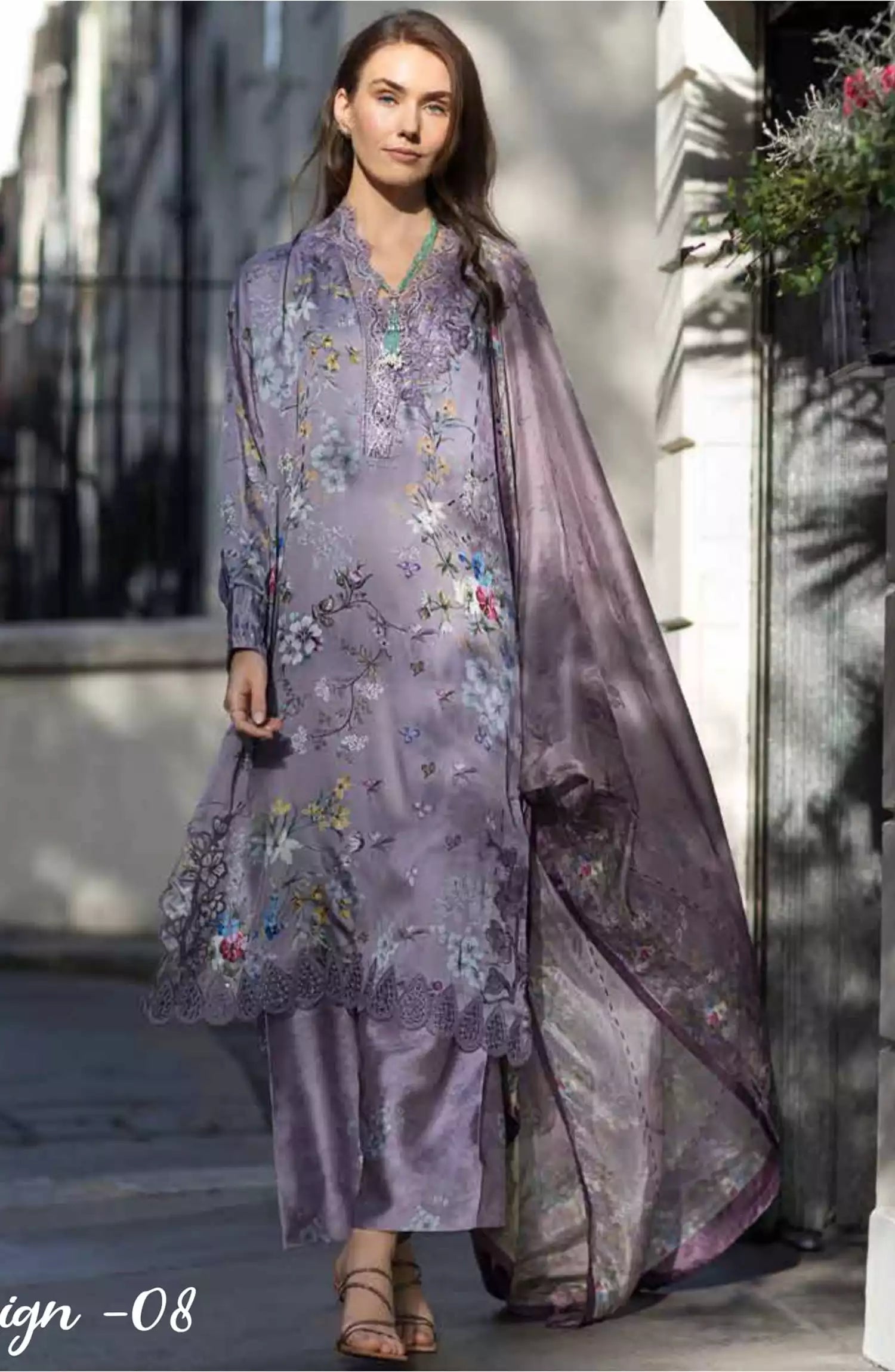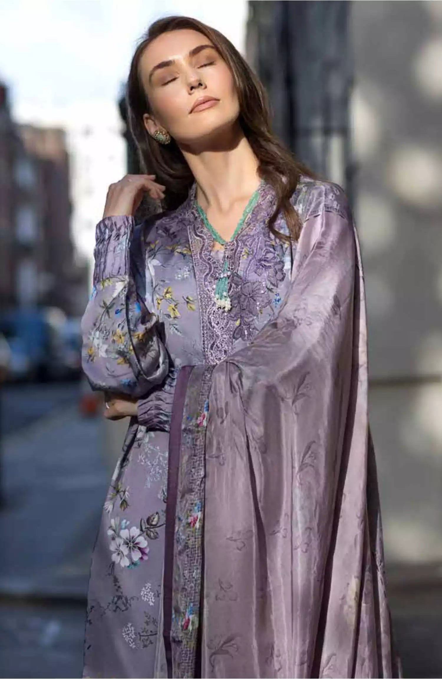 Sobia Nazir Satin Unstitched Collection 2024 has been styled in the image for photography and illustrative purposes.