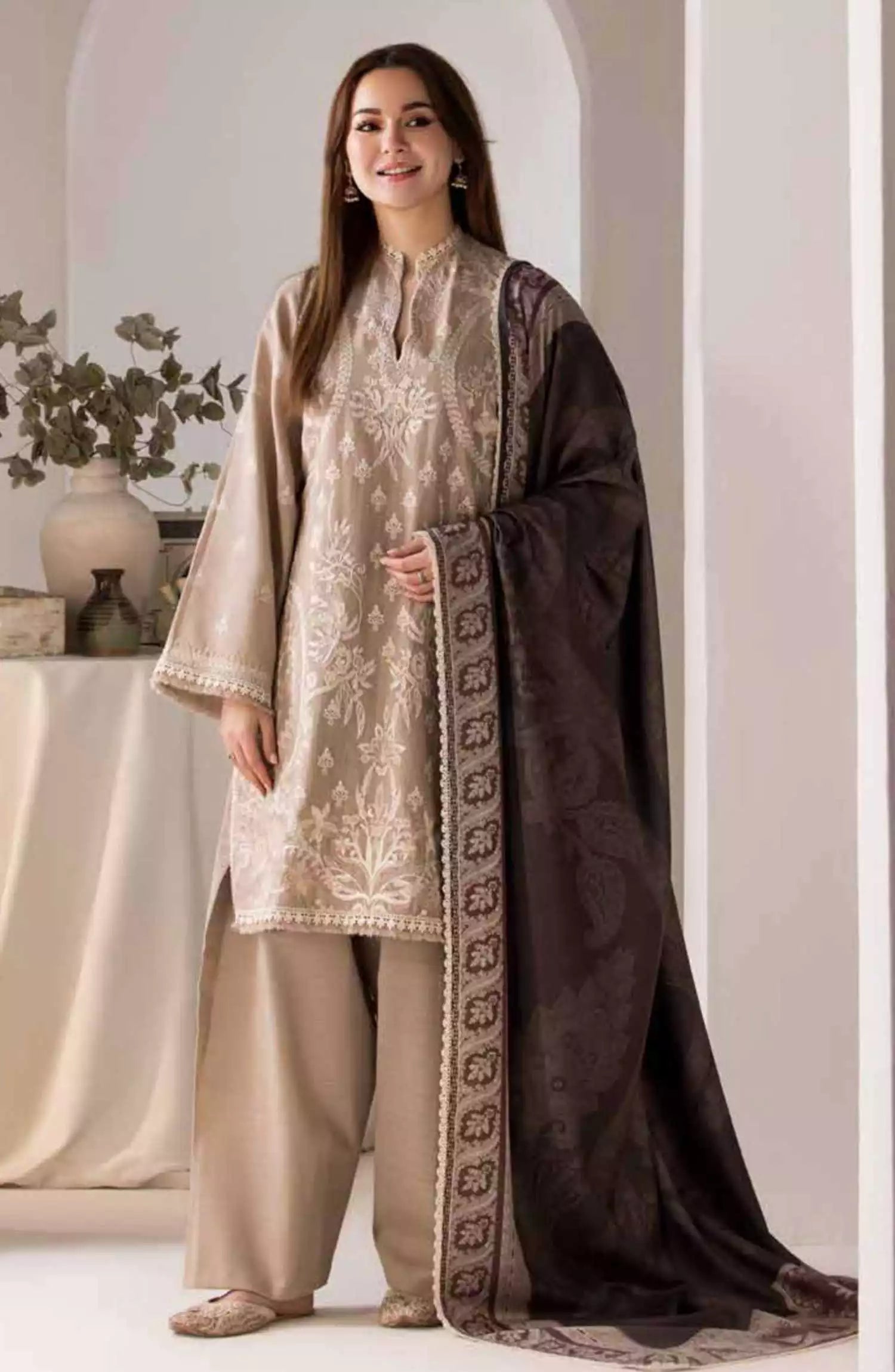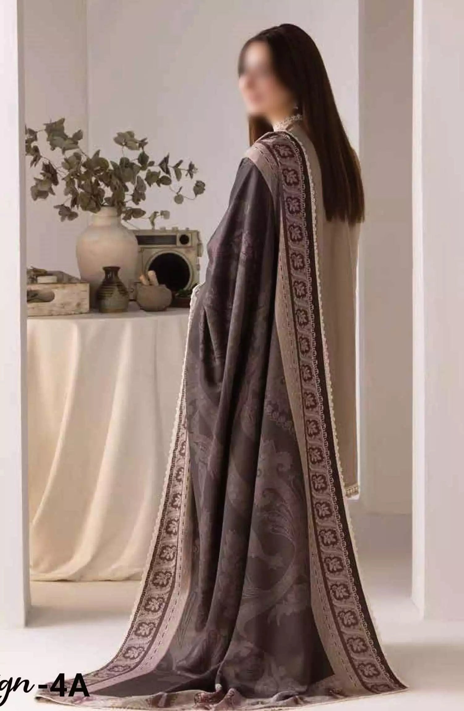 Sobia Nazir Winter Shawl Unstitched Collection 2024 has been styled in the image for photography and illustrative purposes.