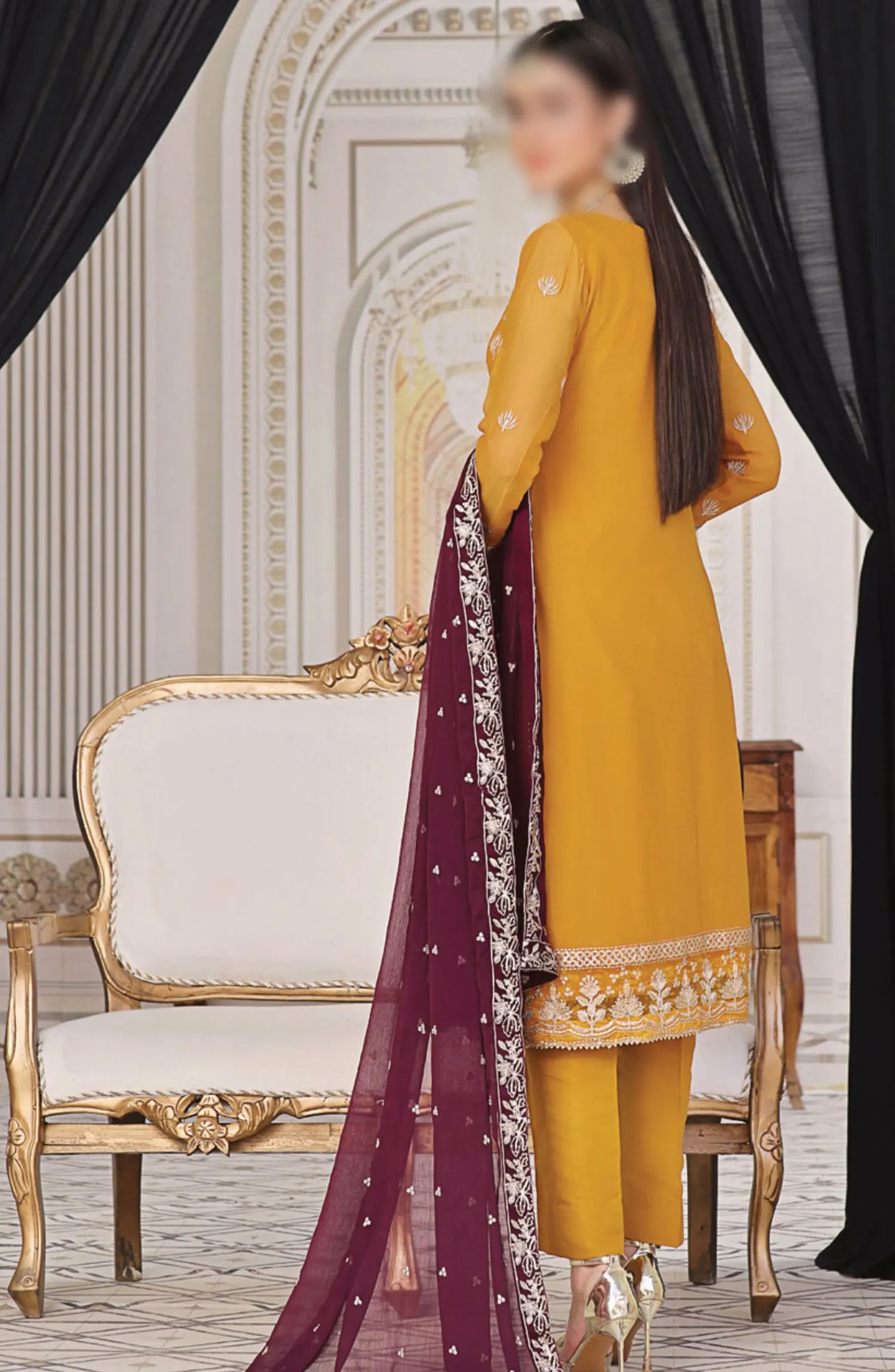 Lamisah by Lavish Premium Afsana Embroidered Chiffon Unstitched 3 Piece Suit - D-02 Champagne Blossom - LP25AFS - Gold - Luxury Collection