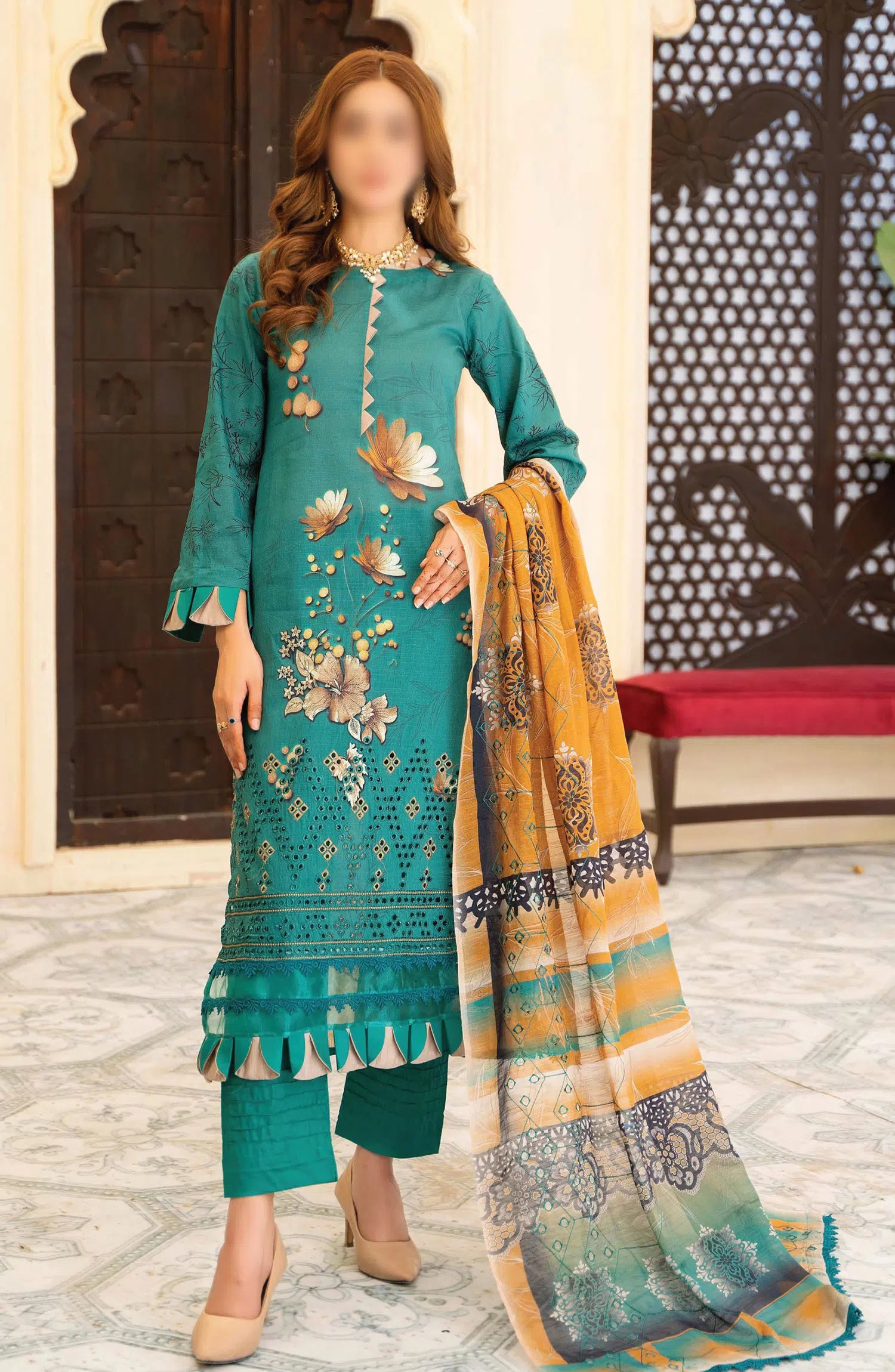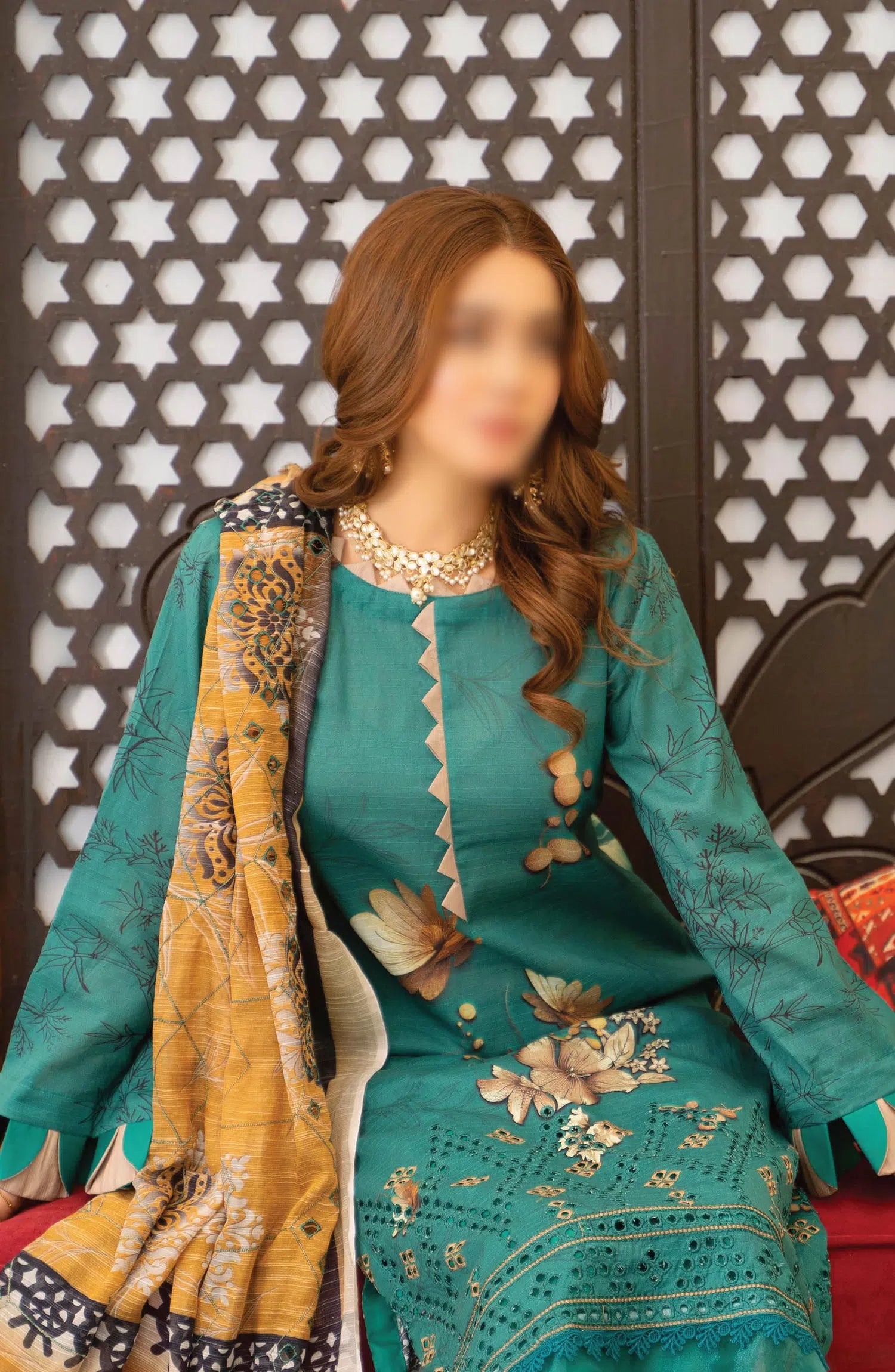 Sohana Digital Embroidered Lawn Collection has been styled in the image for photography and illustrative purposes.
