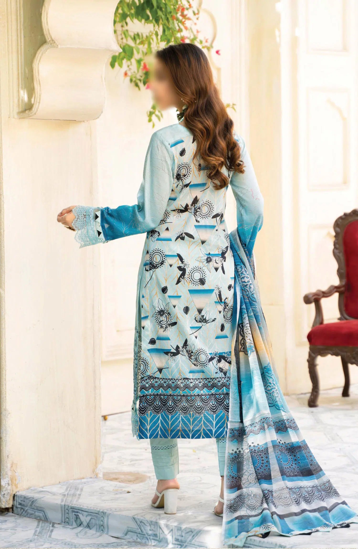 3 Piece Digital Embroidered Lawn suit with Digital Embroidered Voile Dupatta .