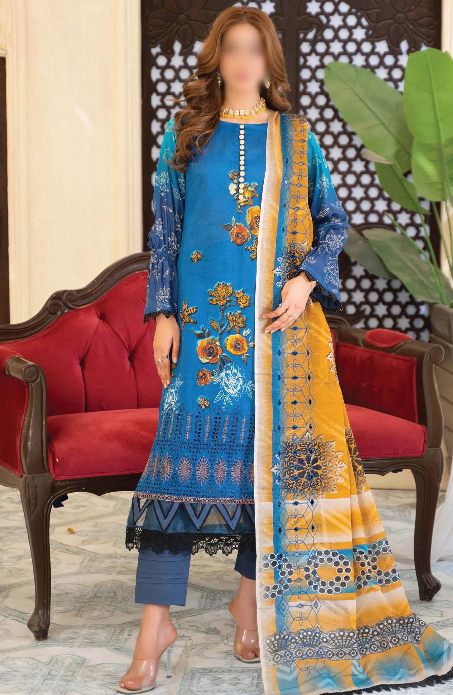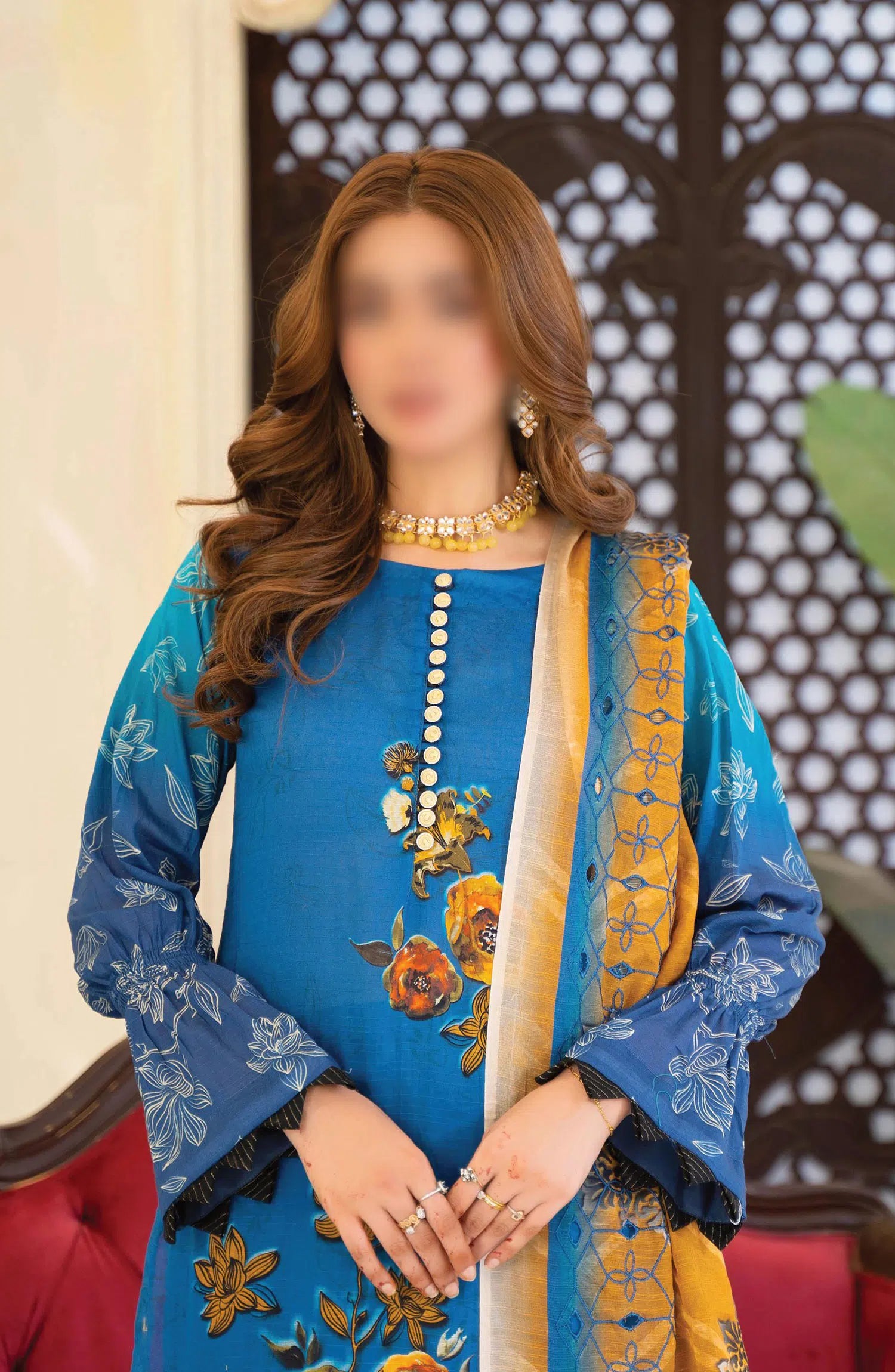 Sohana Digital Embroidered Lawn Collection has been styled in the image for photography and illustrative purposes.