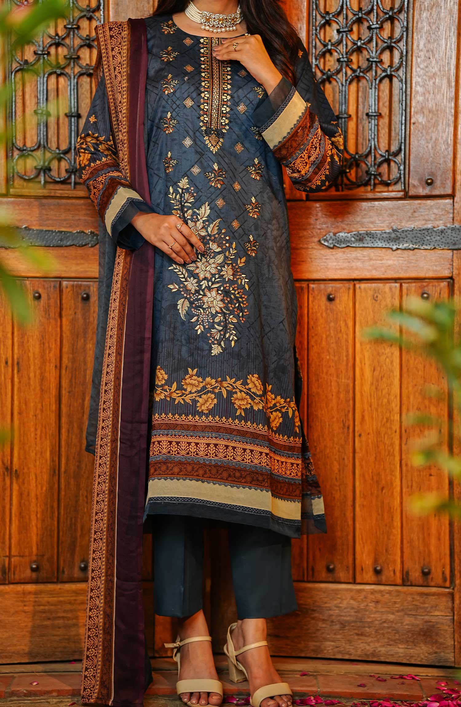 HZ Textile Digital Printed Linen Slub Unstitched 3 Piece Suit - LSD-308 - HZ25LNSL - Blue - Winter Collection