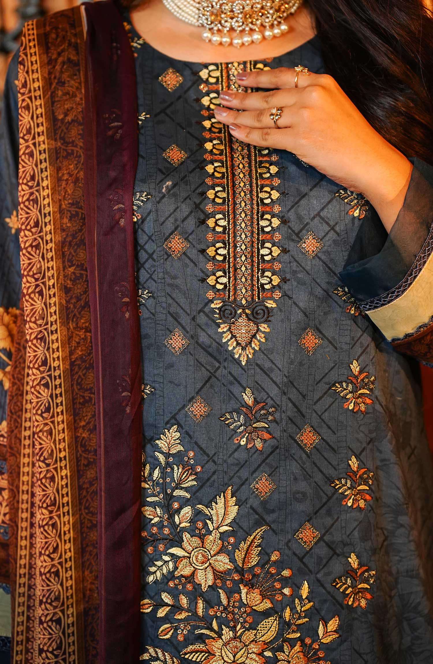 Soirees by Maryum Maniya Embroidered Lawn Unstitched 3 Piece Suit SS-37 MM25SS Blue - Summer Collection