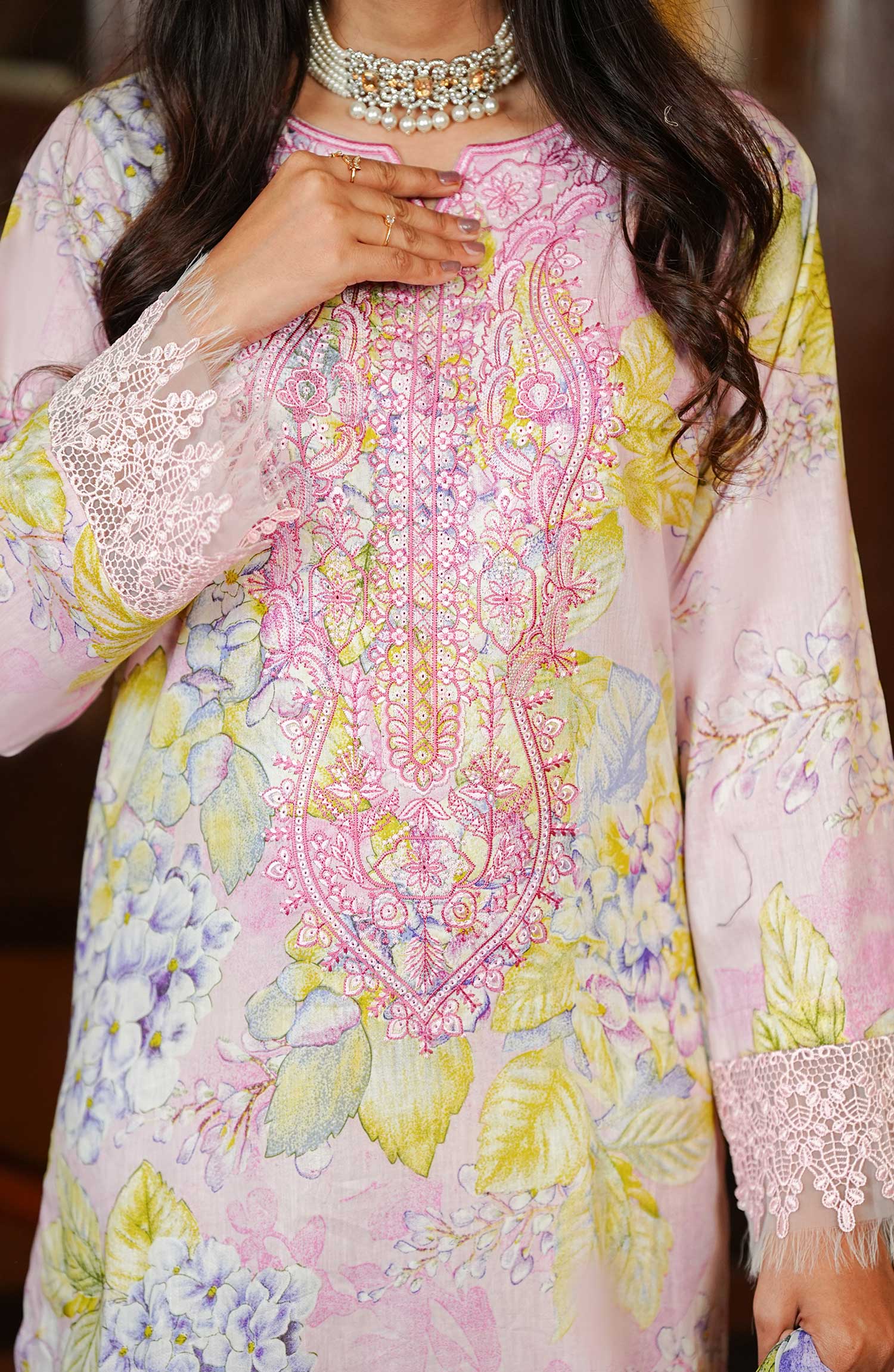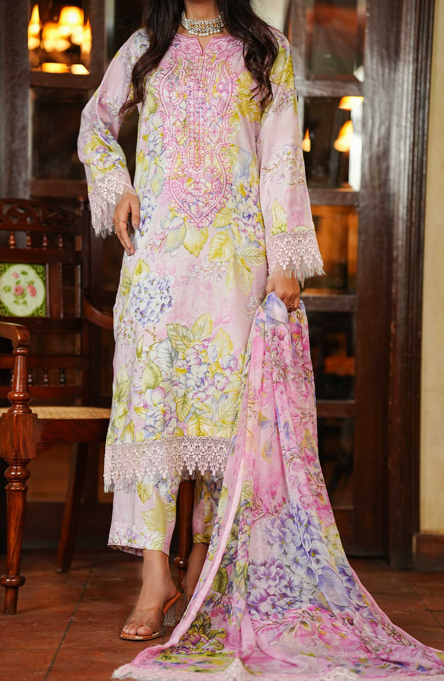 Maryum Maniya Summer Soirees Unstitched Printed and Embroidered Collection Drop 5 has been styled in the image for photography and illustrative purposes.