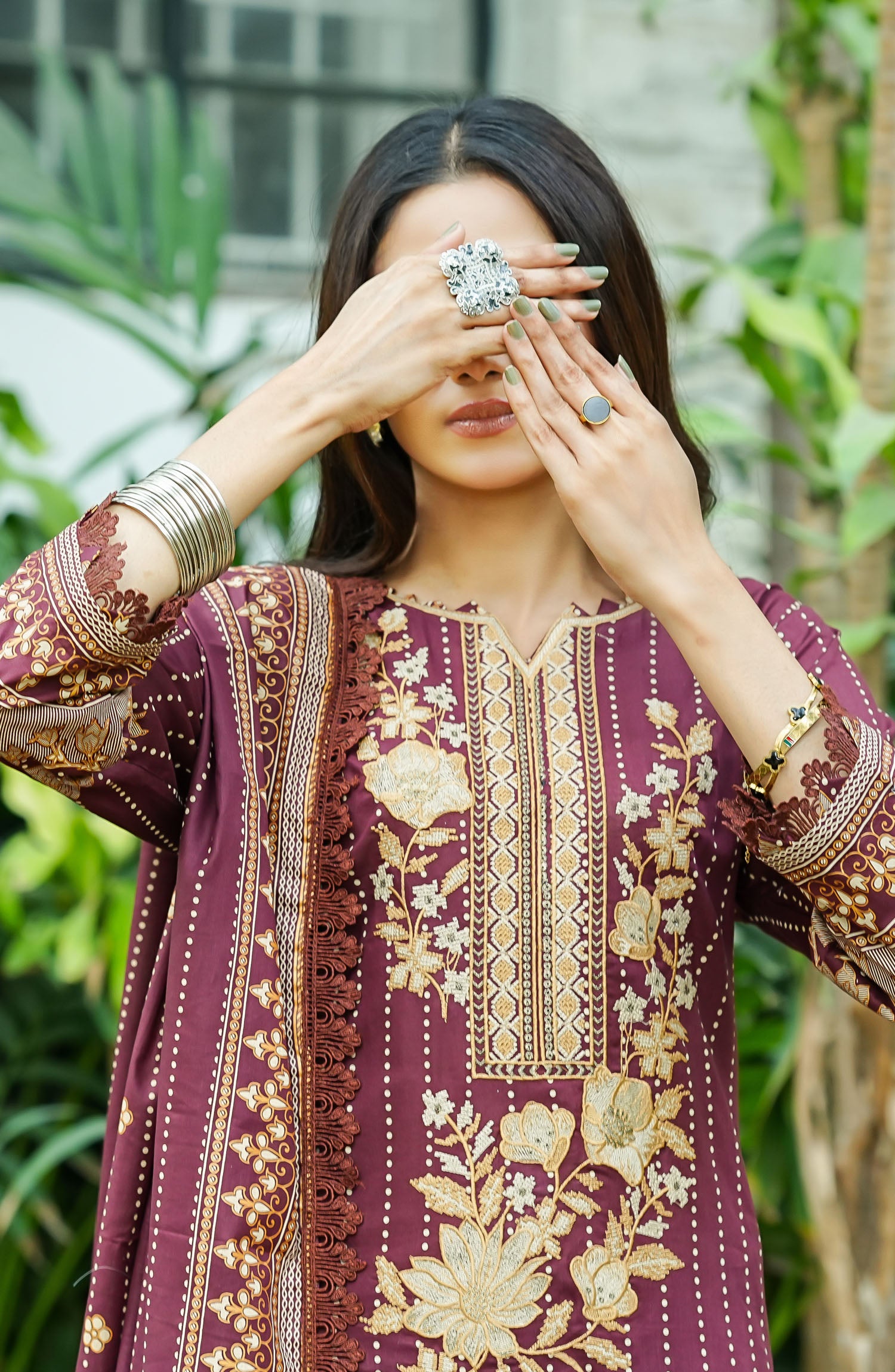 Soirees by Maryum Maniya Embroidered Lawn Unstitched 3 Piece Suit - SS-53 - MM25SS6 - Magenta - Summer Collection