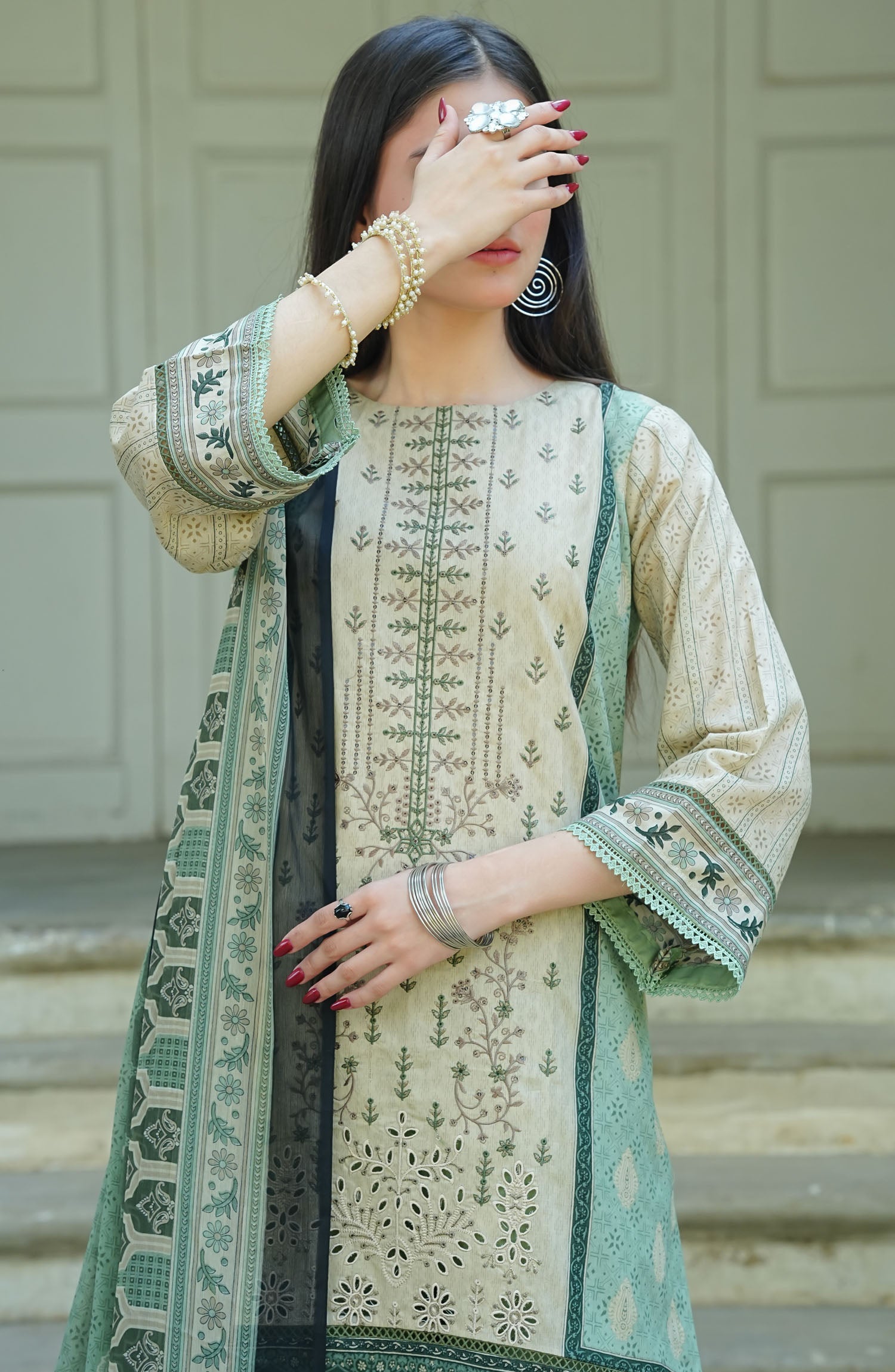 Printed and Embroidered Luxury Lawn Shirt