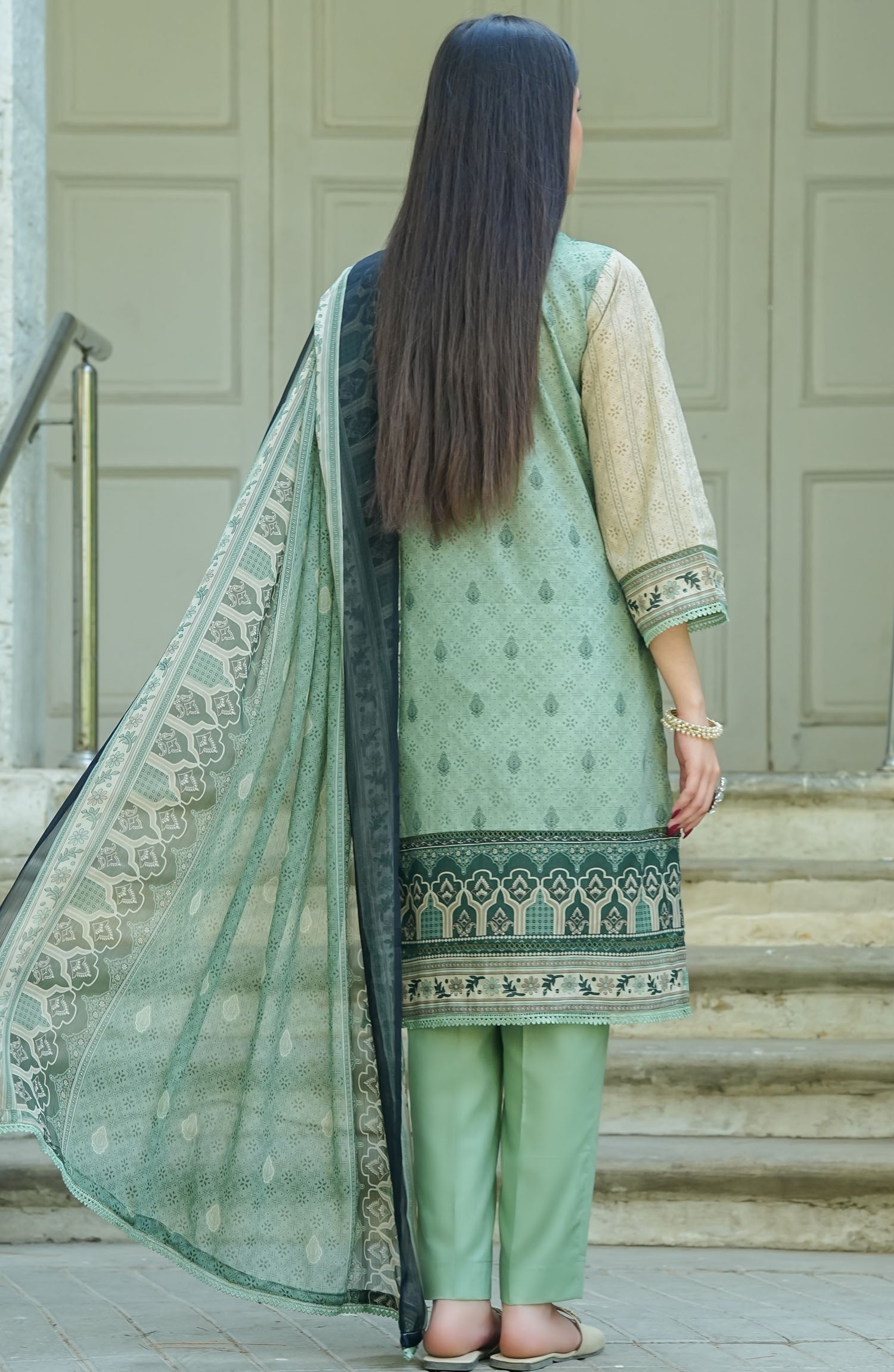 The standard style comes as a long-sleeved kameez with dupatta and trouser/shawlar.