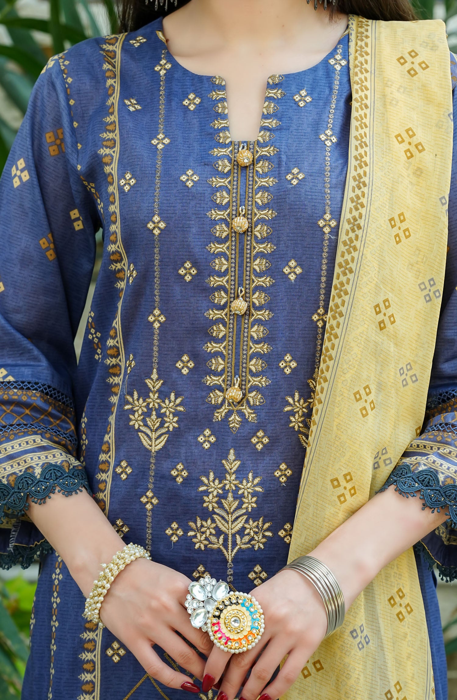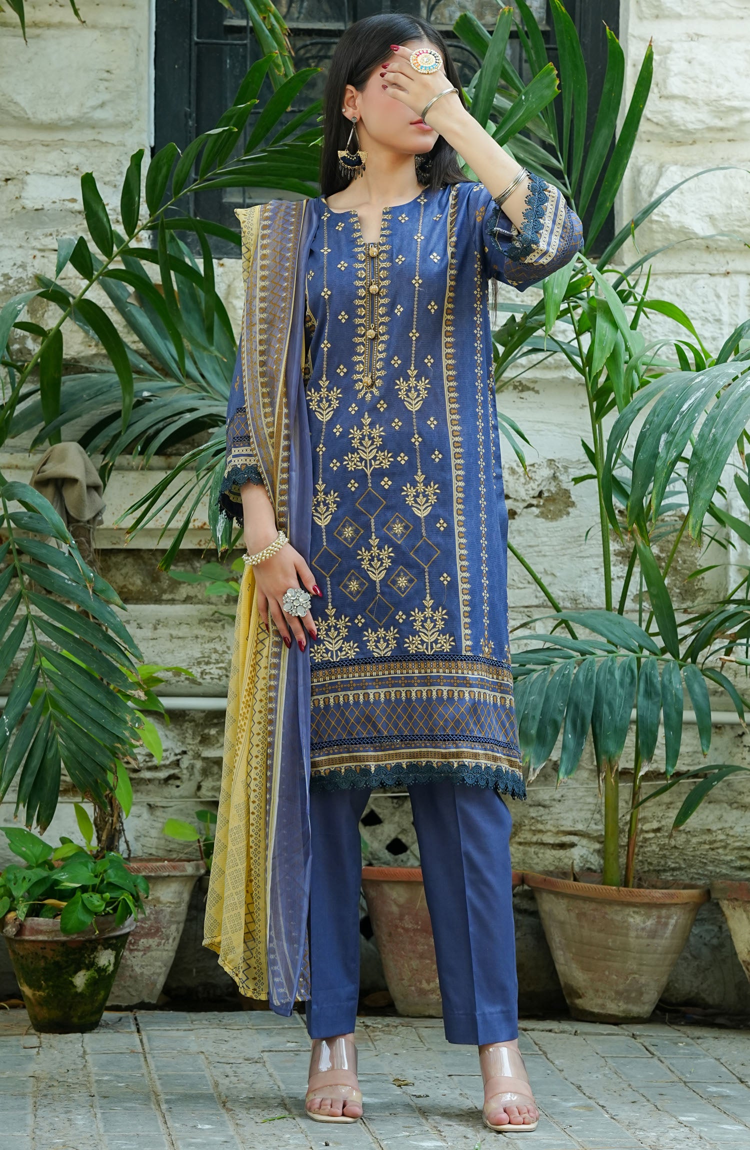The standard style comes as a long-sleeved kameez with dupatta and trouser/shawlar.