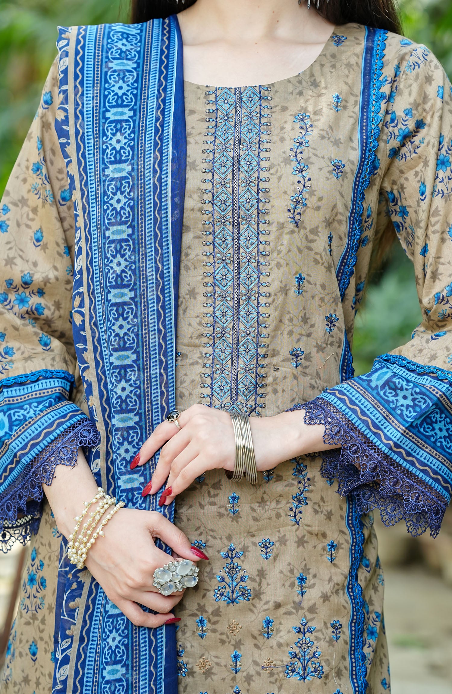 Printed and Embroidered Luxury Lawn Shirt