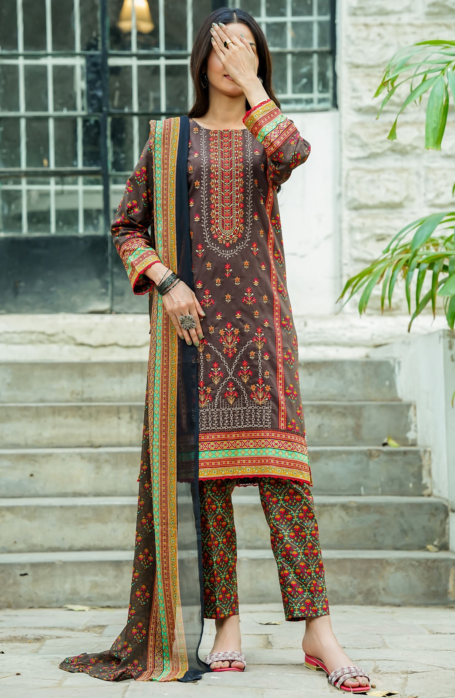 Soirees by Maryum Maniya Embroidered Lawn Unstitched 3 Piece Suit - SS-60 - MM25SS7 - Brown - summer Collection