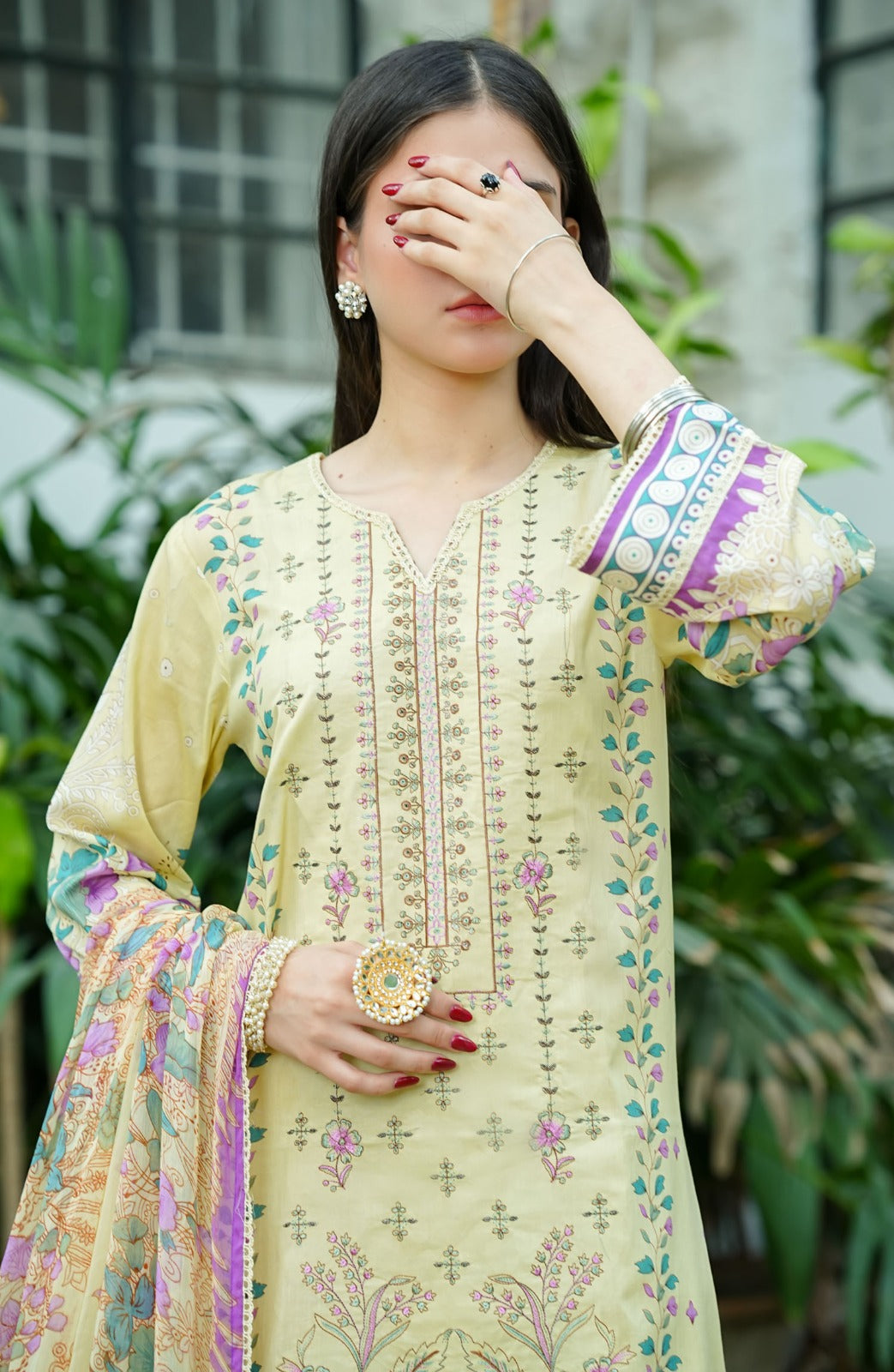 Home Soirees by Maryum Maniya Embroidered Lawn Unstitched 3 Piece Suit - SS-64 - MM25SS7 - Off White - summer Collection