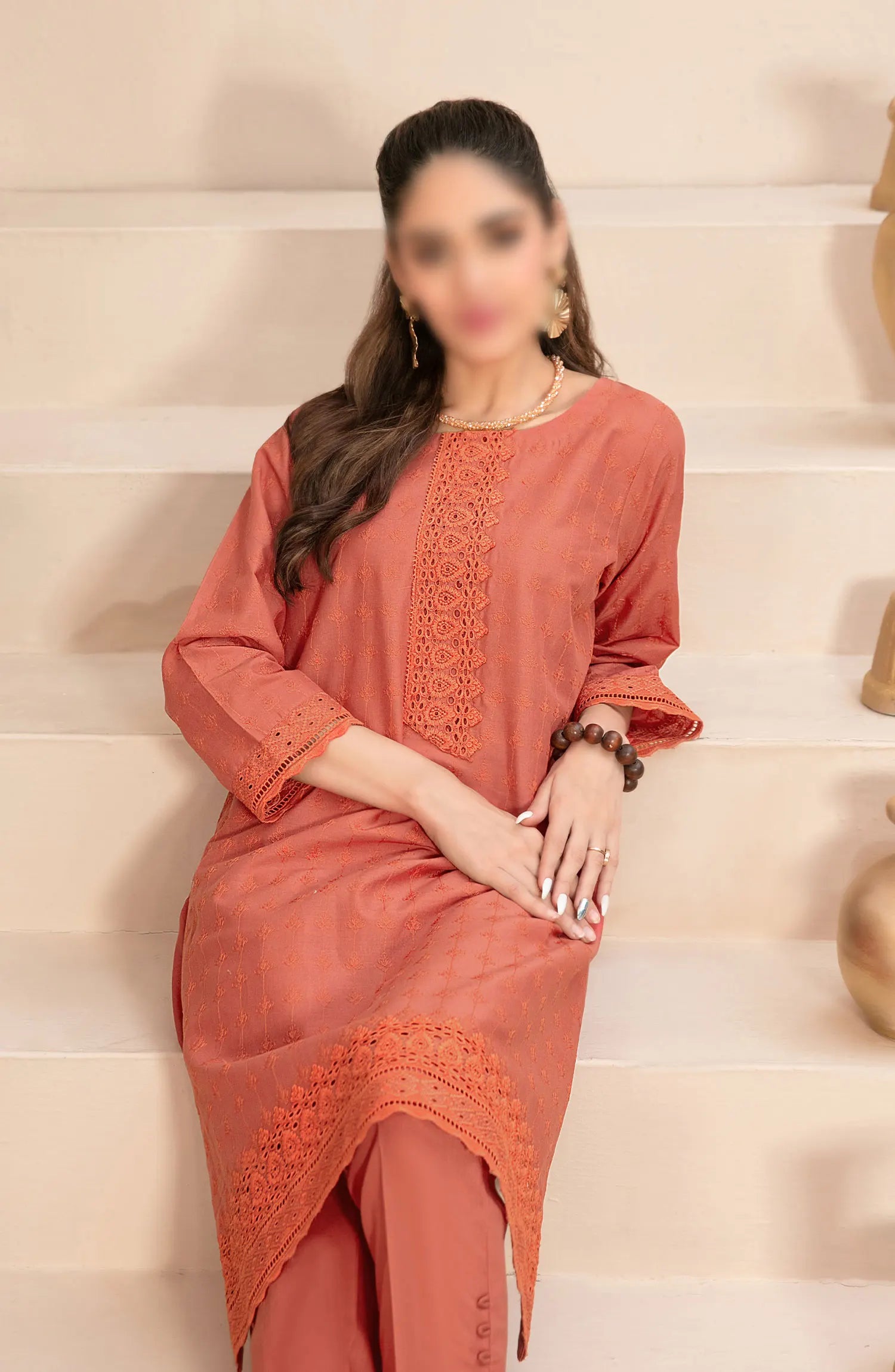 Solely Solids - Schiffli Lawn 2pcs Collection 2024 has been styled in the image for photography and illustrative purposes.