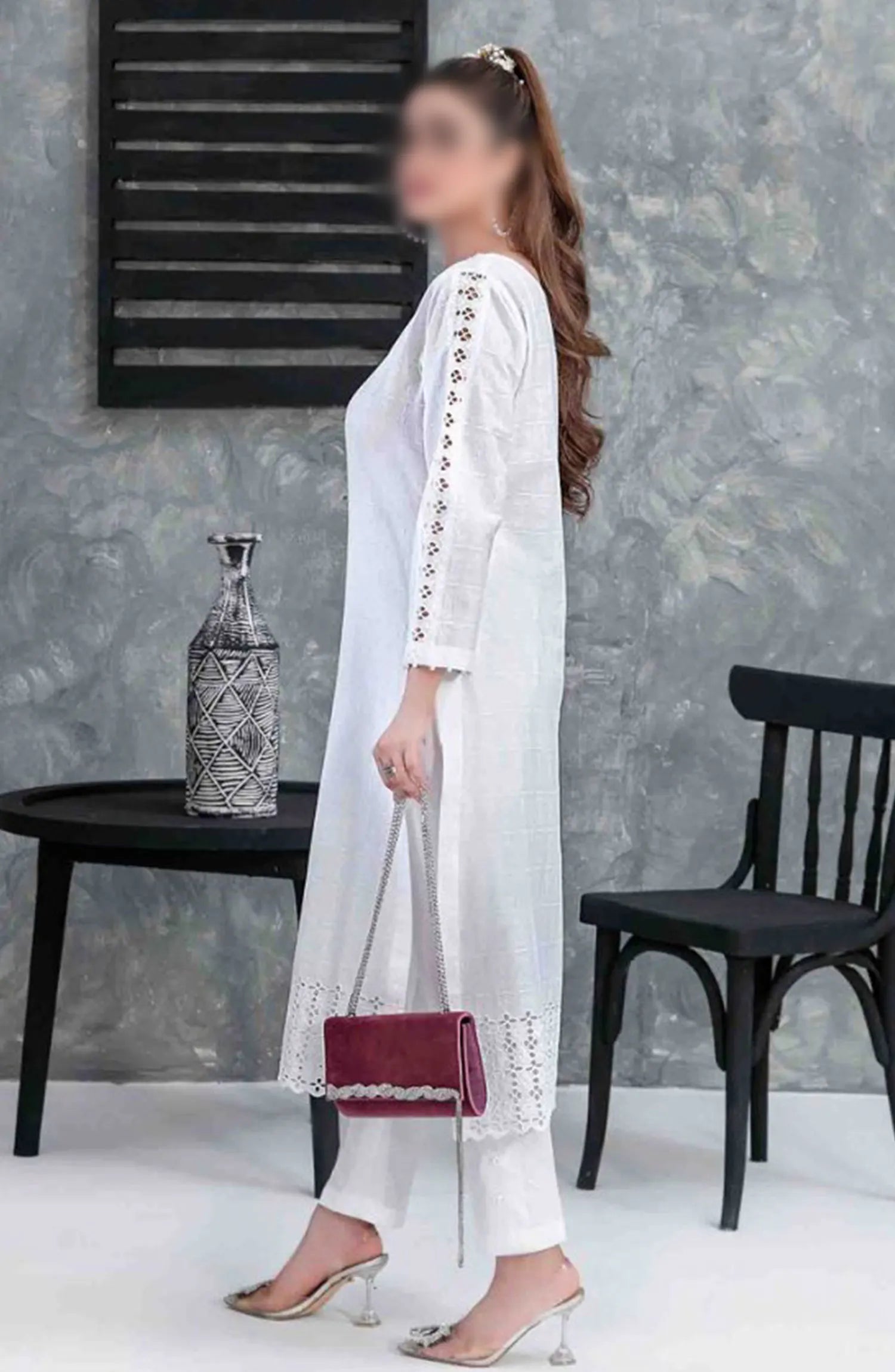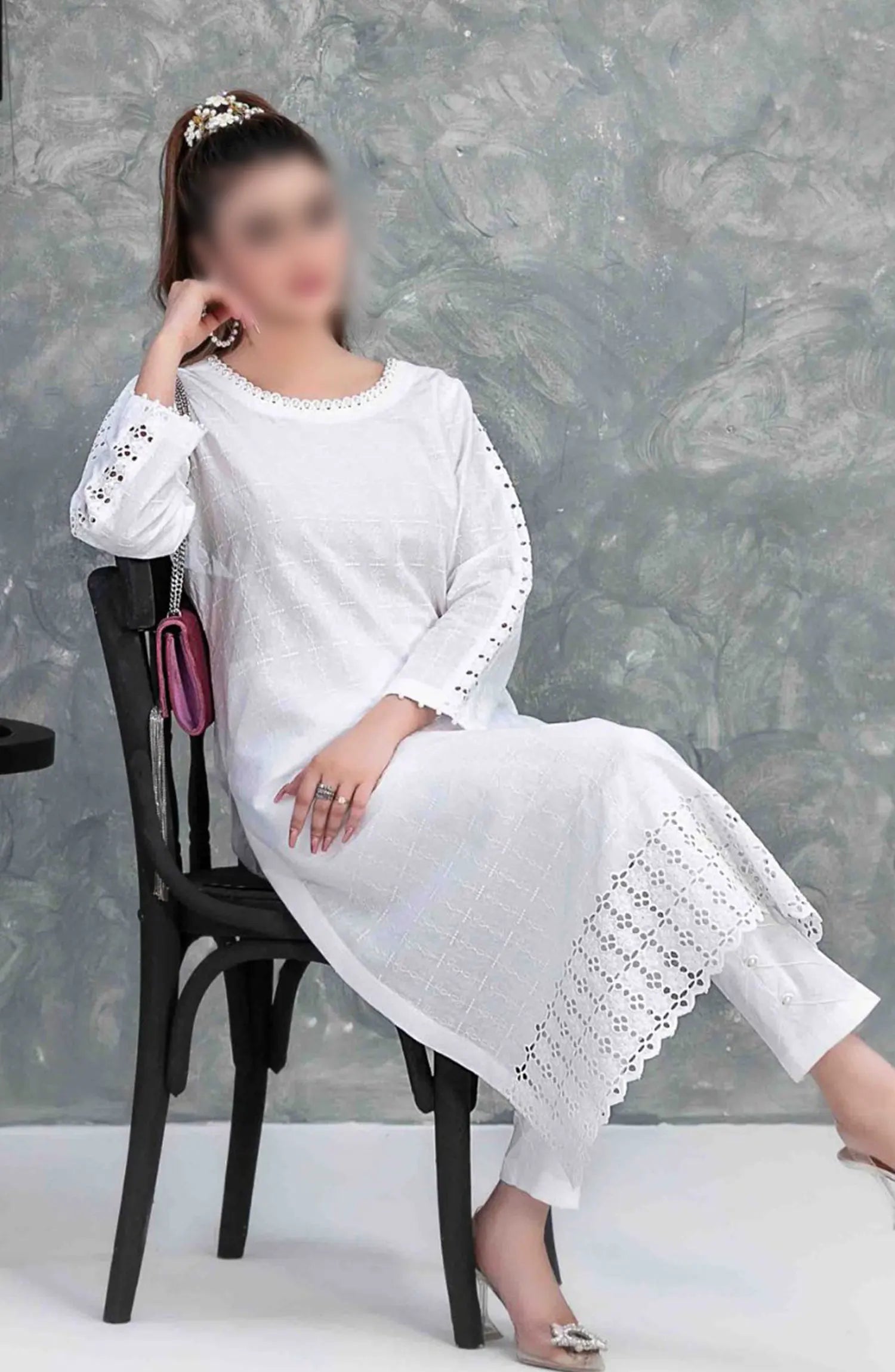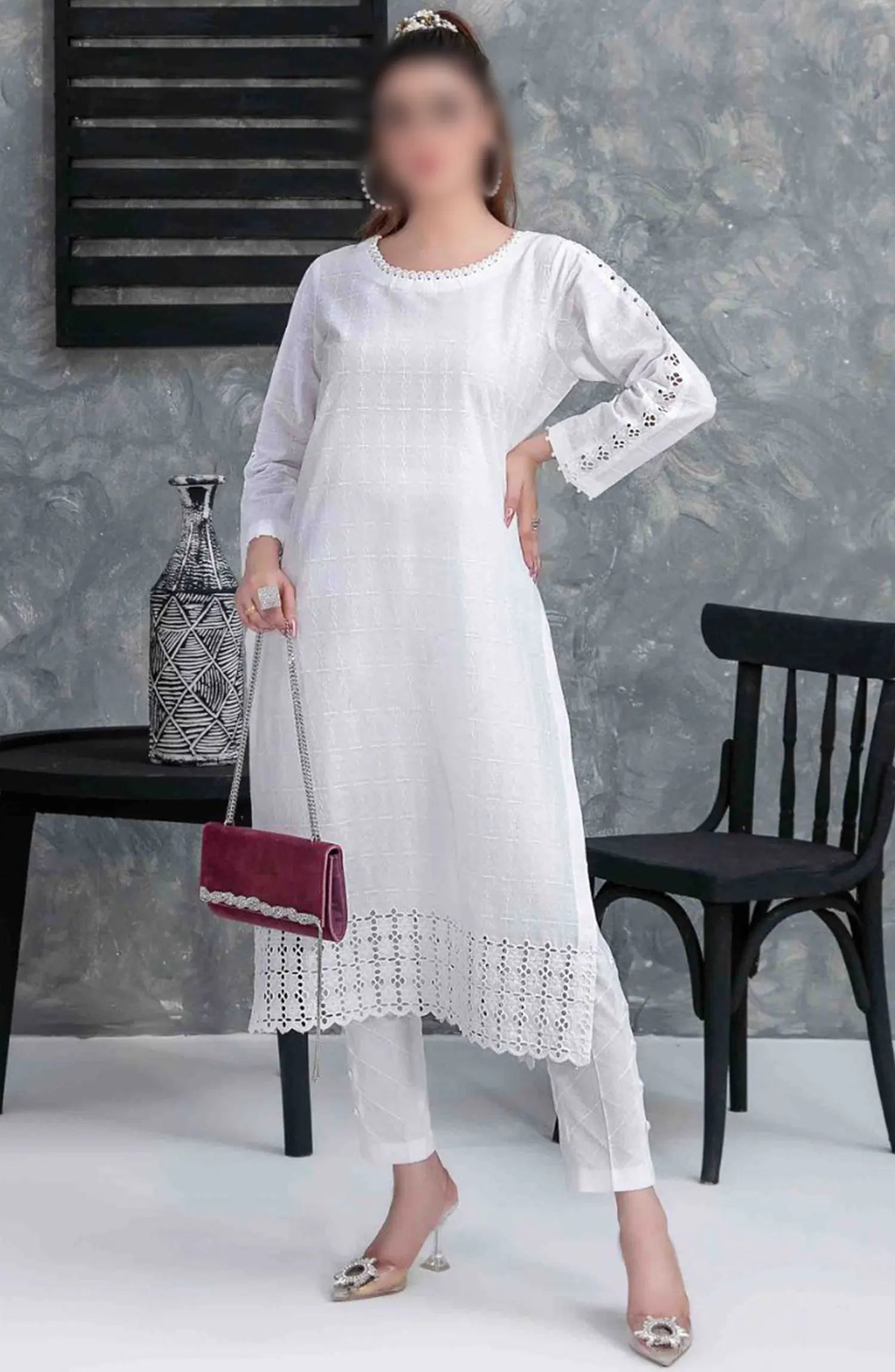 SOLELY SOLIDS VOL II New Schiffli Lawn 2-pcs Collection 2024 has been styled in the image for photography and illustrative purposes.