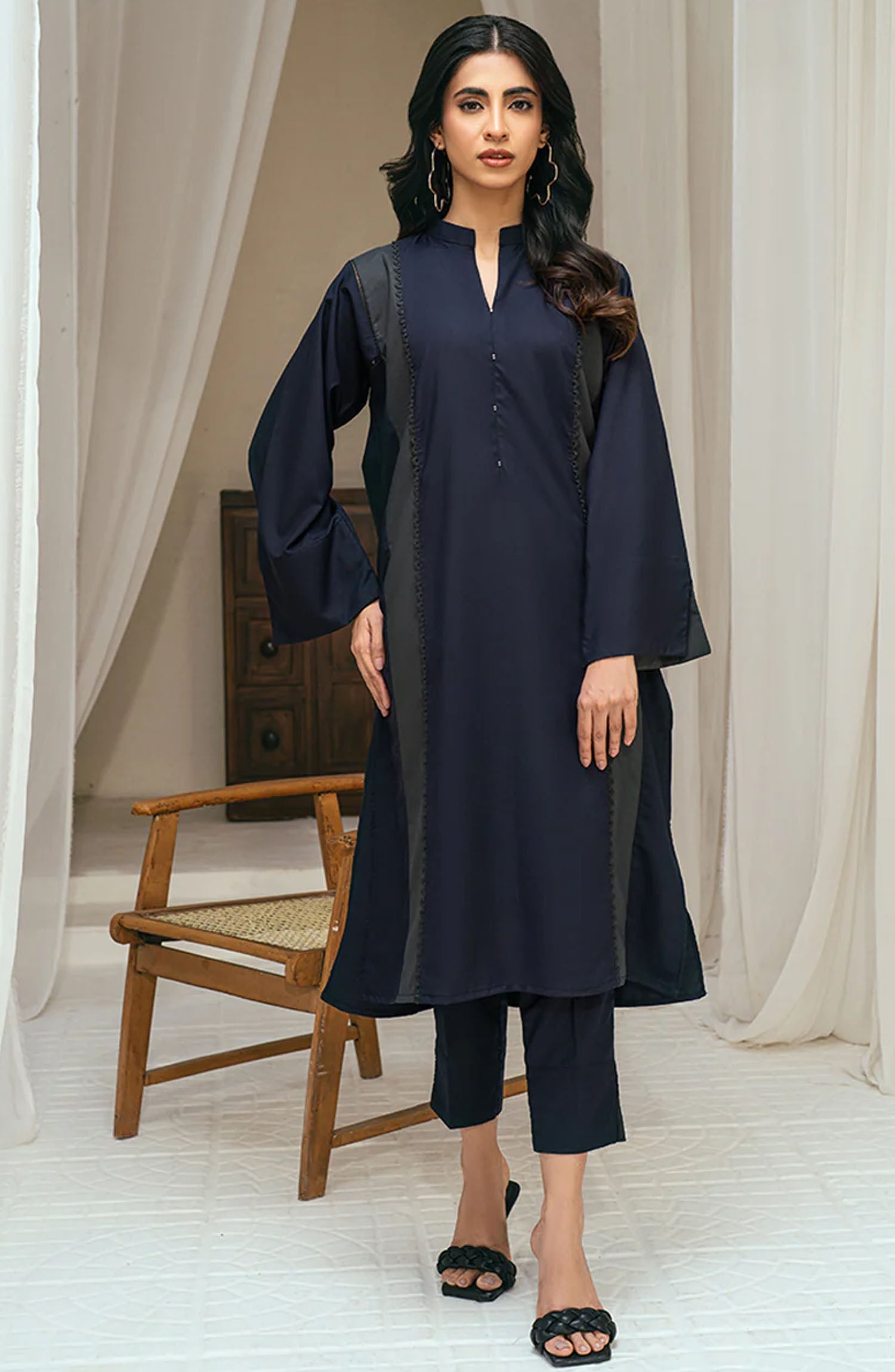 The standard style comes as a long-sleeved kameez and trouser/shawlar.