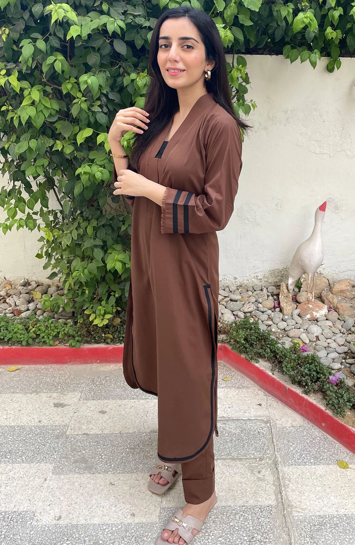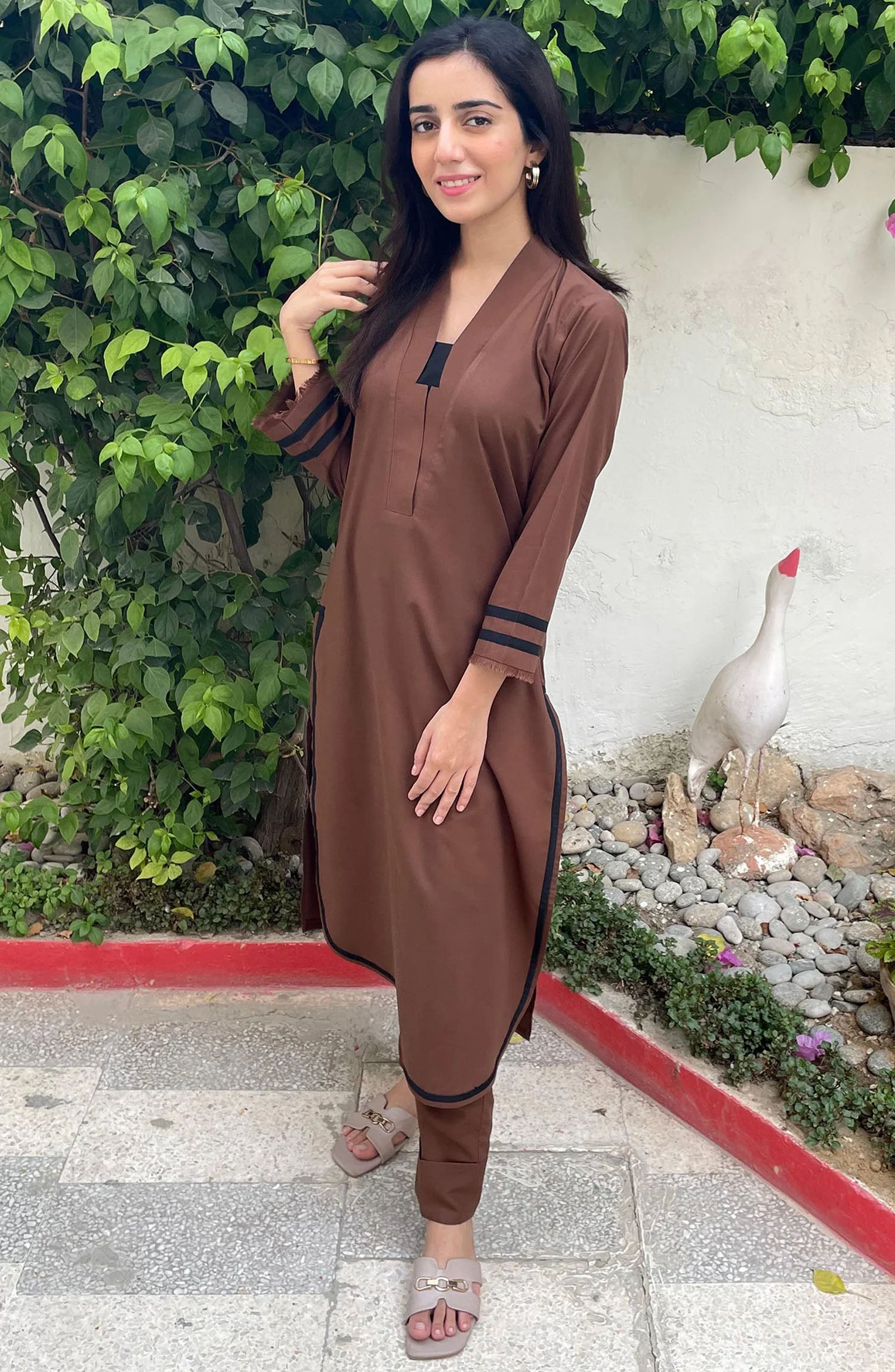 The standard style comes as a long-sleeved kameez and trouser/shawlar.