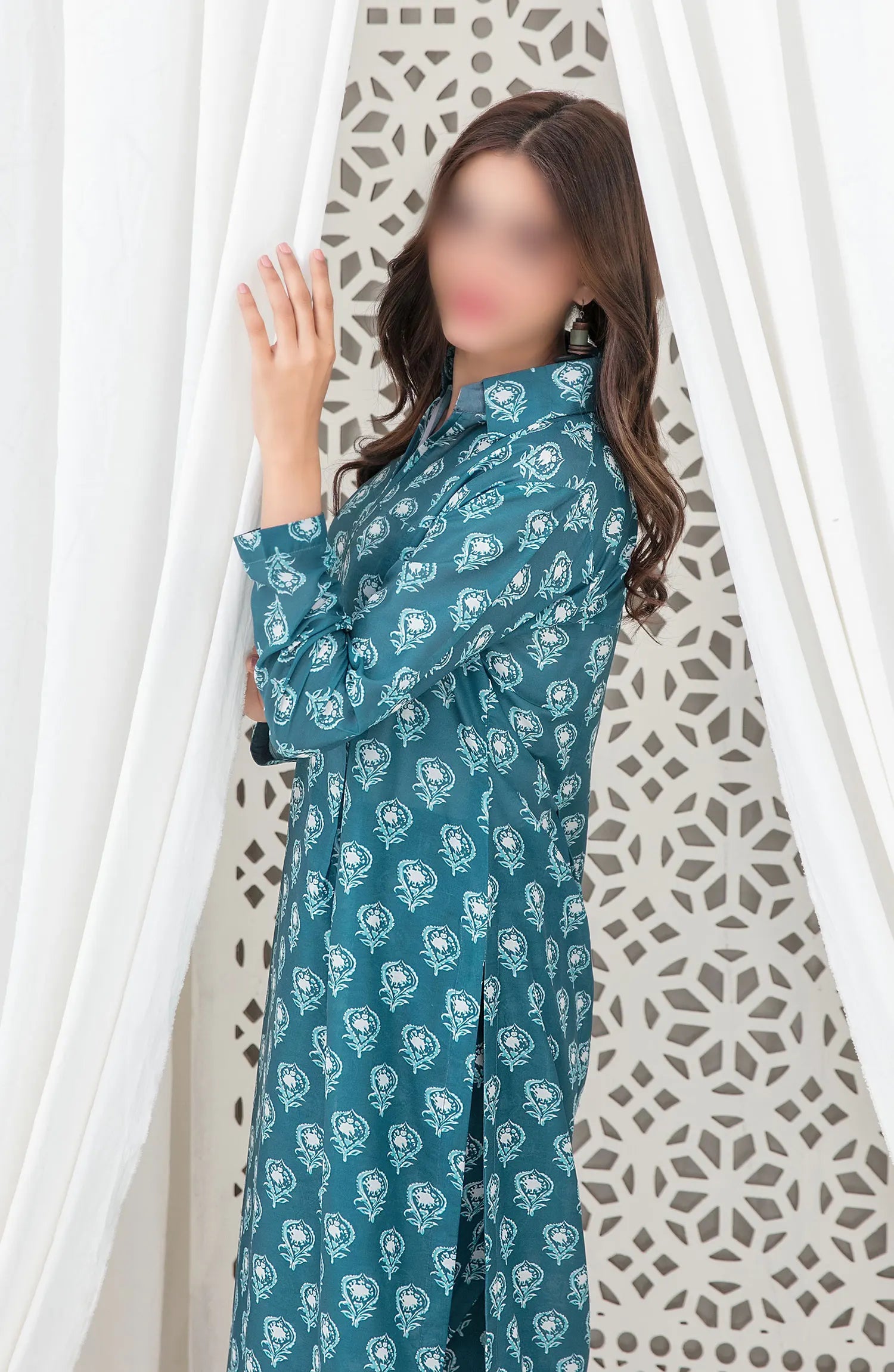 Rua by Casual Lite Embroidered Premium Linen Stitched 3 Piece Suit - D-07 Teal Mirage - CL25RU - Teal - Winter Collection