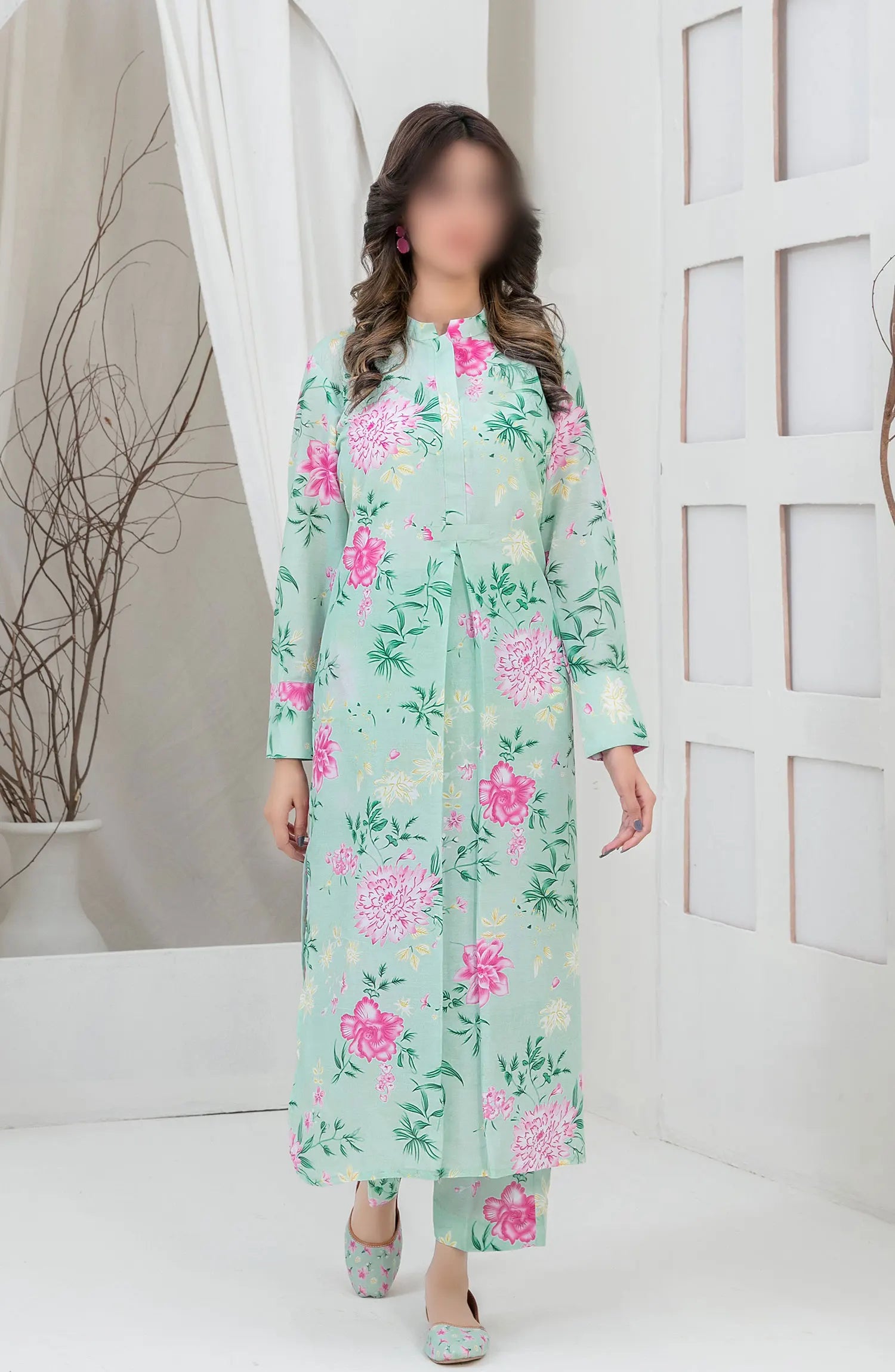 Digital Printed Stitched Swiss shirt and Trouser with complementary Khussa