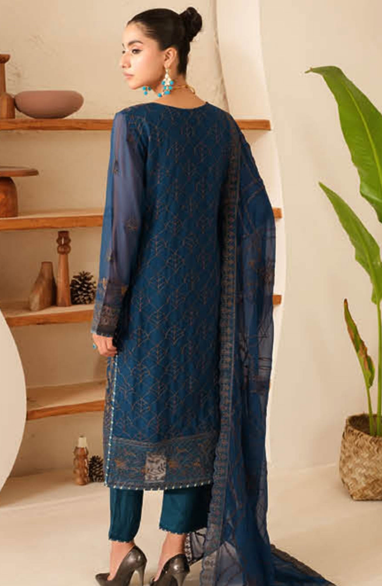 Home Sonehri by Ramsha Embroidered Chiffon Unstitched 3 Piece - BB-101 - R25S - Blue - Formal Collection