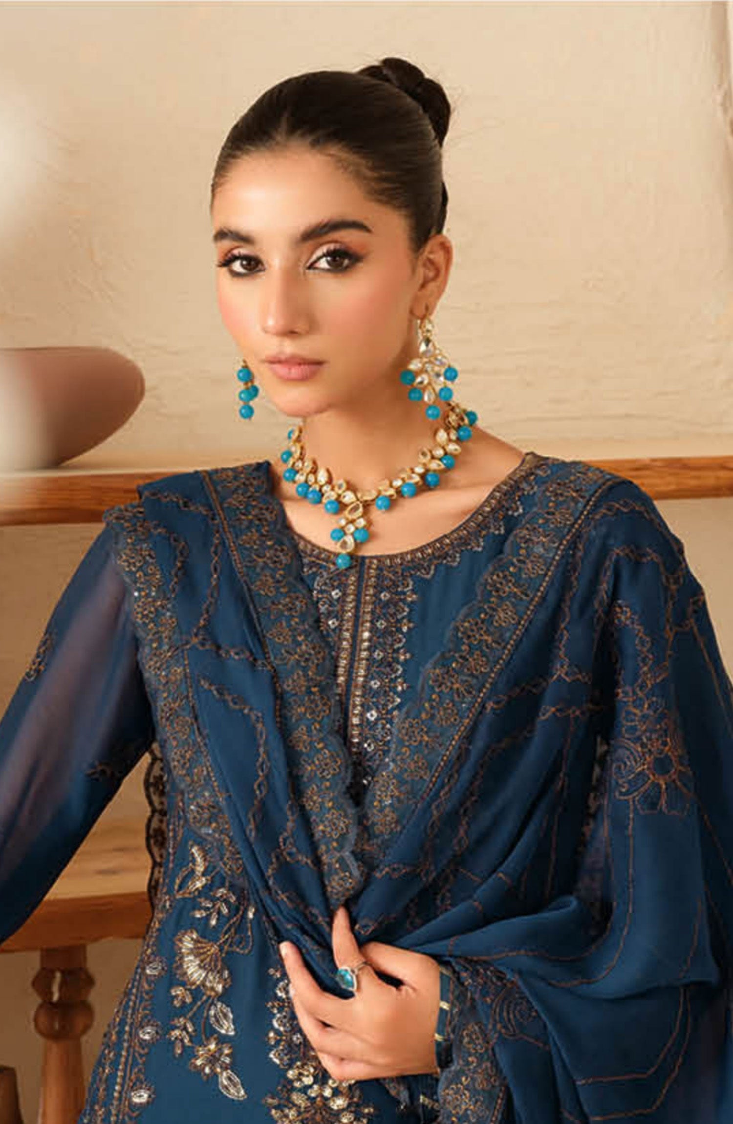 Sonehri by Ramsha Embroidered Chiffon Unstitched 3 Piece - BB-101 - R25S - Blue - Formal Collection