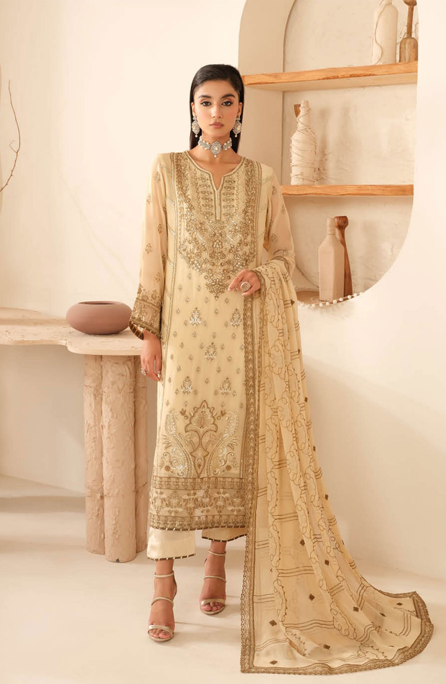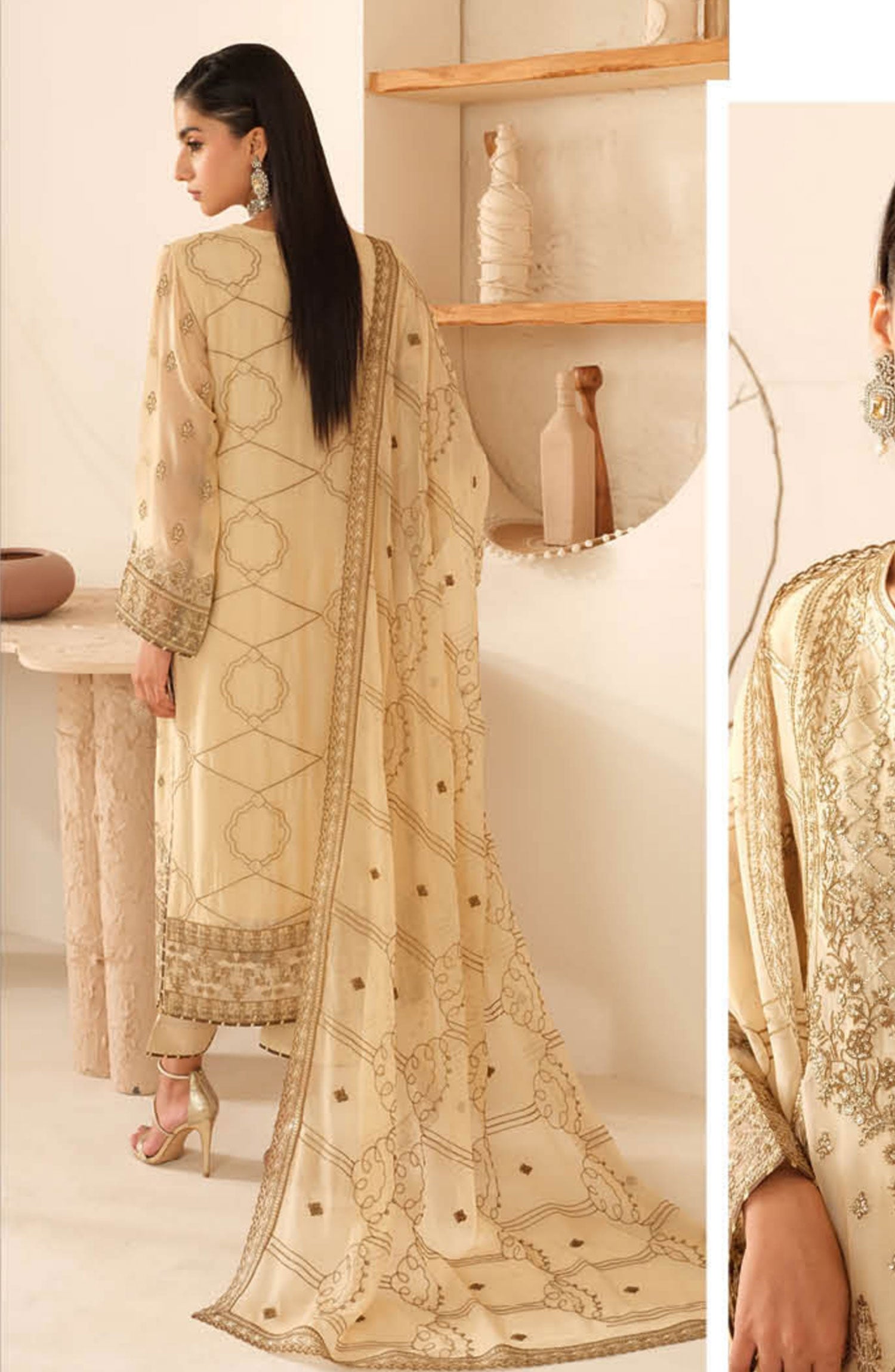 Sonehri by Ramsha Embroidered Chiffon Unstitched 3 Piece - BB-104 - R25S - Fawn - Formal Collection