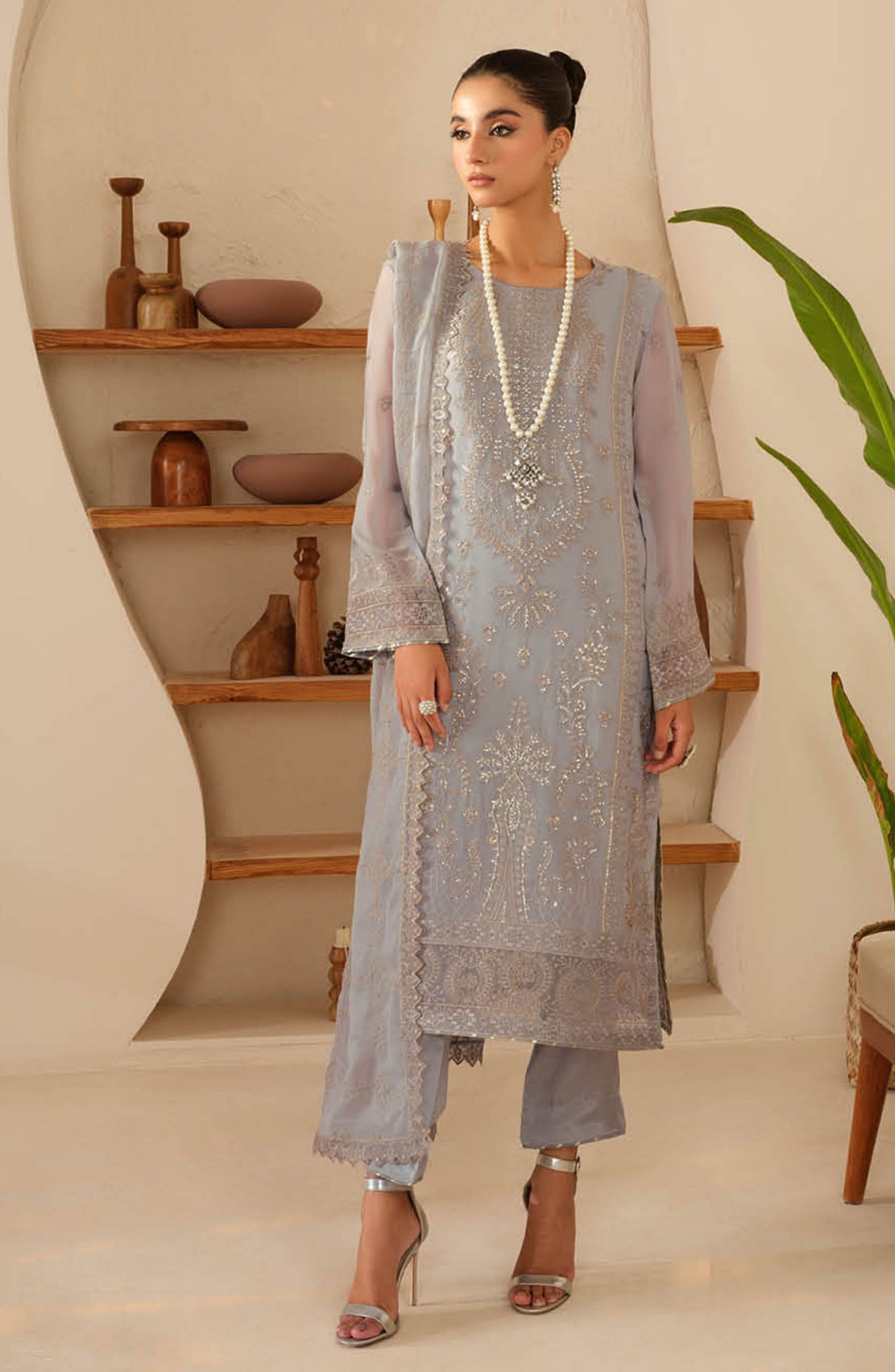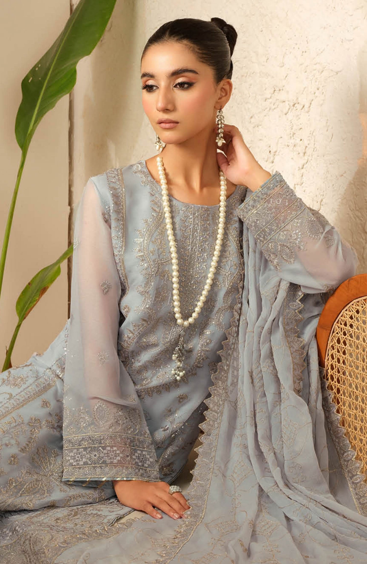 Sonehri by Ramsha Embroidered Chiffon Unstitched 3 Piece - BB-110 - R25S - Grey - Formal Collection