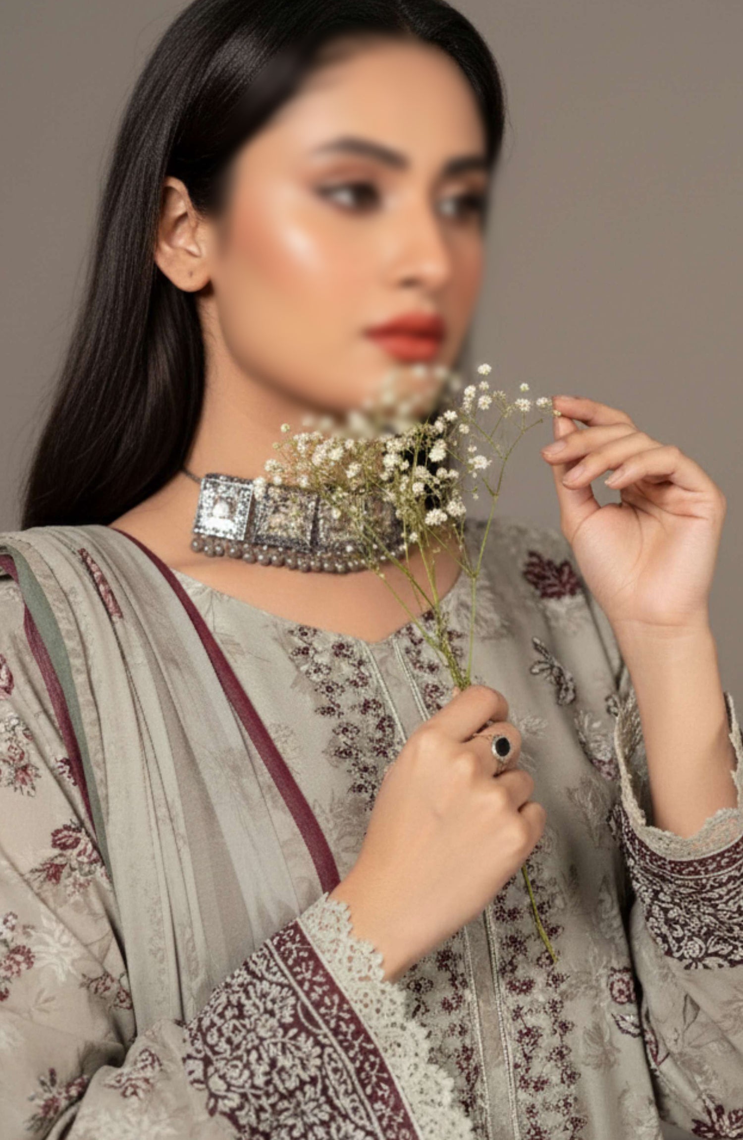 Digital Printed & Embroidered Lawn Slub 3 Piece Unstitched Suit with Voil Printed Dupatta