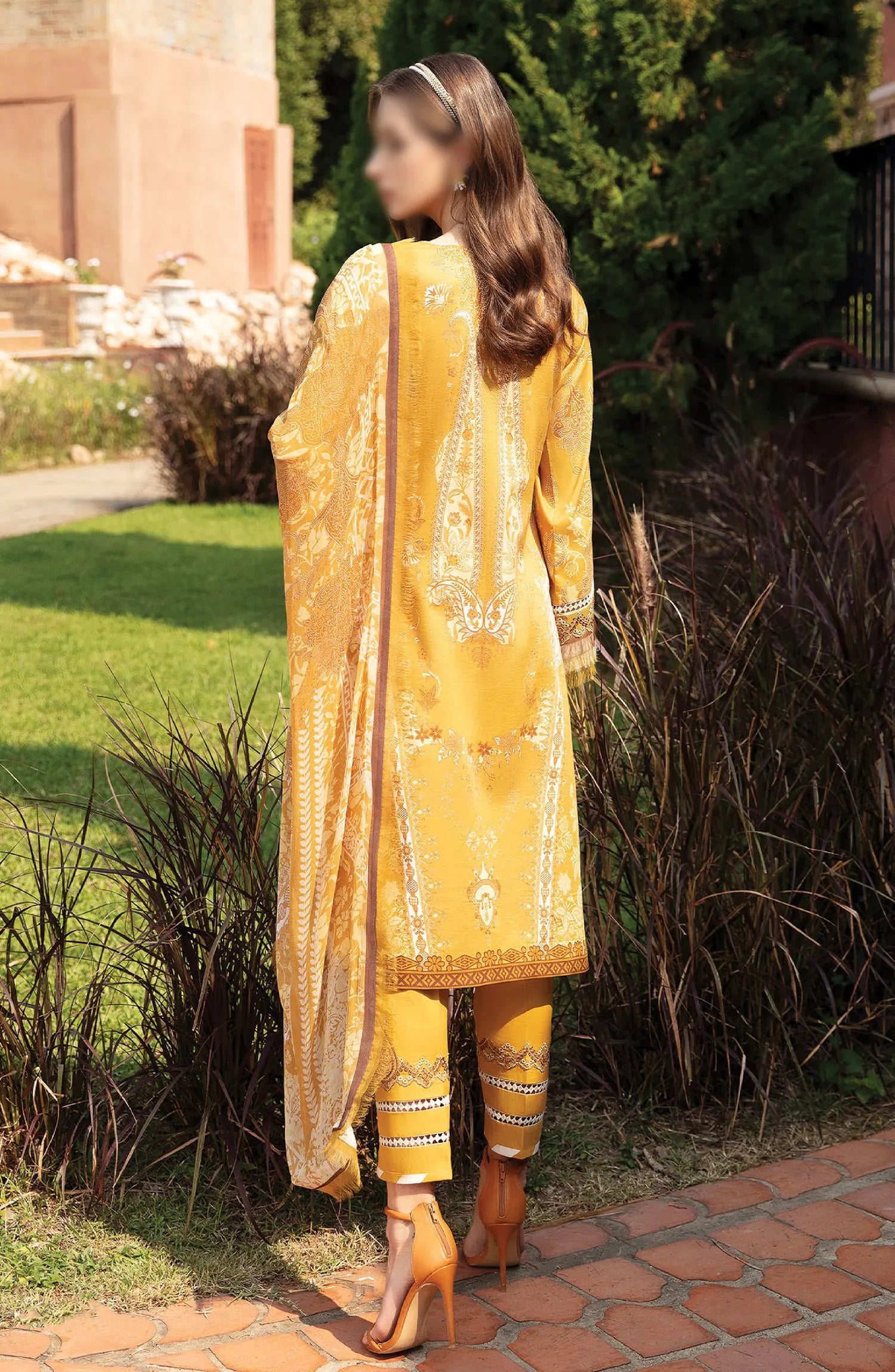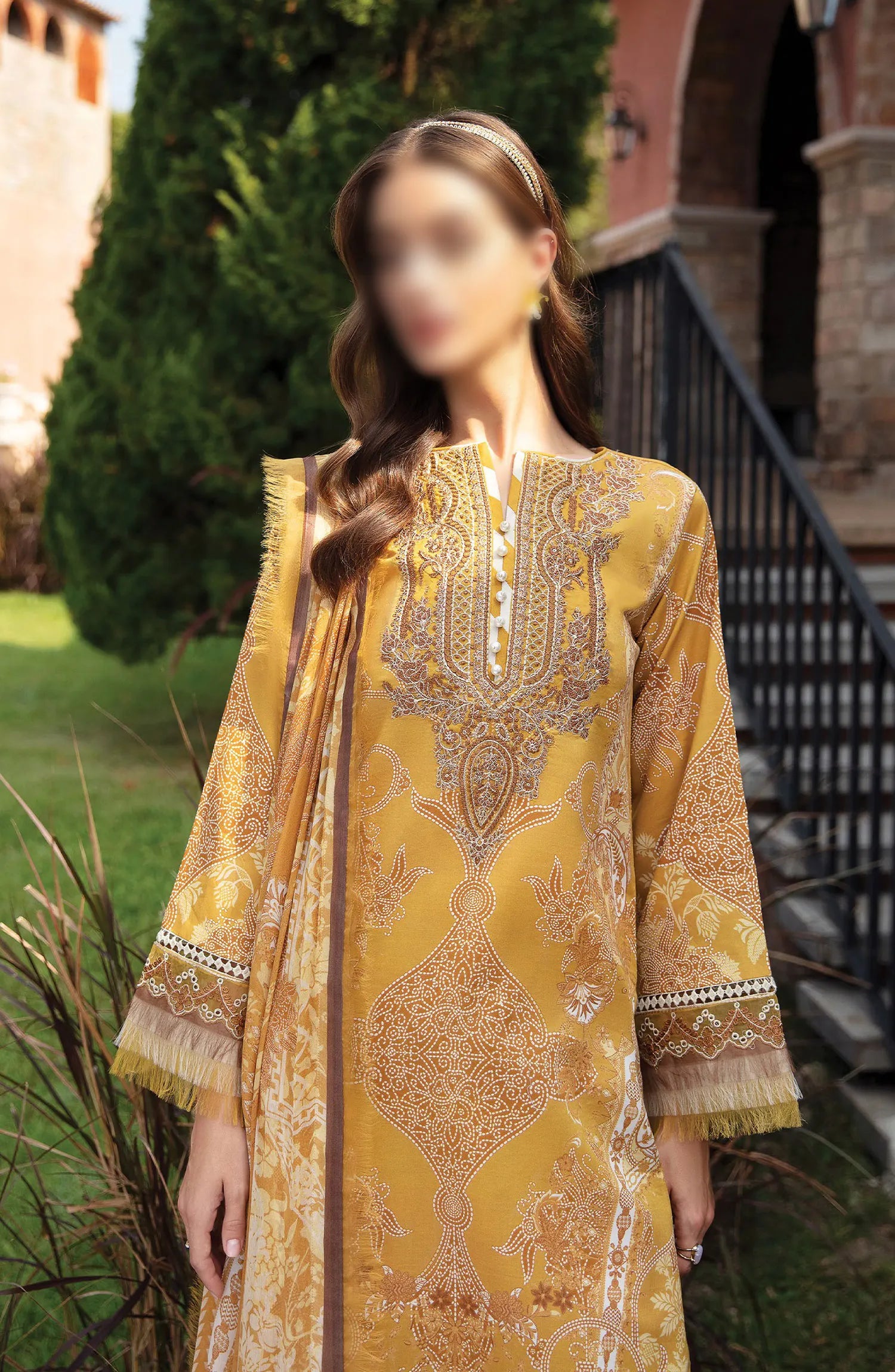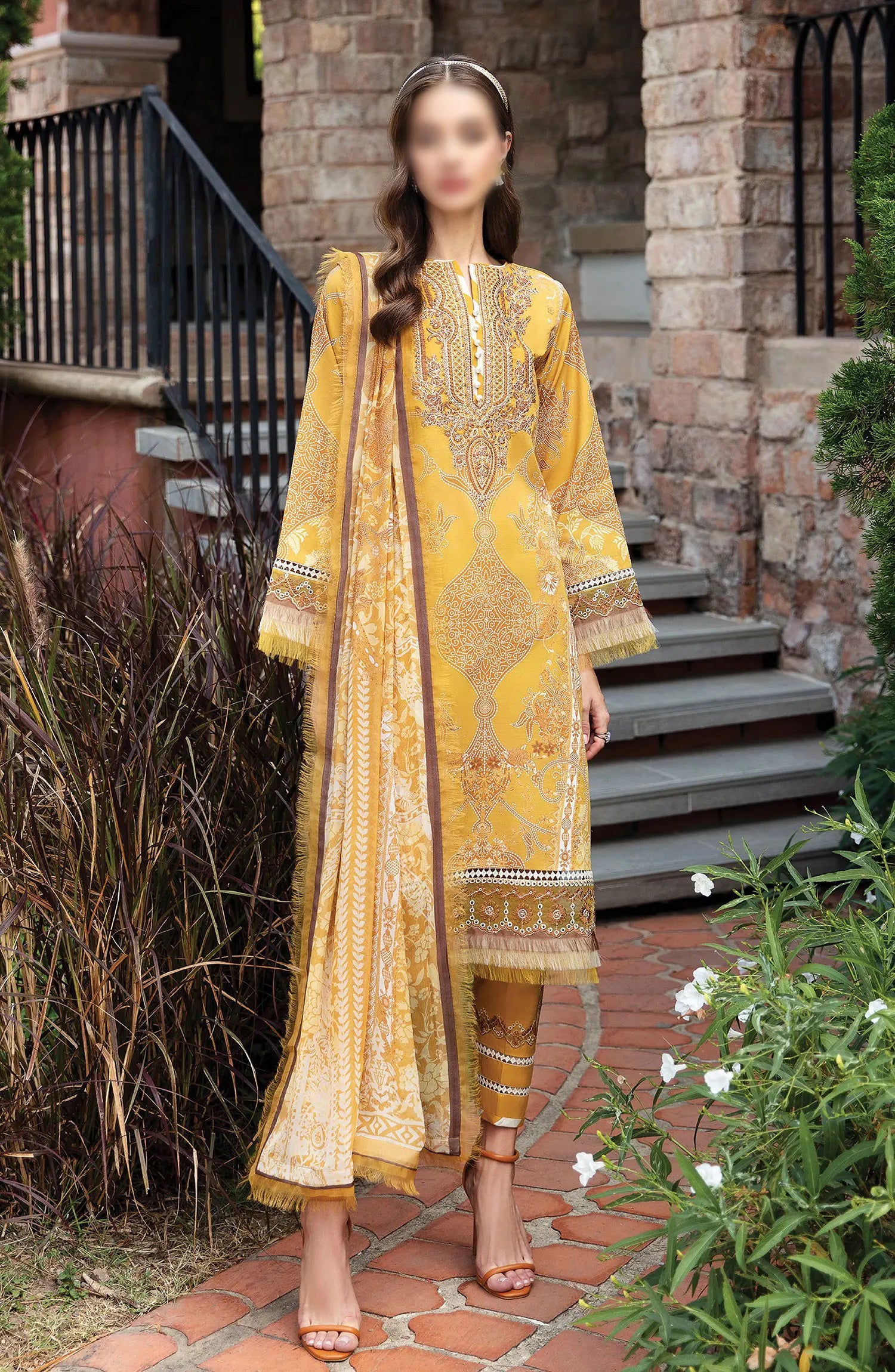 The standard style comes as a long-sleeved kameez with dupatta and trouser/shalwar.
