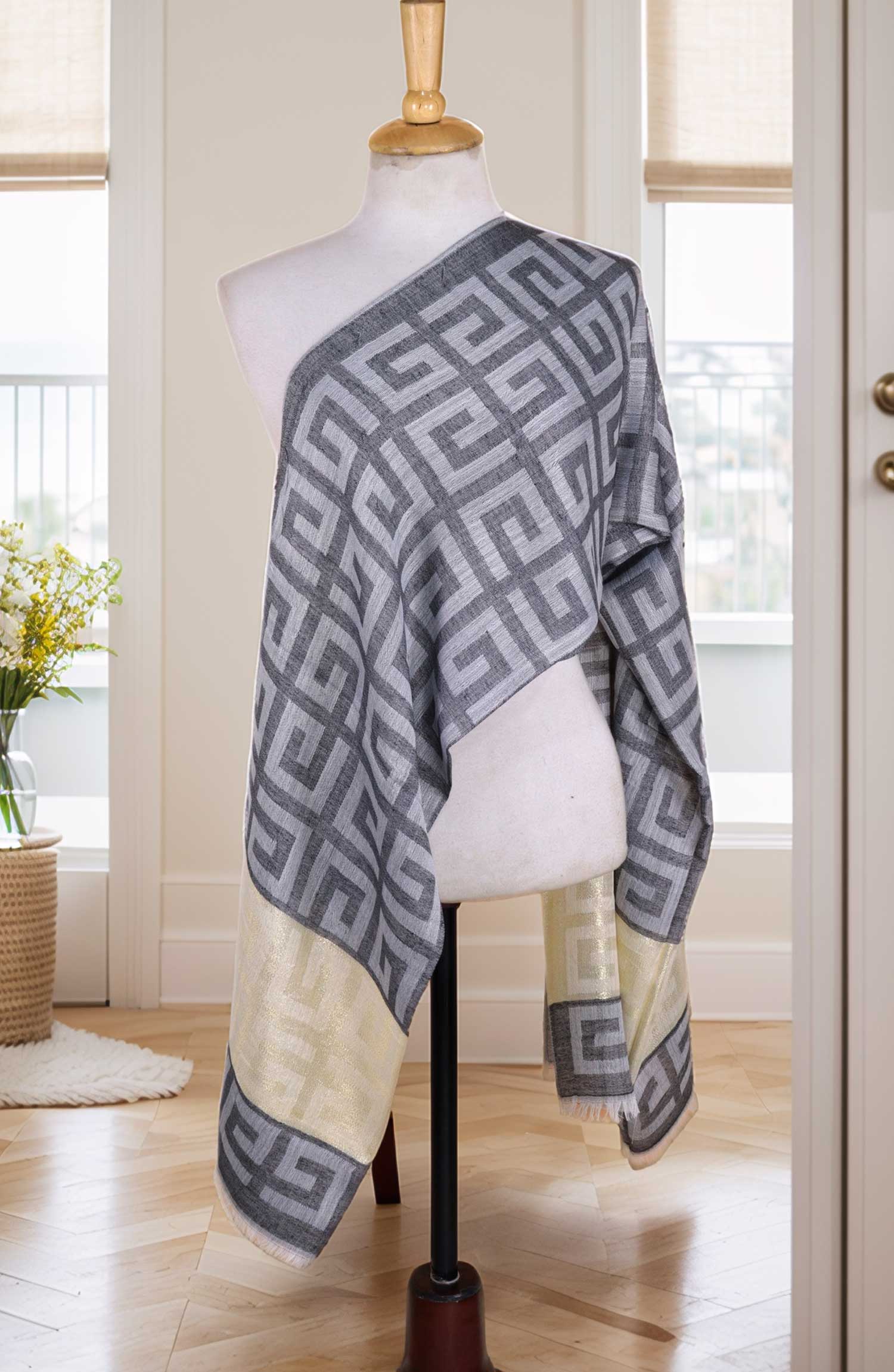 Stoluxe Premium Twill Jacquard Stole Vol 21 has been styled in the image for photography and illustrative purposes.
