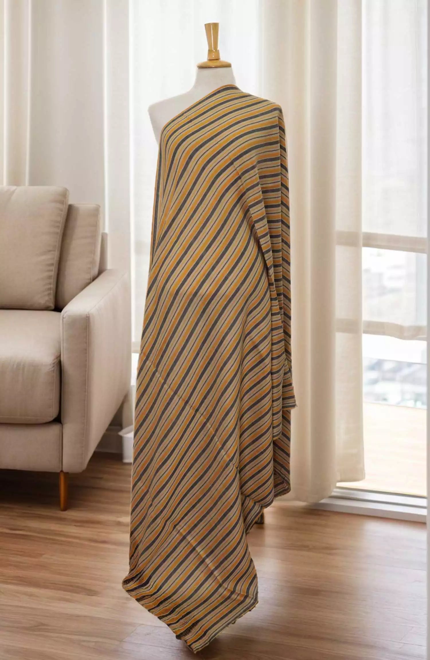 Stoluxe Premium Yarn Dyed Crepe Wool Shawl Vol 06 has been styled in the image for photography and illustrative purposes.