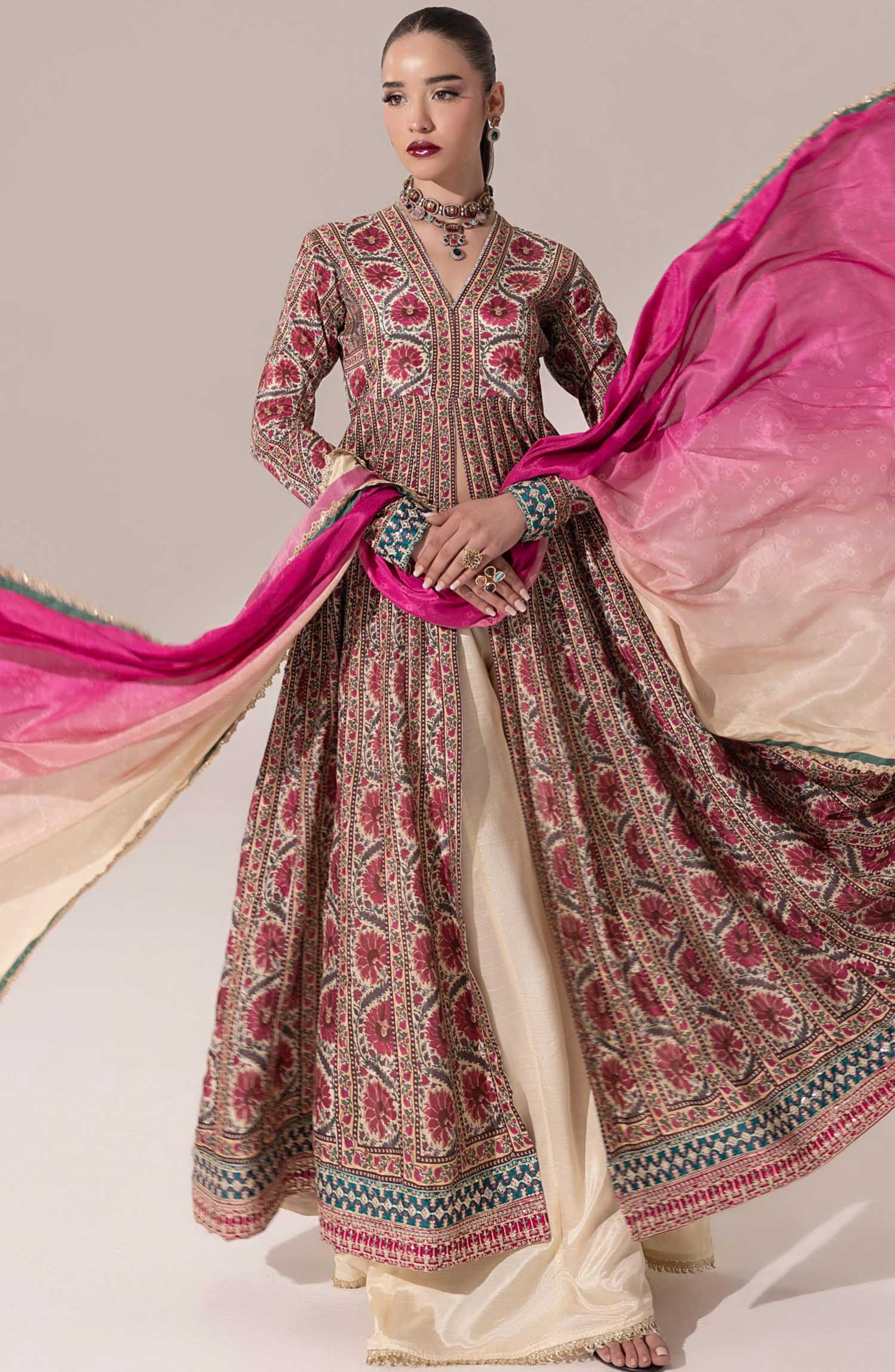 SUAY Silk Handwork Eid Edit By Sahane has been styled in the image for photography and illustrative purposes.