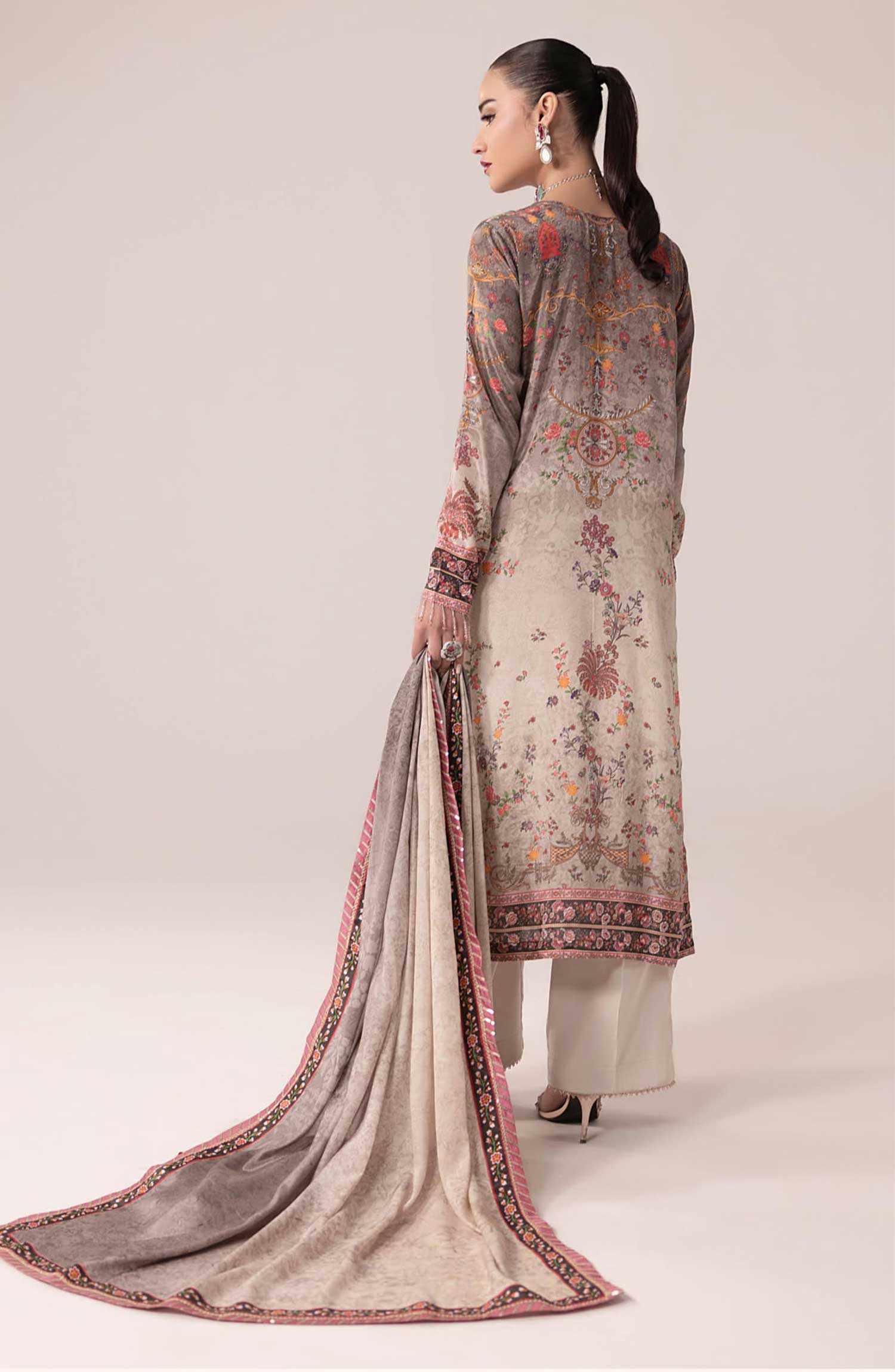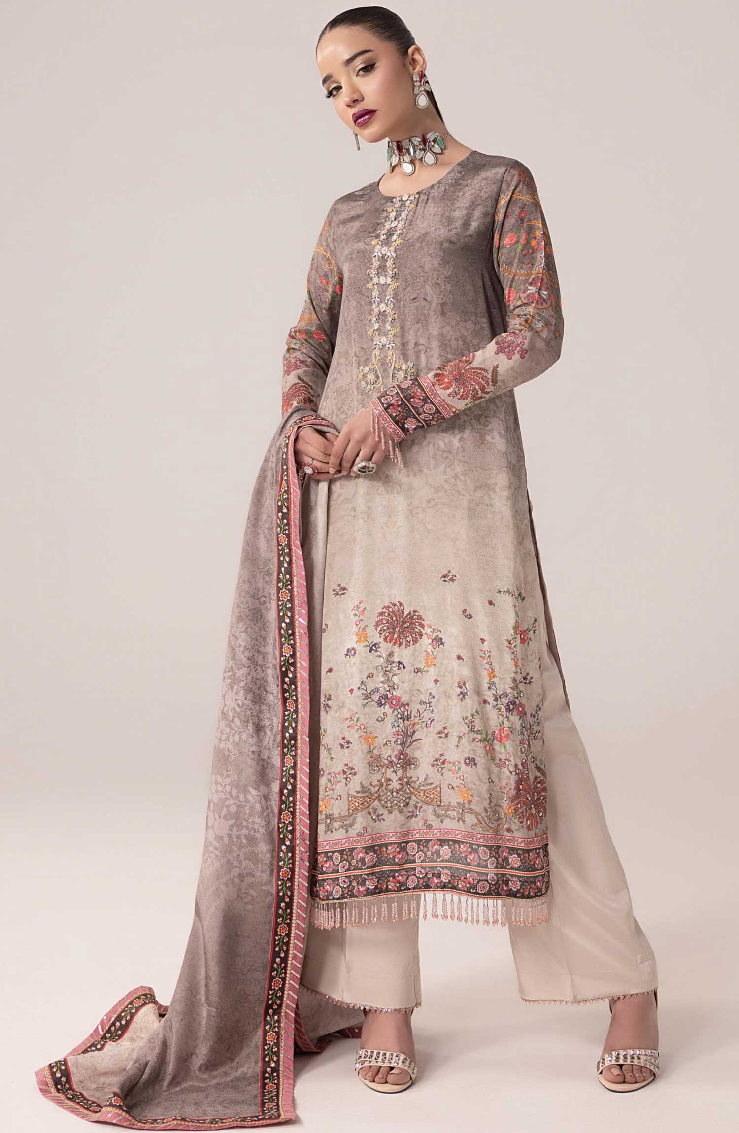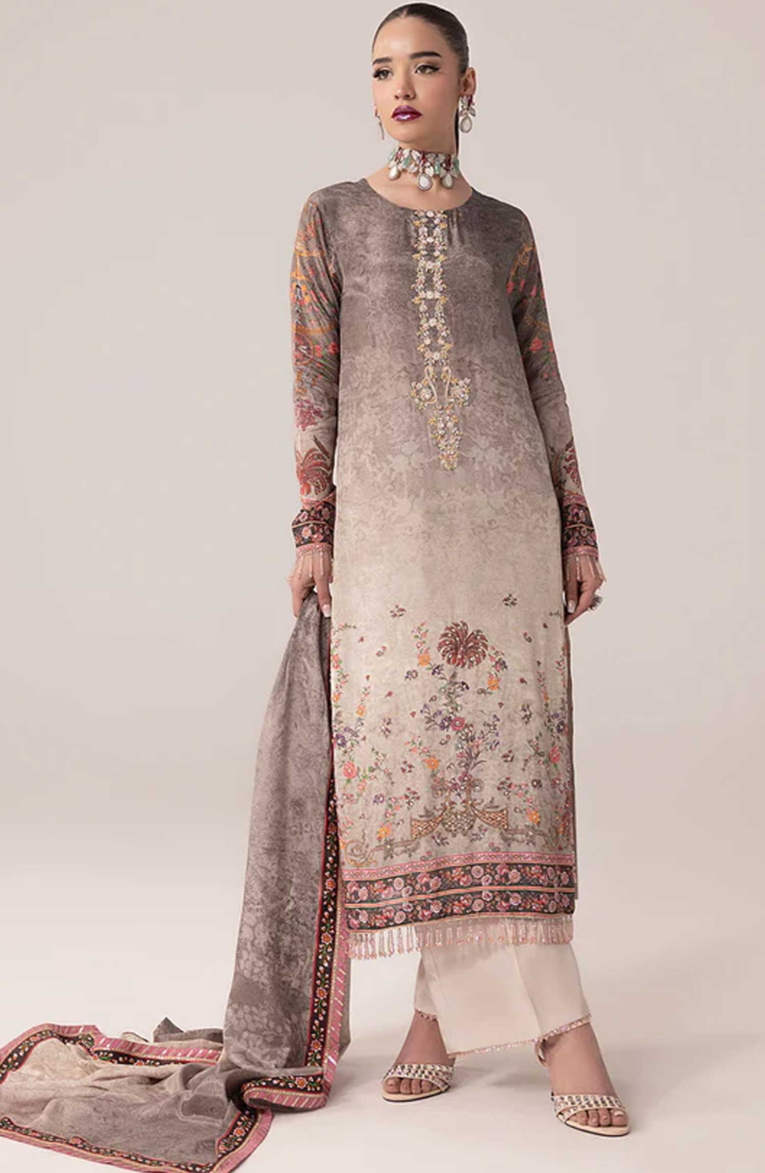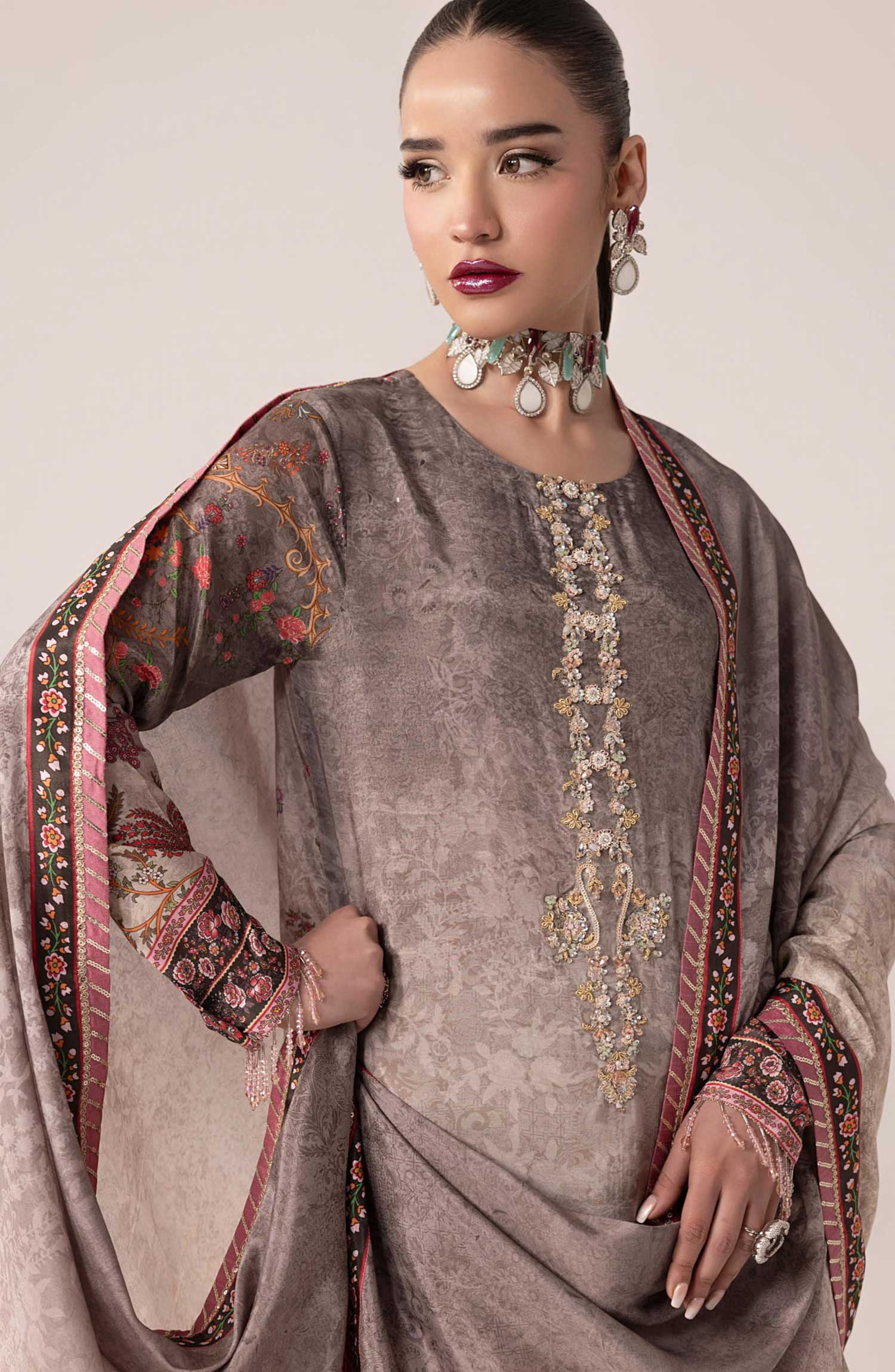 SUAY Silk Handwork Eid Edit By Sahane has been styled in the image for photography and illustrative purposes.