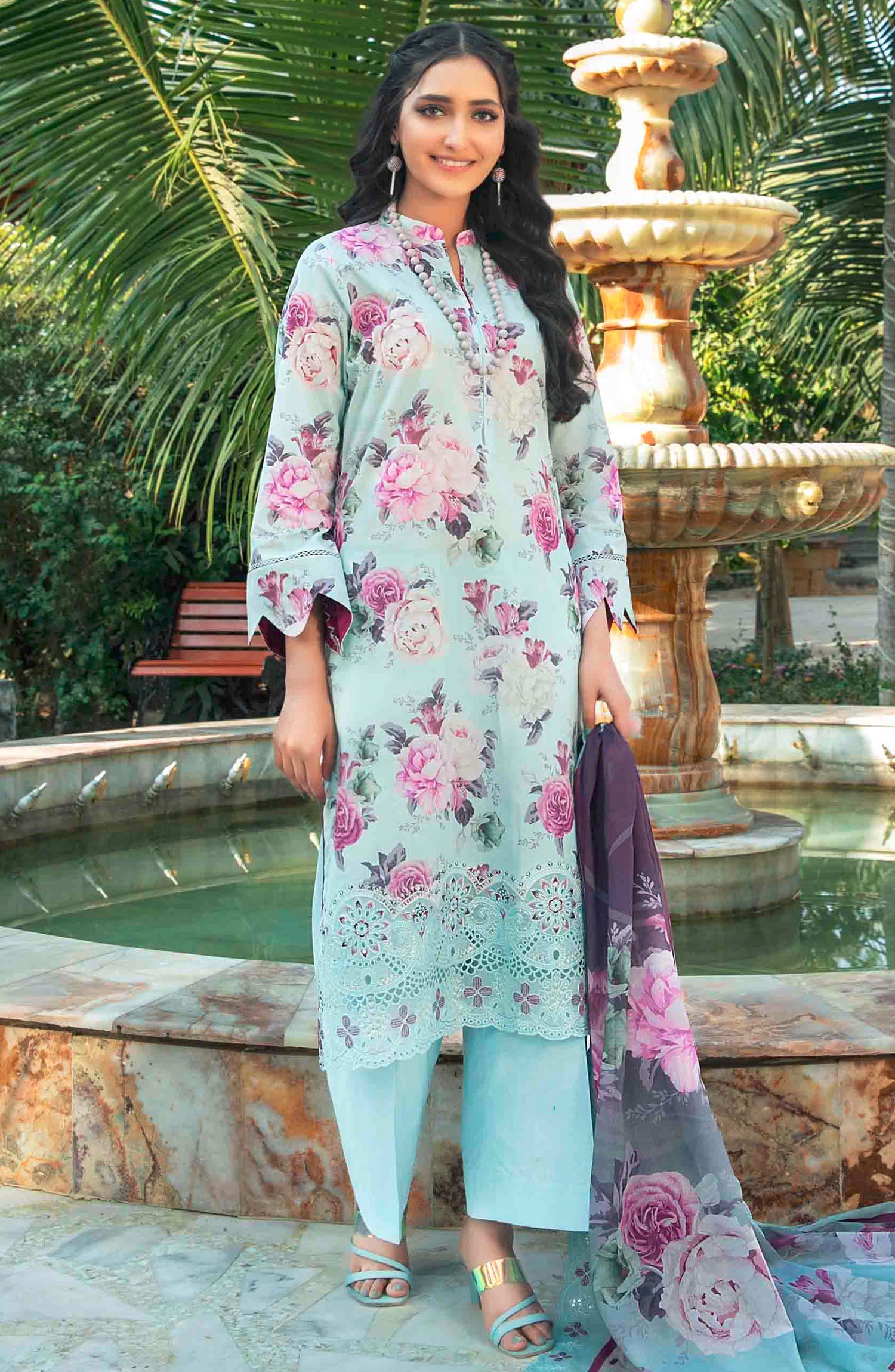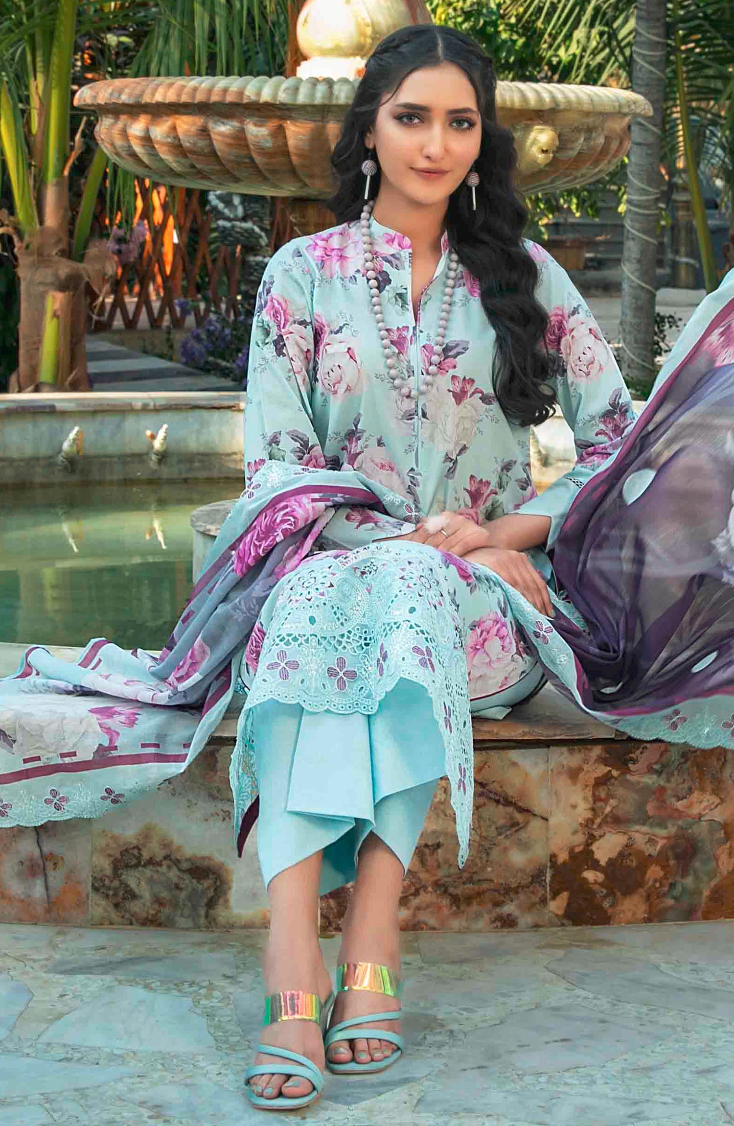 Suleika by Tawakkal Fabrics Embroidered Lawn Unstitched 3 Piece Suit - D-1244 - TF25SU - Blue - Summer Collection